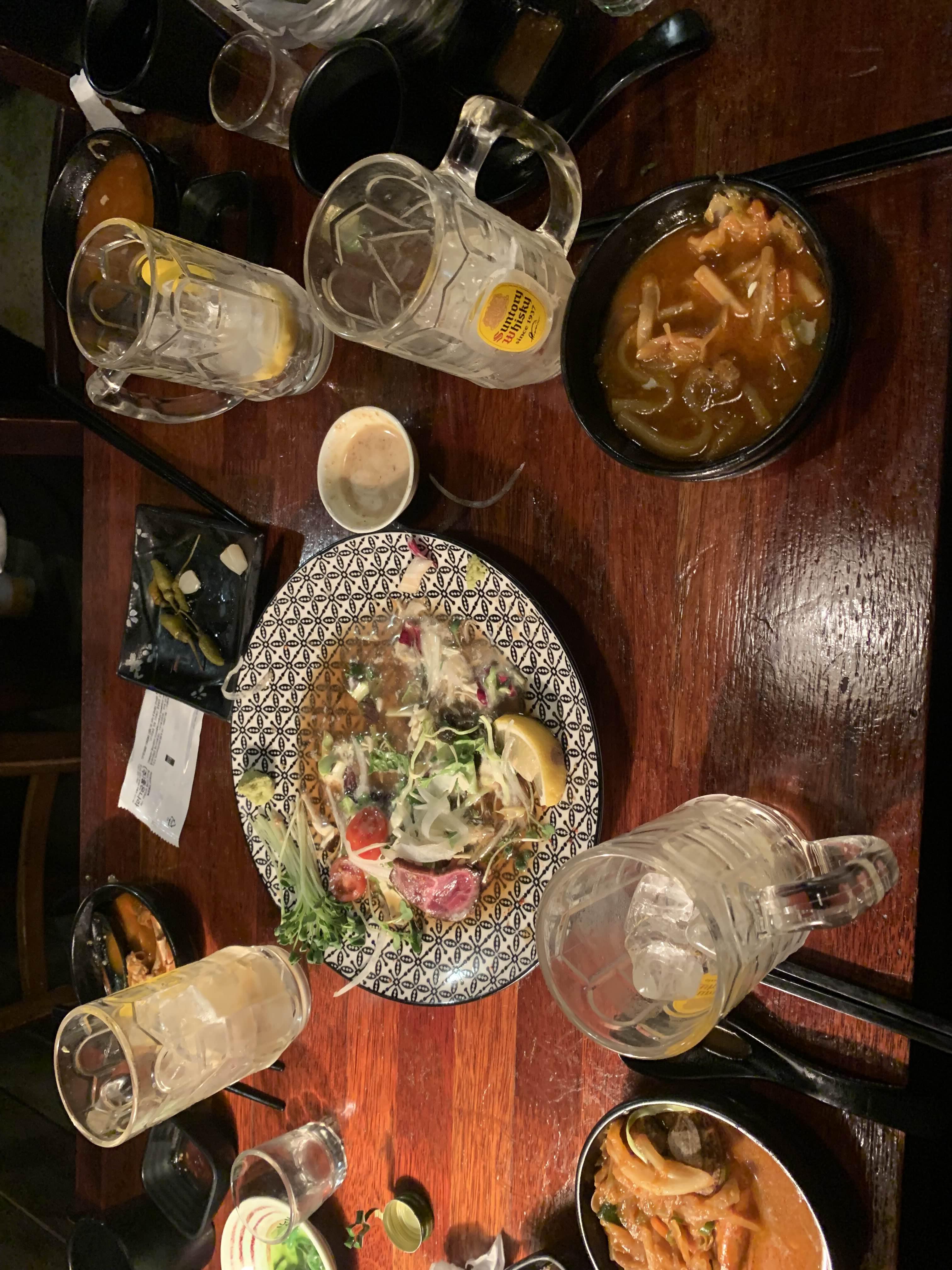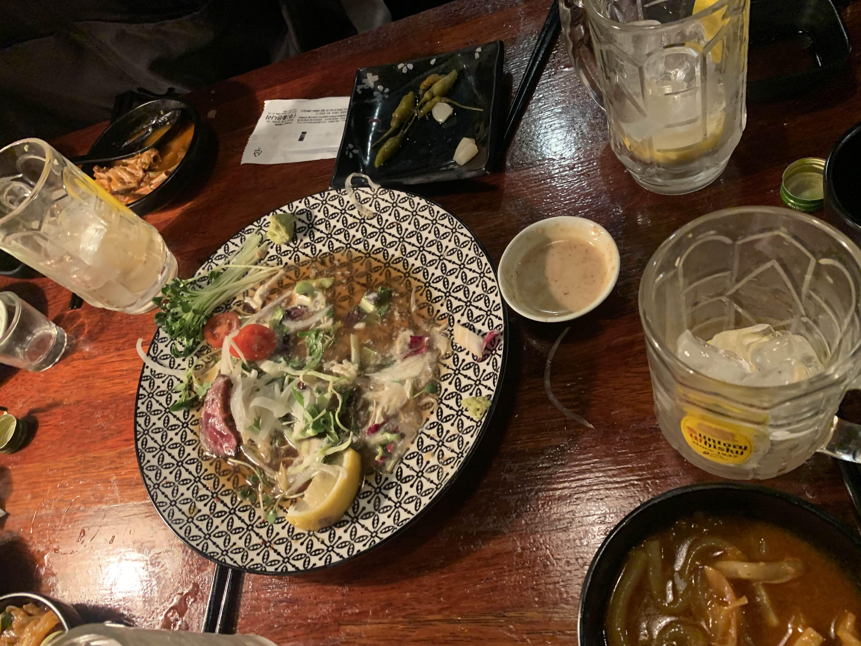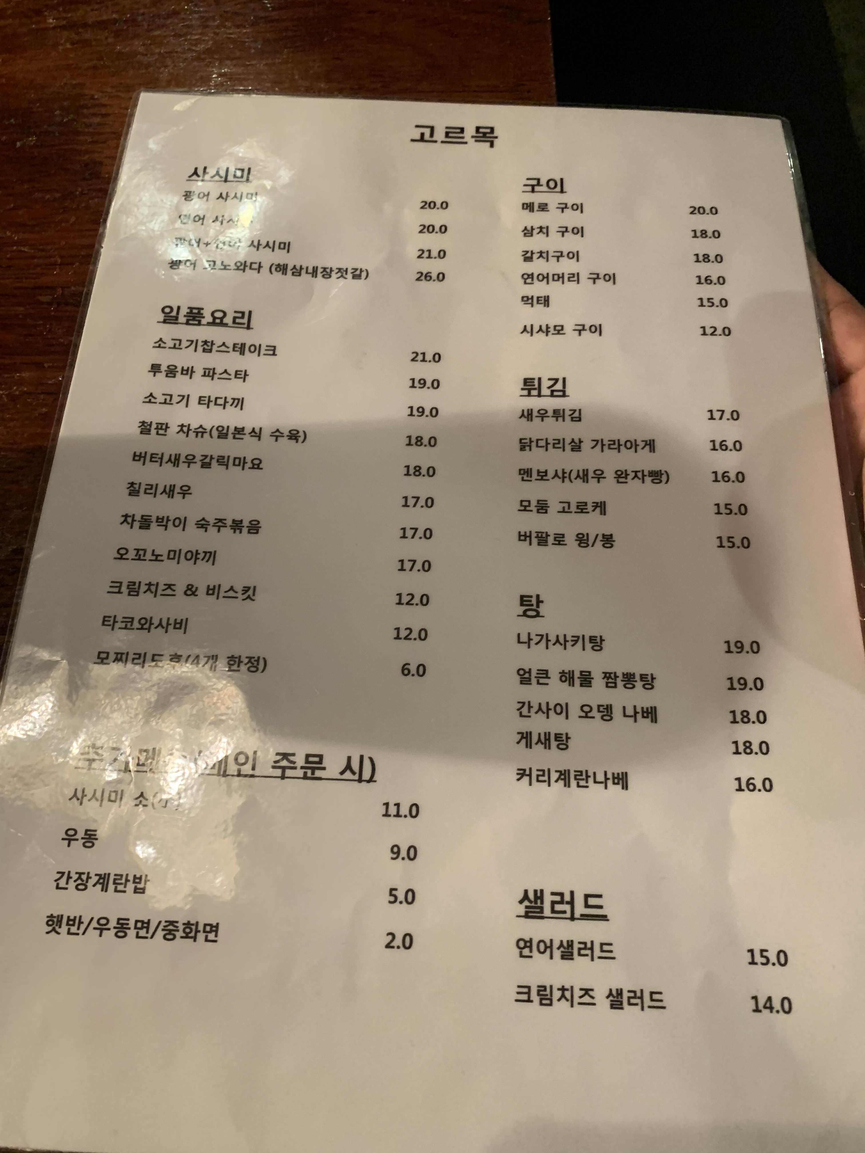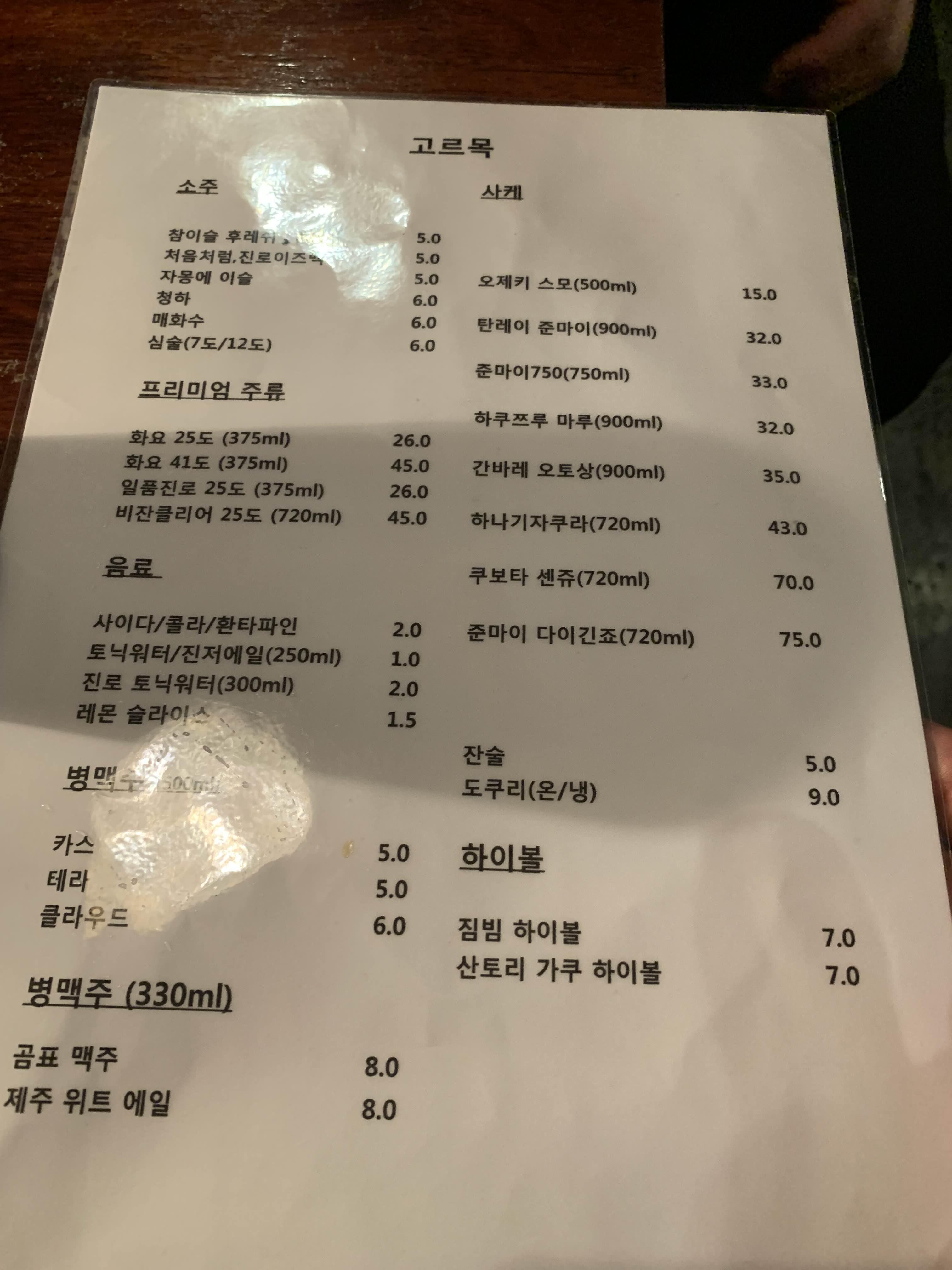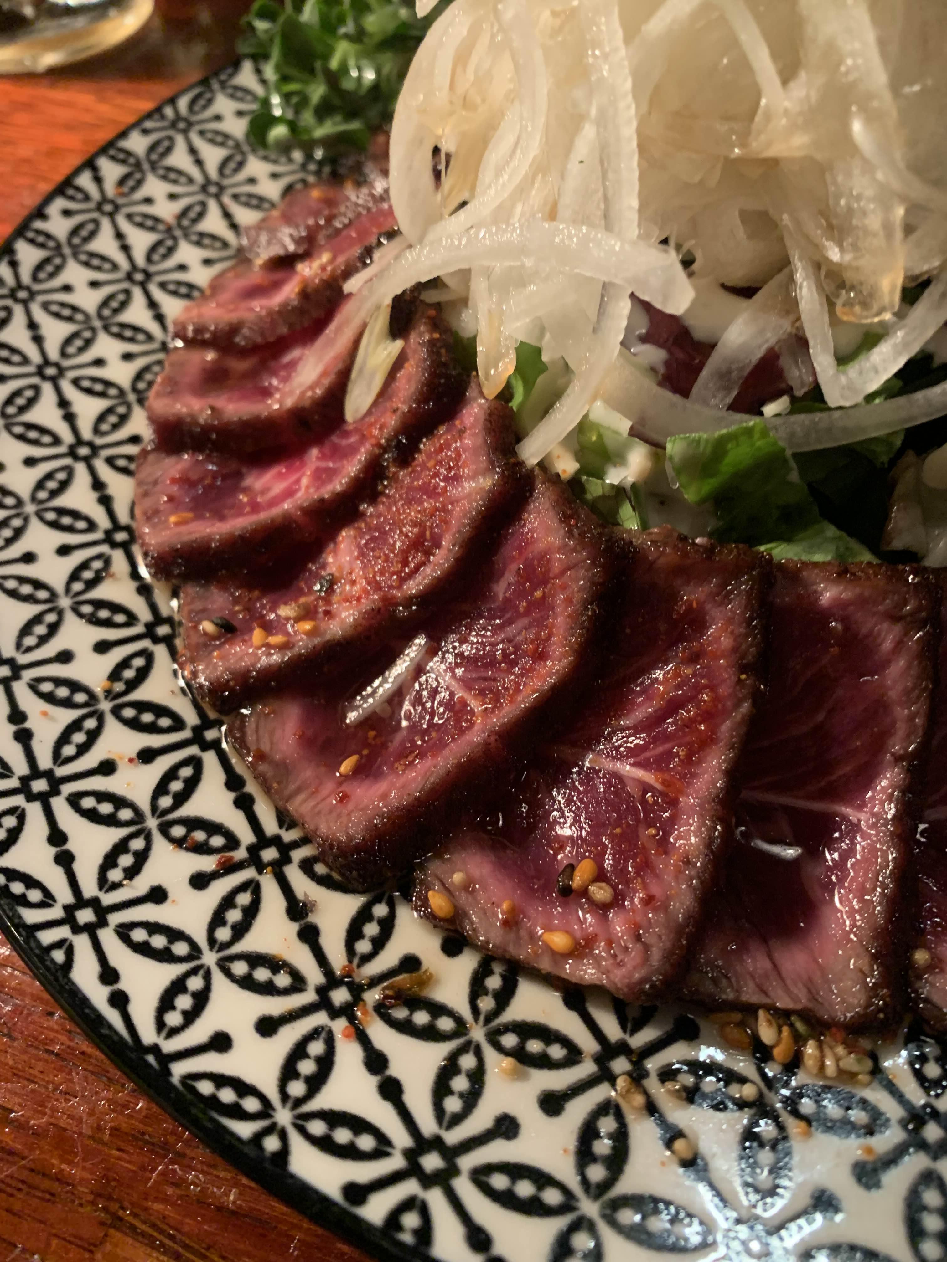 짬뽕탕이 마지막이었으나... 마지막 주문을 해보았다. 소고기 타다끼 19,000원!!! 이 식당의 메인 요리라고 한다. 산토리 하이볼과 소고기 타다키인데... 식당에서는 타다끼라고 표시되었다.ㅎㅎ