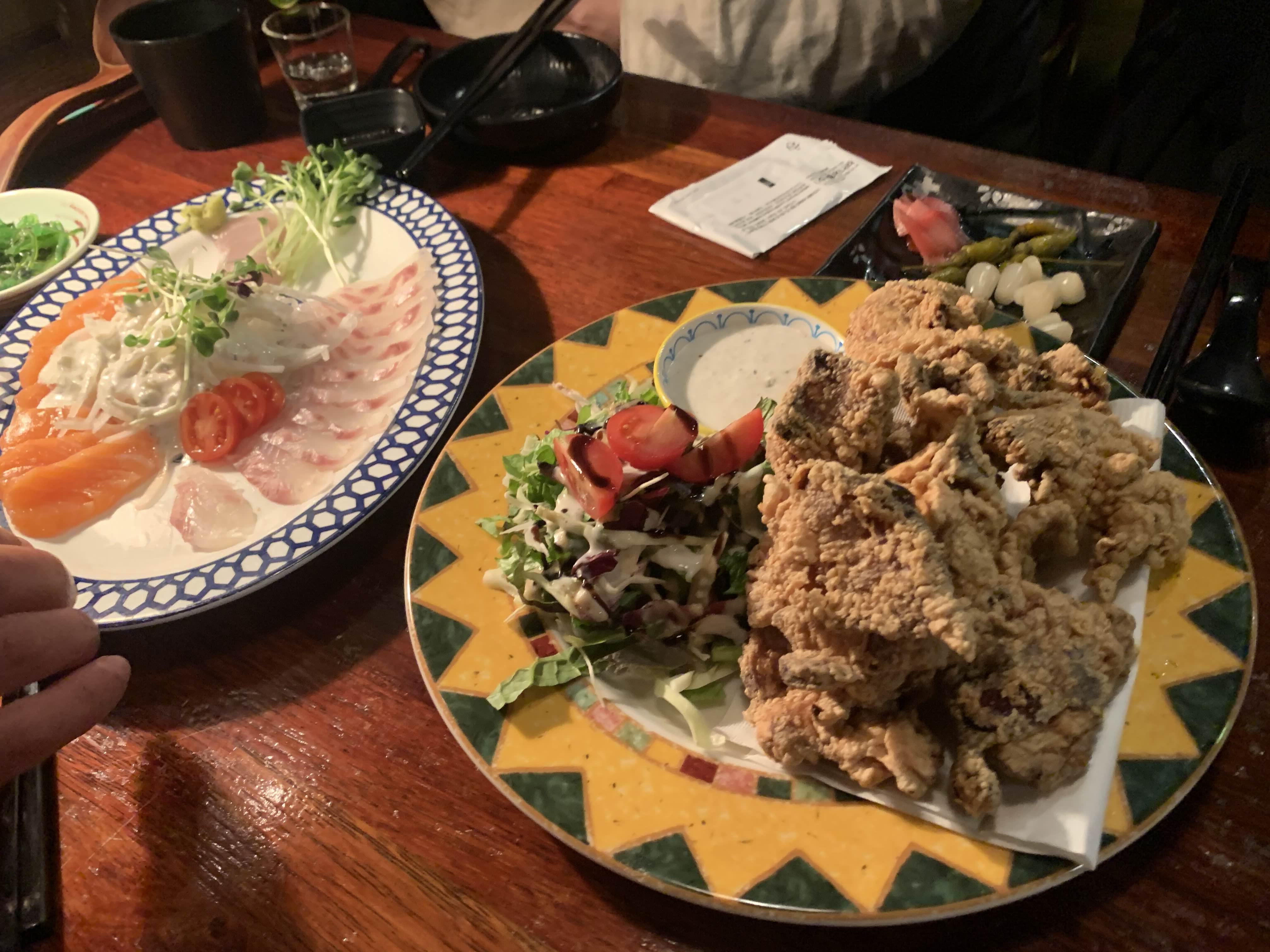 저녁 식사와 반주를 즐기기 위해 식당에 방문해 보았다. 식당은 이른 시간임에도 불구하고, 손님으로 가득 차 있었고.... 남은 테이블은 하나! 그 남은 테이블 안 안착!ㅎㅎ 저녁식사와 함께 술 한잔? 이기에... 광어+연어 사시미 21,000원!ㅎ 닭다리살 가라아게 16,000원을 주문해 보았다.