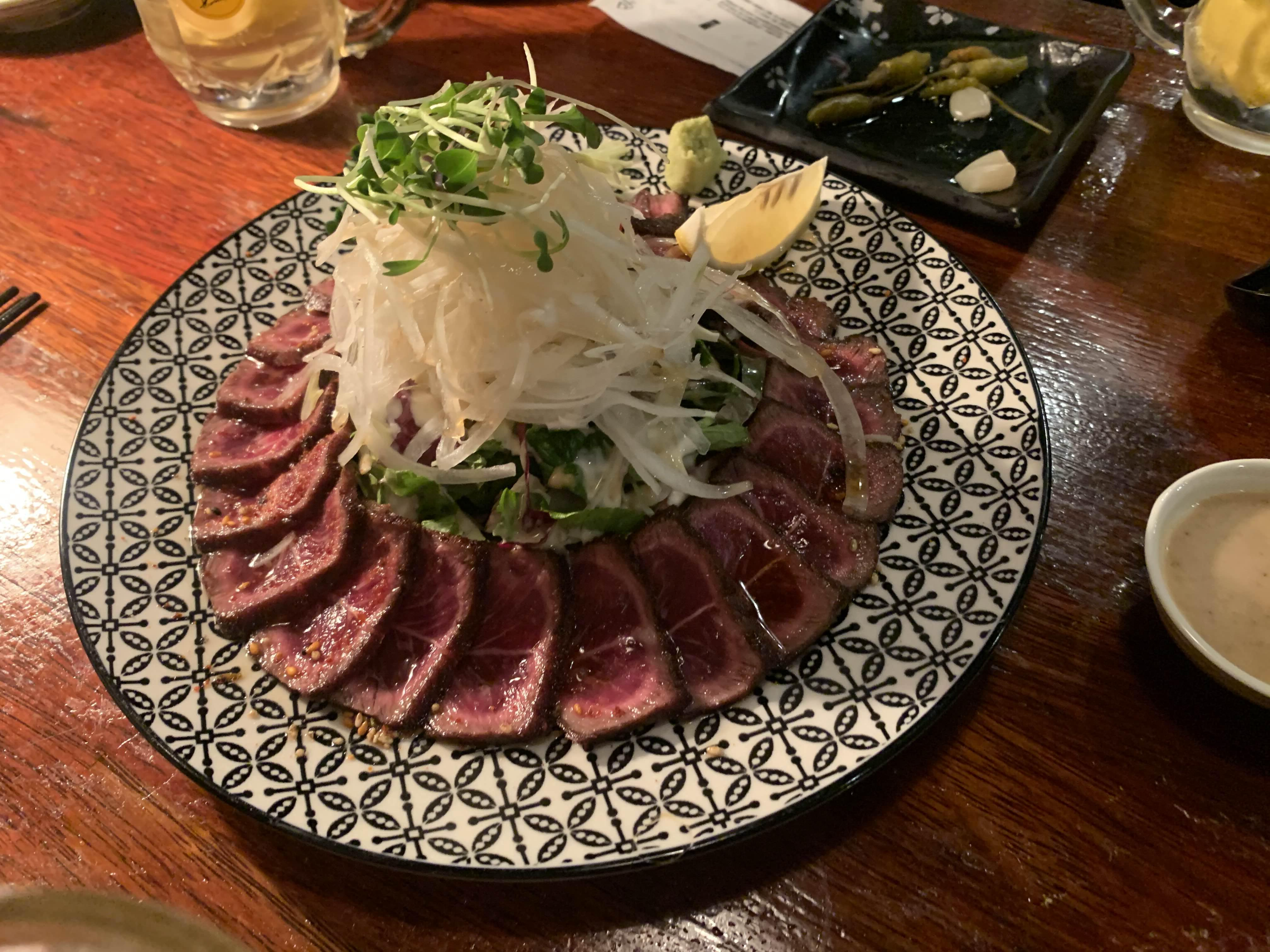 이 식당의 메인 요리 소고기 타다키는.... 겉은 바삭하니... 속은 부드러워 식감이 정말 좋았다. 더욱이... 함께 나온 소스! 이 소스와 찍어먹으니... 바삭함과 부드러운 극대화되었다.
