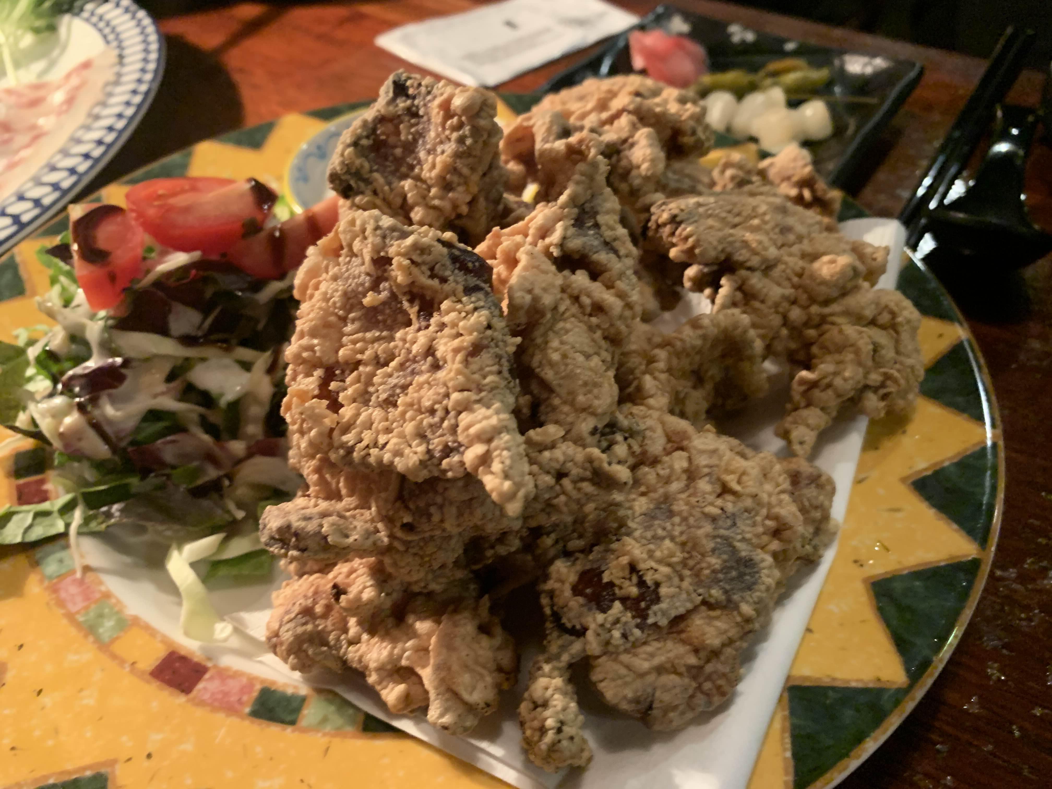 그리고, 닭고기 가라아게(から揚げ) 일본에서 만드는 튀김을 말한다. 치킨과 비슷한 음식이나... 다른 점은... 음 머랄까? 바삭 튀긴 치킨이랄까?ㅎ