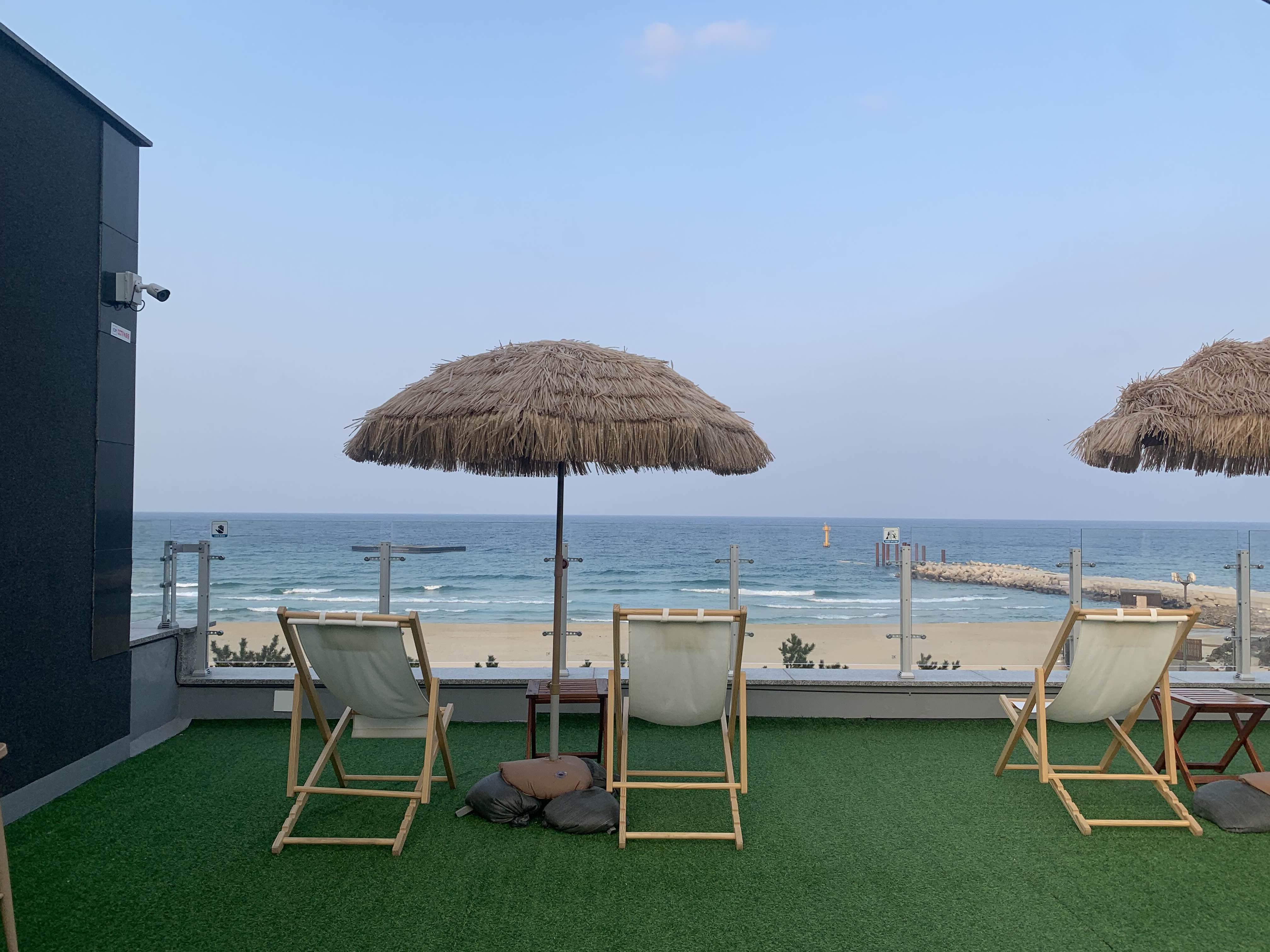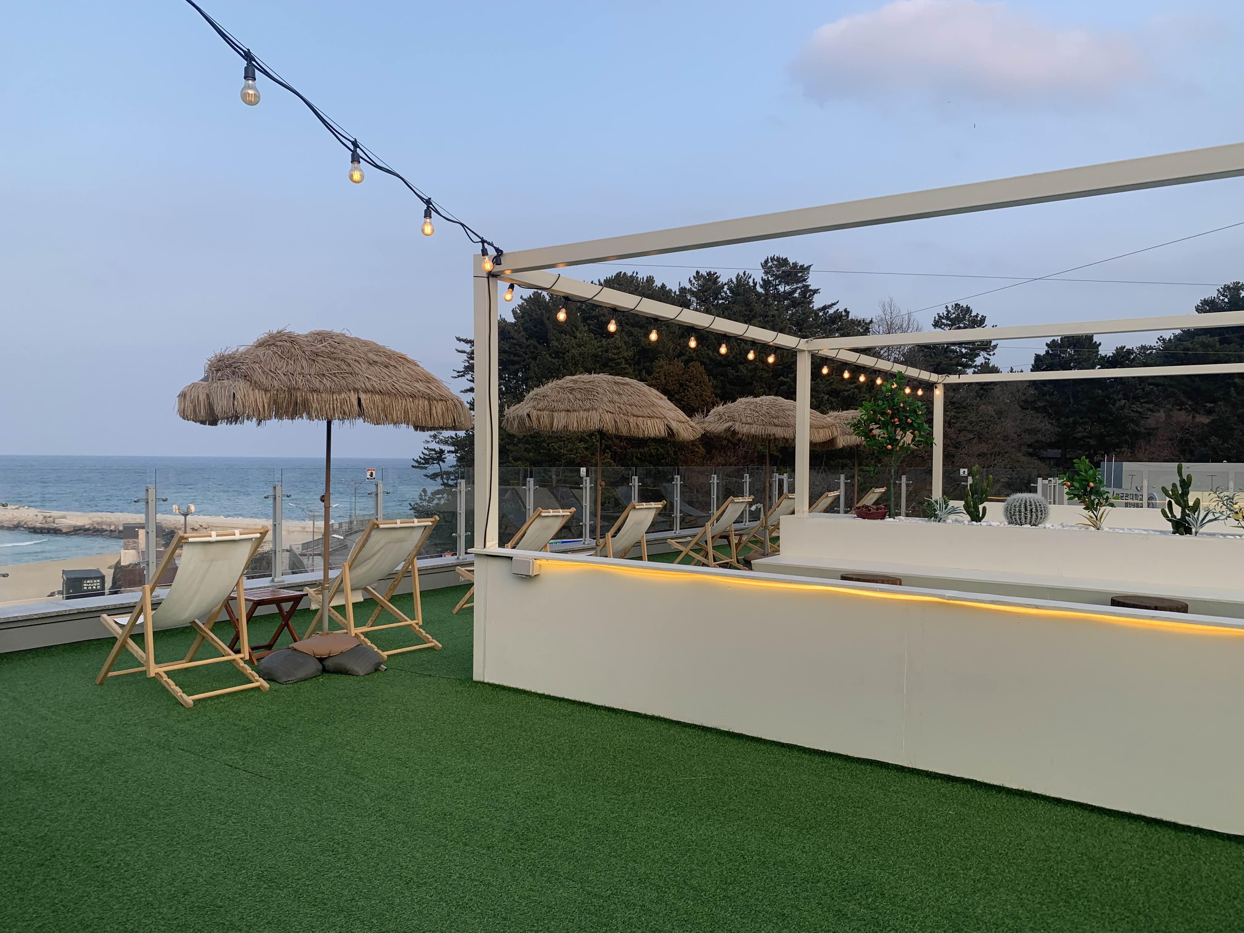 카페 내부 인테리어가 상당히 깔끔하게 되어 있어서.. 사진 찍기 좋겠더군요. 그리고... 옥상 광장은.. 여름 삼척해변을 즐기기 꽤 좋은 장소라 생각되더군요.