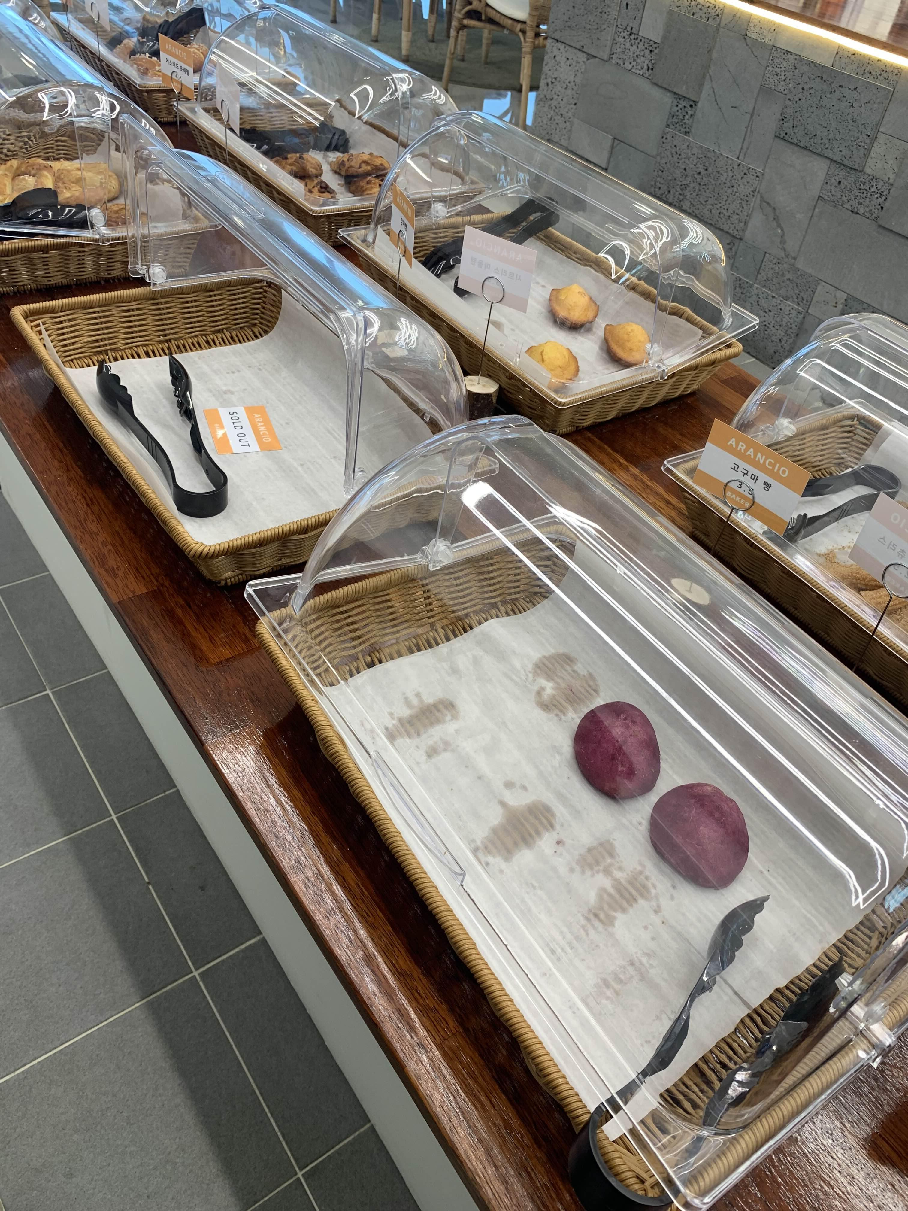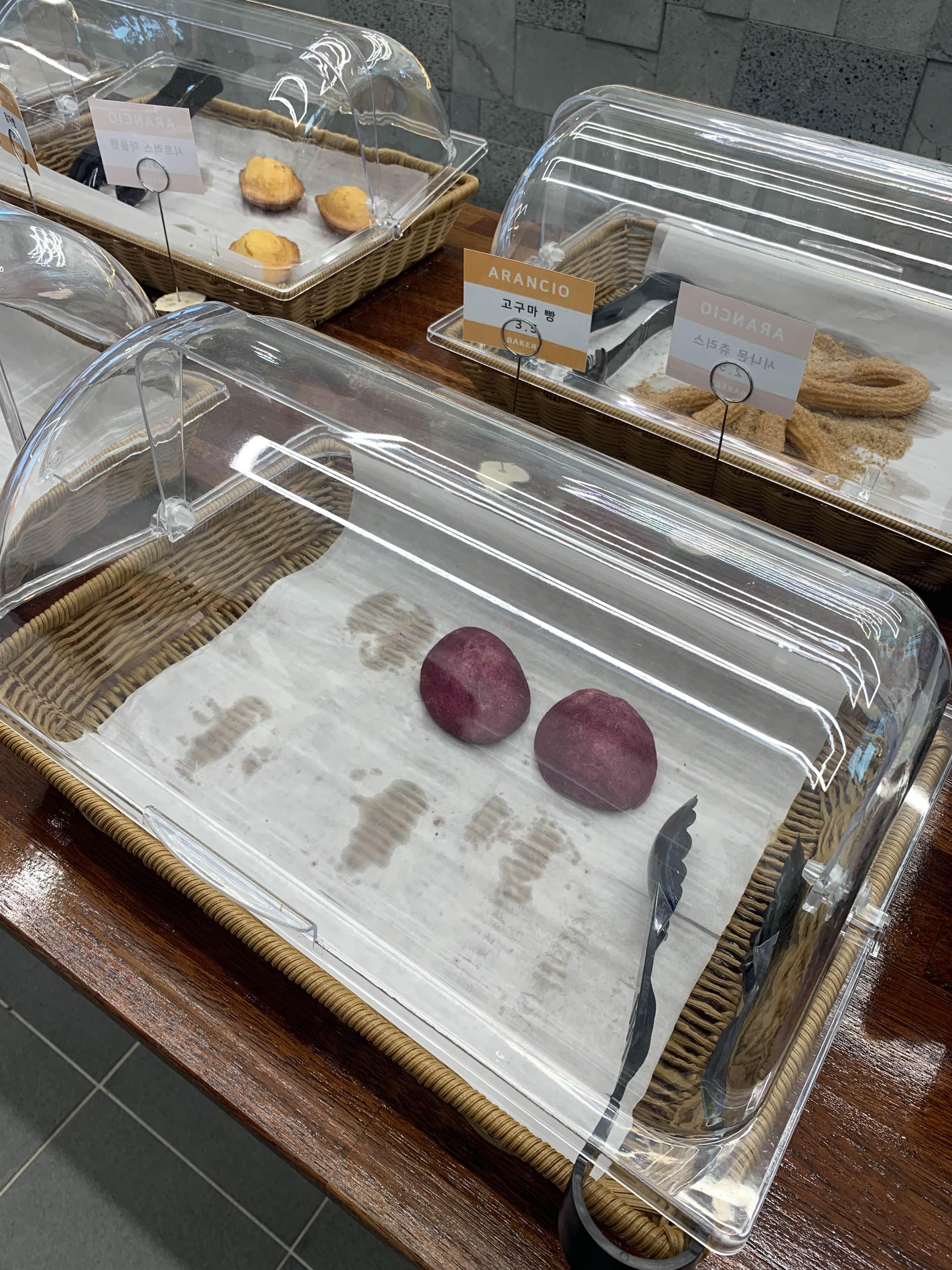 카페에서는 몇몇 베이커리도 판매하는데.... 강원도의 특산물? 농산물을 이용한 고구마와 감자빵이 판매되었다.ㅎㅎ