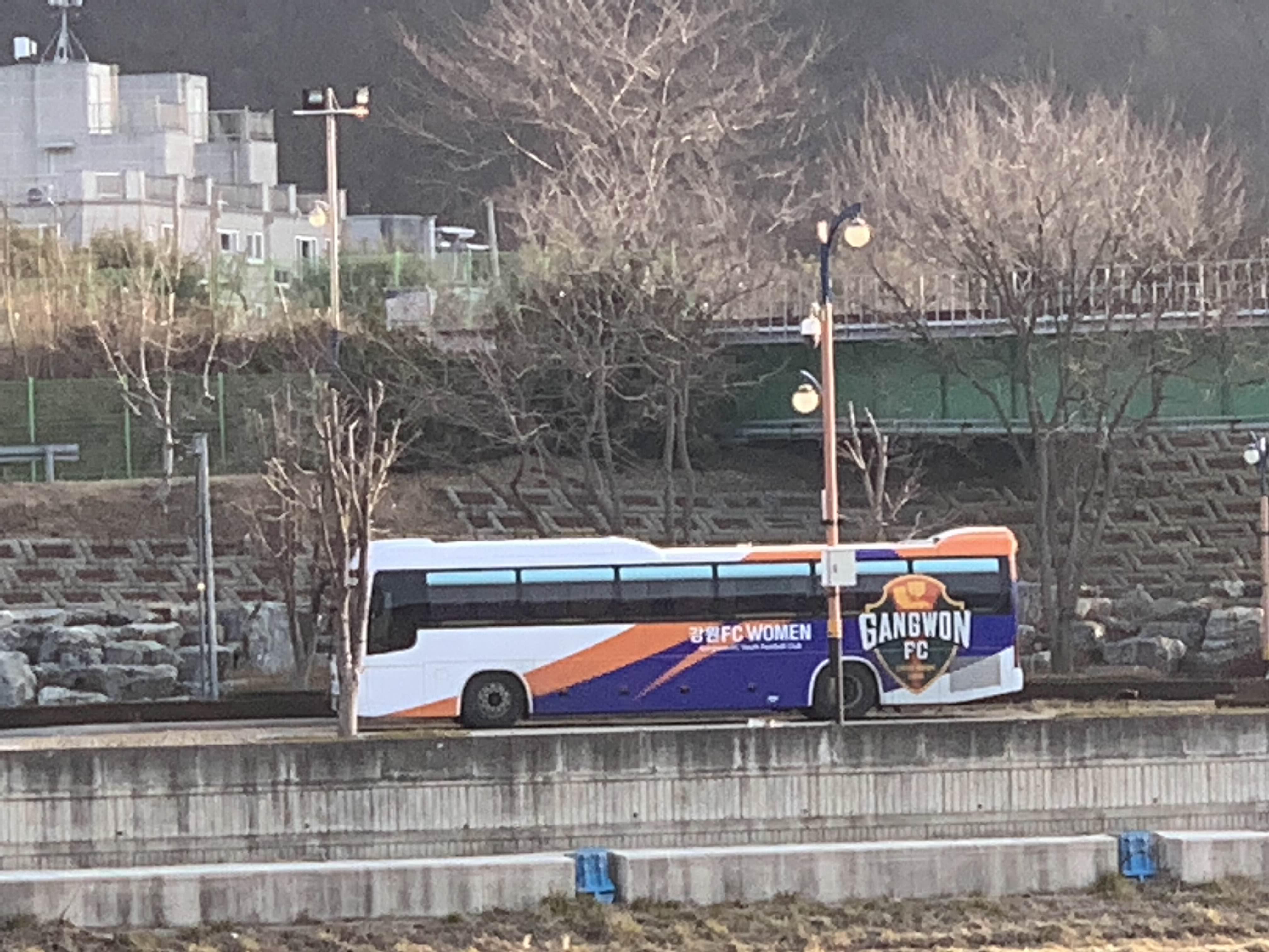 삼척 천변 넘어서는 강원 FC 차량이 눈에 들어왔다. 삼척에는 전지훈련 오셨나?ㅎㅎ 삼척 천변 산책의 최종 목적지로~~