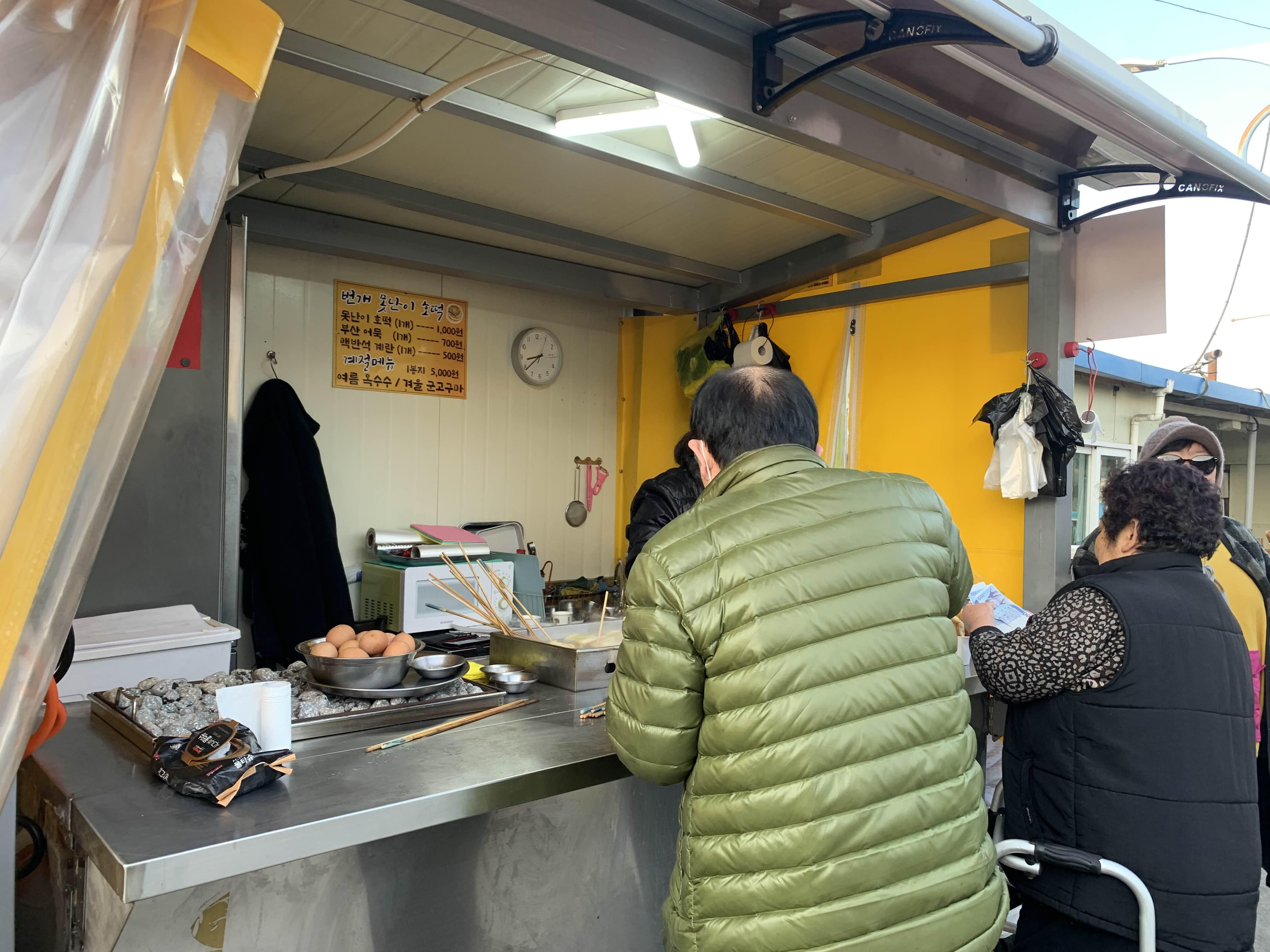 이른 아침 번개시장에서 장을 보시고... 어묵과 호떡을 드시는 손님들이 꽤 계시더군요. 아침 산책을 마치고, 따뜻한 호떡하나 맛보러 주문해 보았습니다. 호떡 가격은 1개 1,000원이고 어묵도 하나 맛보았네요.ㅎㅎ