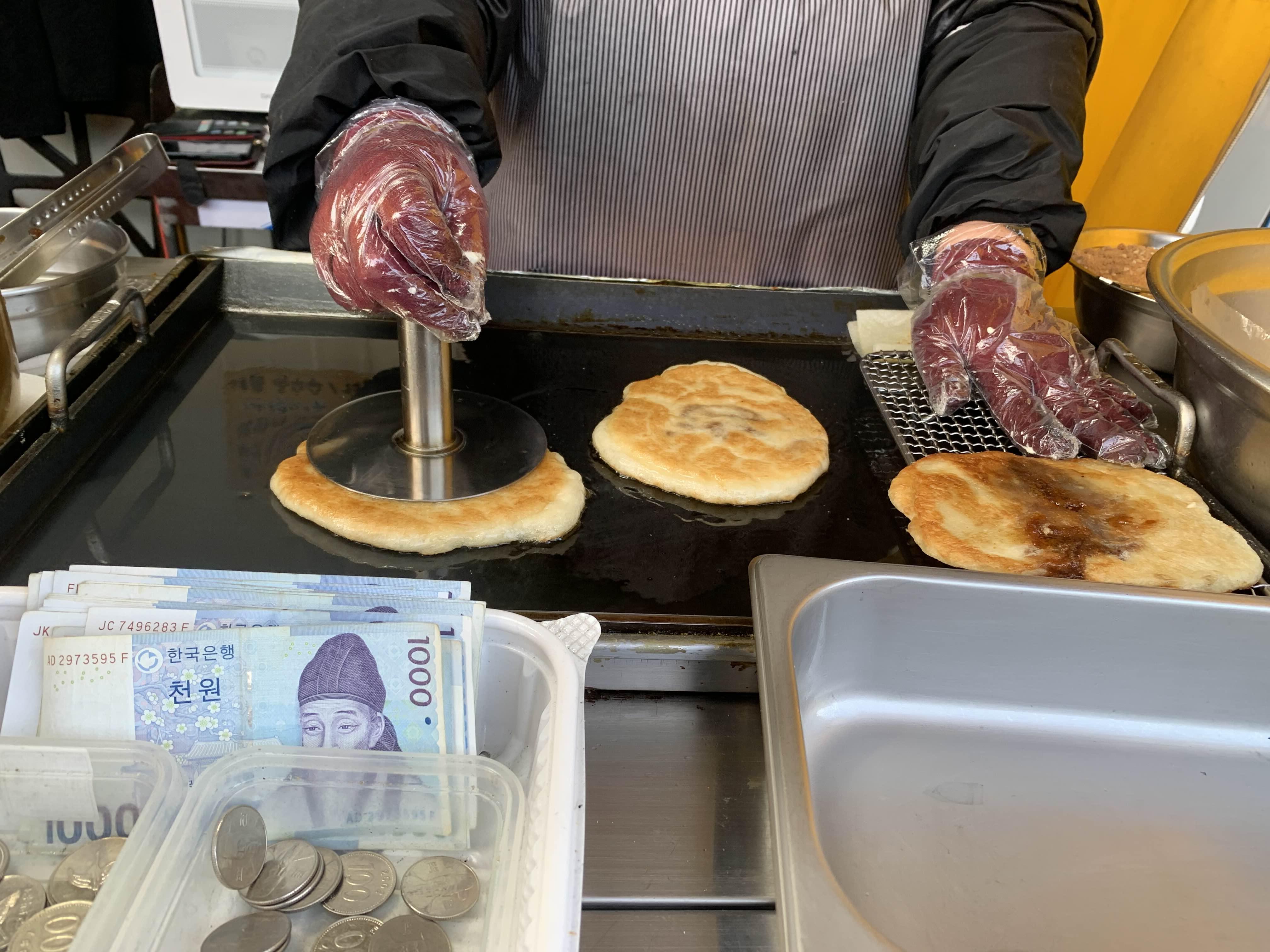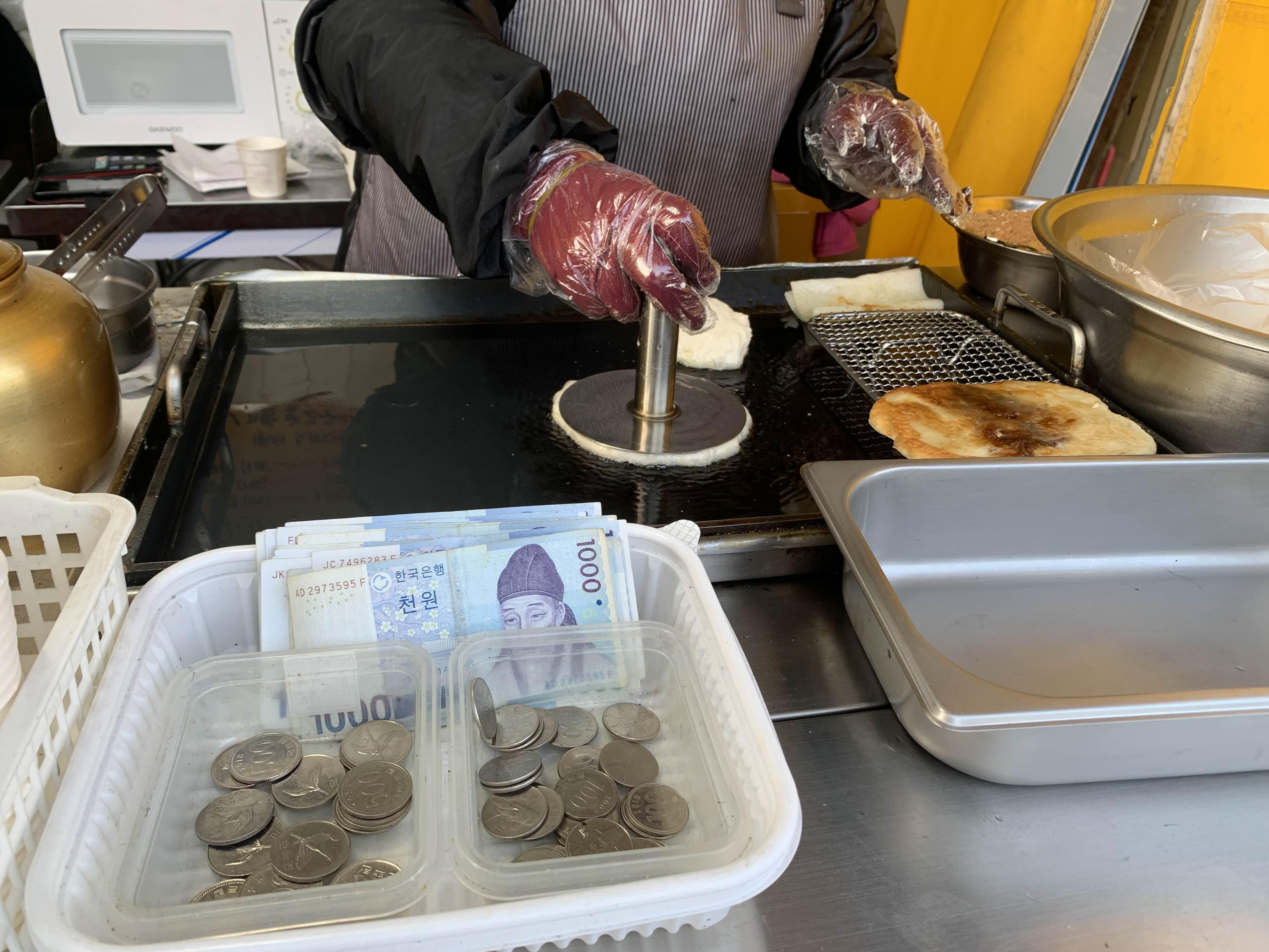 호떡을 다 만들어질 때쯤!! 계산은 호떡집 앞쪽에 위치한 자율계산 시스템?을 이용하여 계산하는 방식이더군요.ㅎㅎ