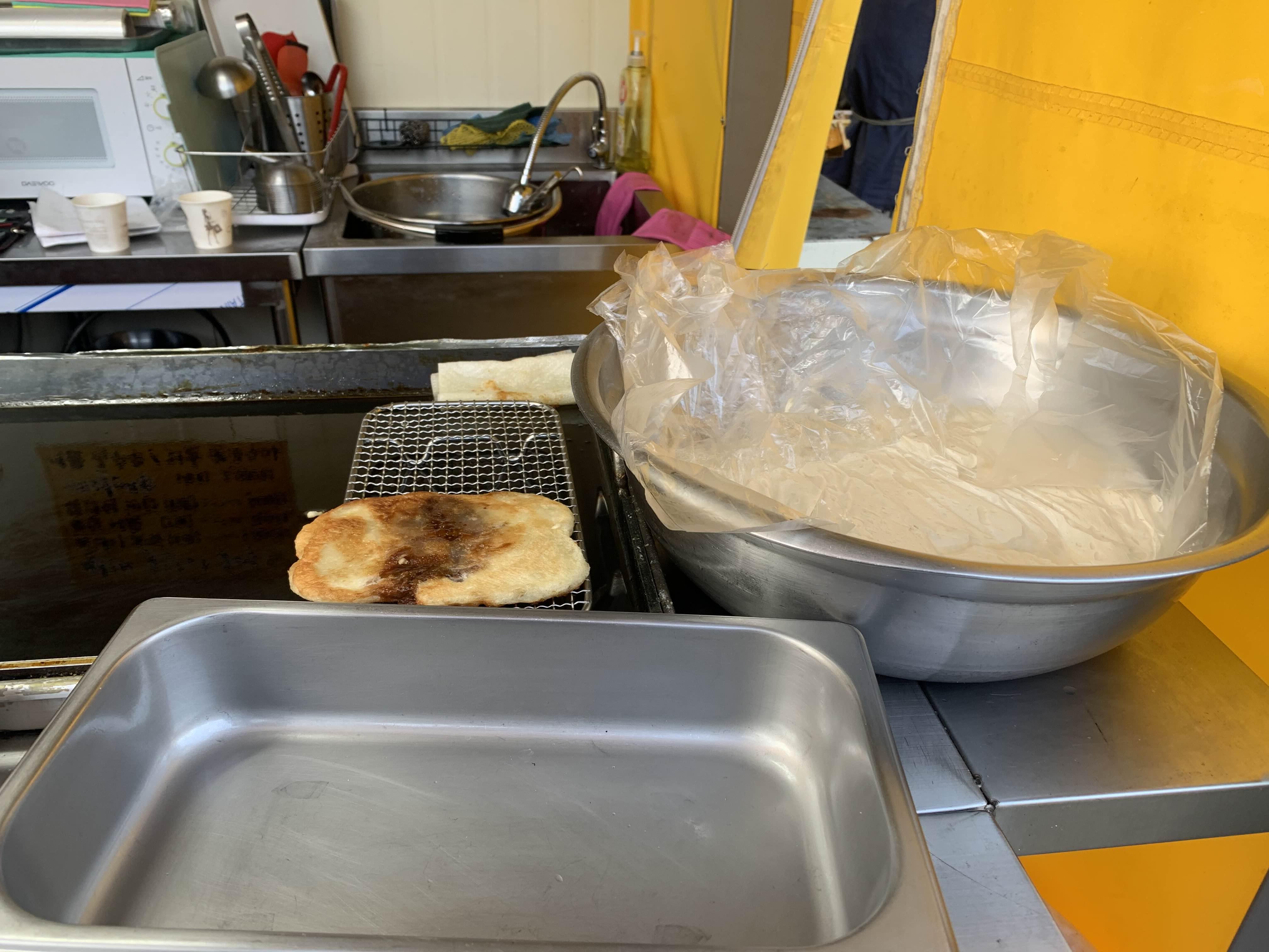 호떡은 주문과 동시에 만들어 주시더군요.ㅎㅎ 호떡집 상호가 못난이 호떡인데... 호떡을 다 만들어주시는데.. 그 이유를 알겠더군요. 호떡을 부치면, 둥글둥글한데... 이 호떡은 둥그런 모양이긴 하나...... 약간 한쪽이 튀어나온 모양이라.;;ㅎㅎ