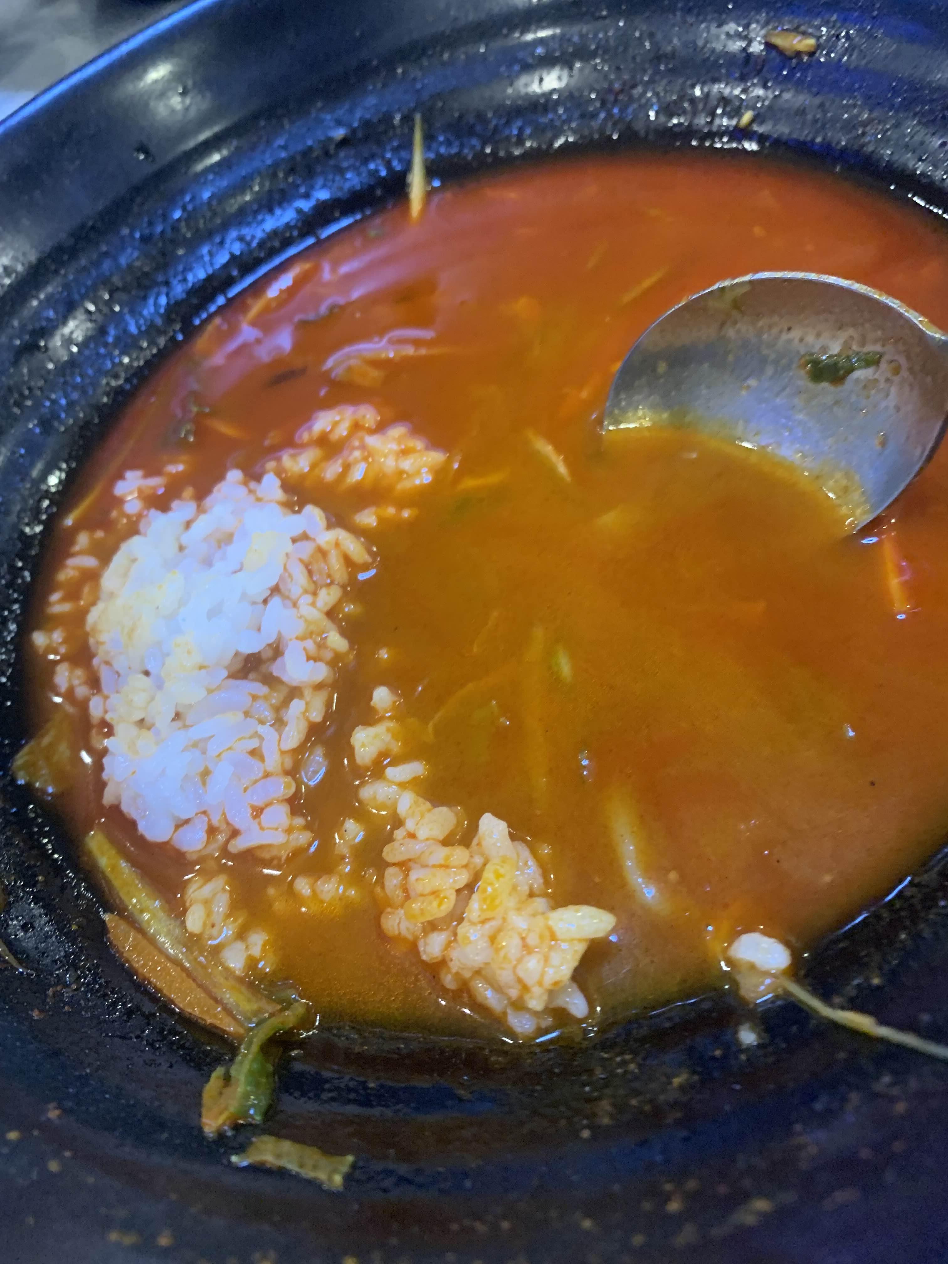 반공기 정도의 밥을 짬뽕에 말아서, 한입 맛보았는데... 국물은 밥과 정말 잘 어울리더군요. 어느 순간 짬뽕 국물은 순삭..... 그릇의 밑바닥을 드러냈습니다.