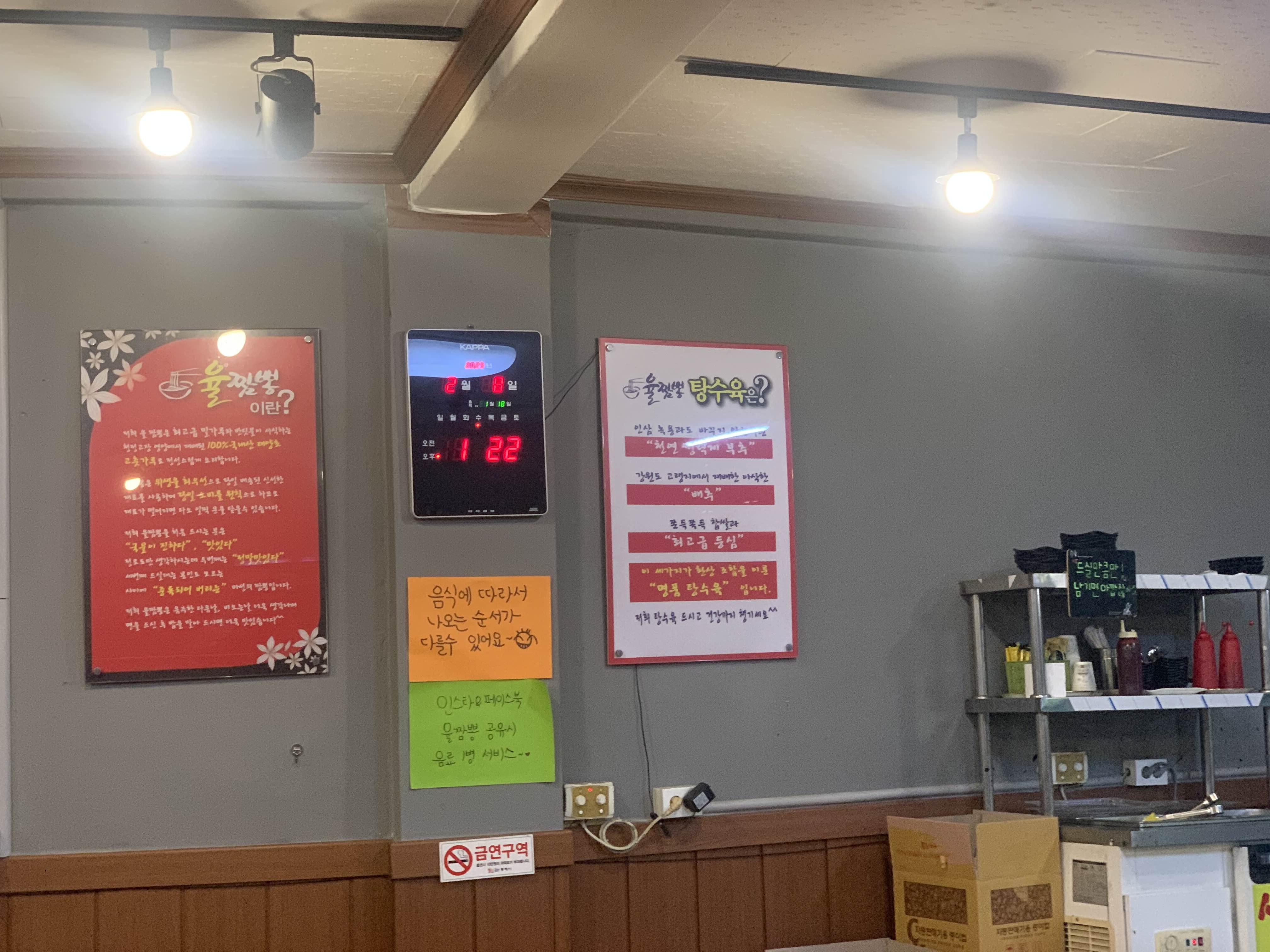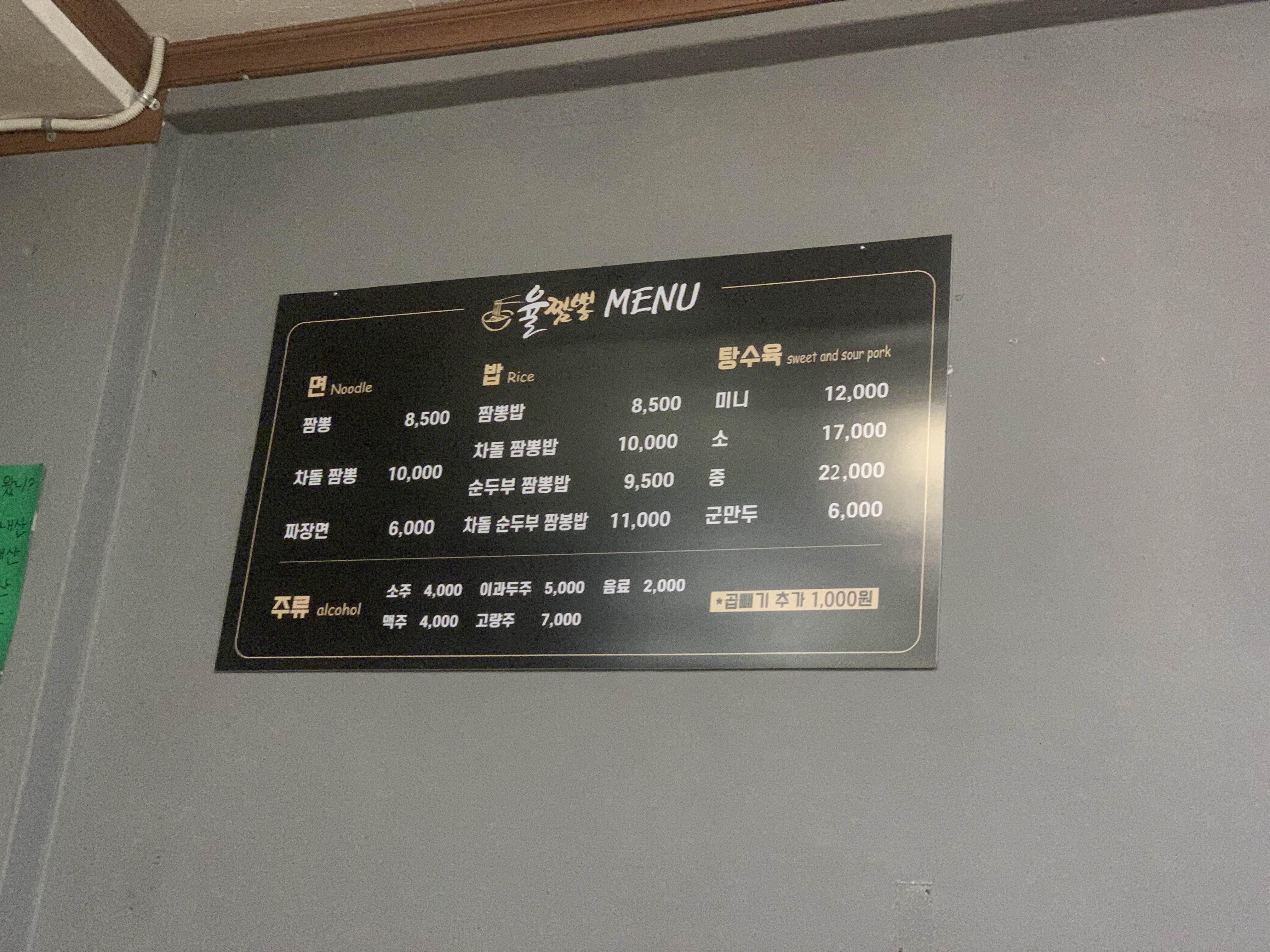 동해 중앙시장에 위치한 중식당!!! 식당명이 율짬뽕~ 방문하여 짬뽕을 주문해 보았습니다. 가격은 8,500원으로... 무난난 가격 때이지만, 시장에 위치한 중식당 가격으로는 약간 비싸게 느껴지는 가격이었네요. 그리고... 식당을 찾기 위해... 중앙시장을 걸어 다니며... 시장에 중식당이 있을까?라는 생각이 들었는데, 중식당이 있었고... 식당 규모가 다른 식당에 비해서 상당히 큰 규모로 운영하고 있더군요.