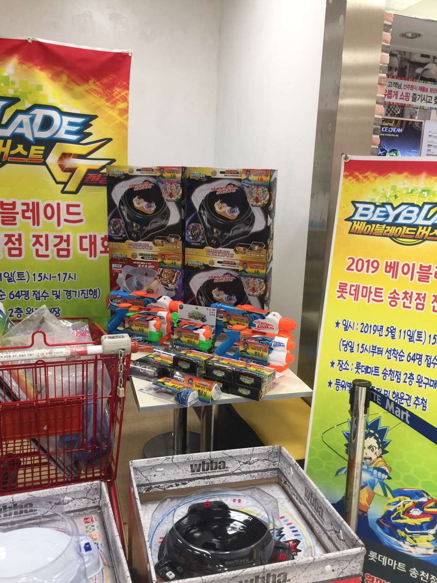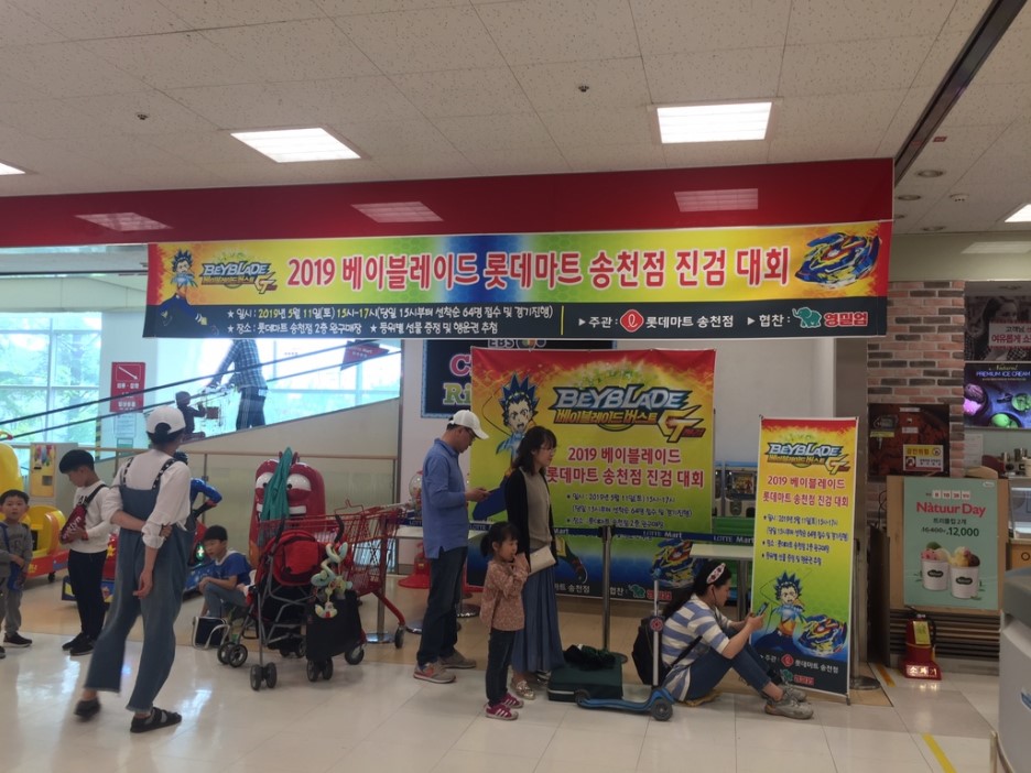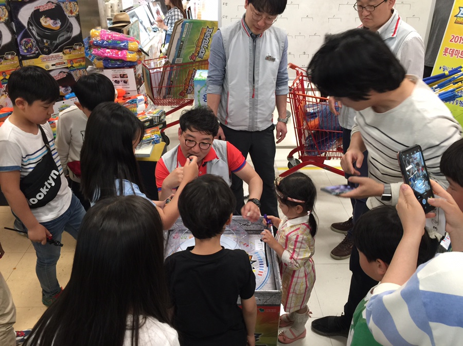전주 송천동 롯데마트에서 베이블레이드 베틀이 오후 3시에 있다고 해서 찾아가 보았습니다. 베이블레이드 베틀? 이런 거에 사람들이 많이 오겠어 했지만?? 송천동 롯데마트에 이렇게 사람들이 많이 모인 적이 없을 정도로 많은 사람들?(부모님)이 모였네요.