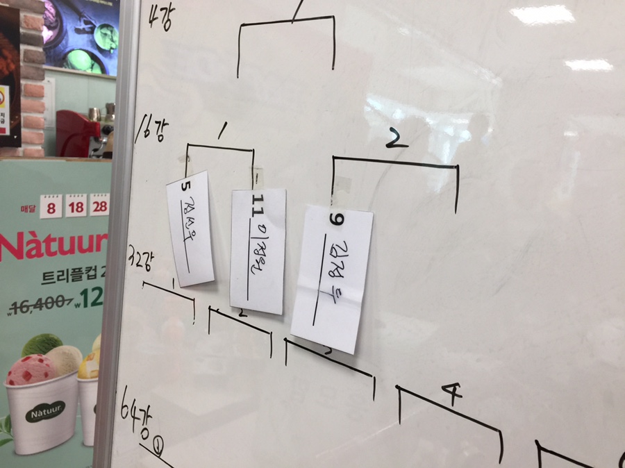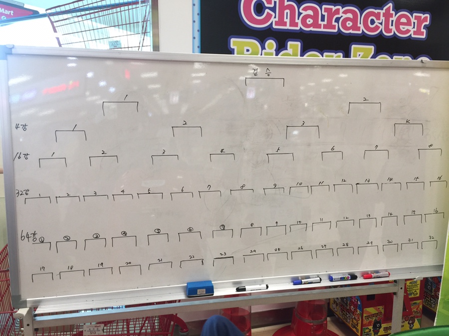 경기는 토너먼트로 진행되었고, 팽이 조합은... 정식 경기라 아니라서... 베이블레이드 팽이면 어떤 조합이든 가능했네요. 그래도 64강 대진표도 만들어서 경기에 흥미?를 돋우는 역할도 해주었습니다. 경품과 행운권 추점을 위한 상품도 진열되어 있었습니다. 베틀을 위한 베틀장 설치가 되어 있었는데.... 다른 아이들은 베틀짱을 가지고 대기하며 베틀 준비하고 있었습니다. 선우에게 베틀장 하나 구매해 주어야 겠네요.ㅎㅎ