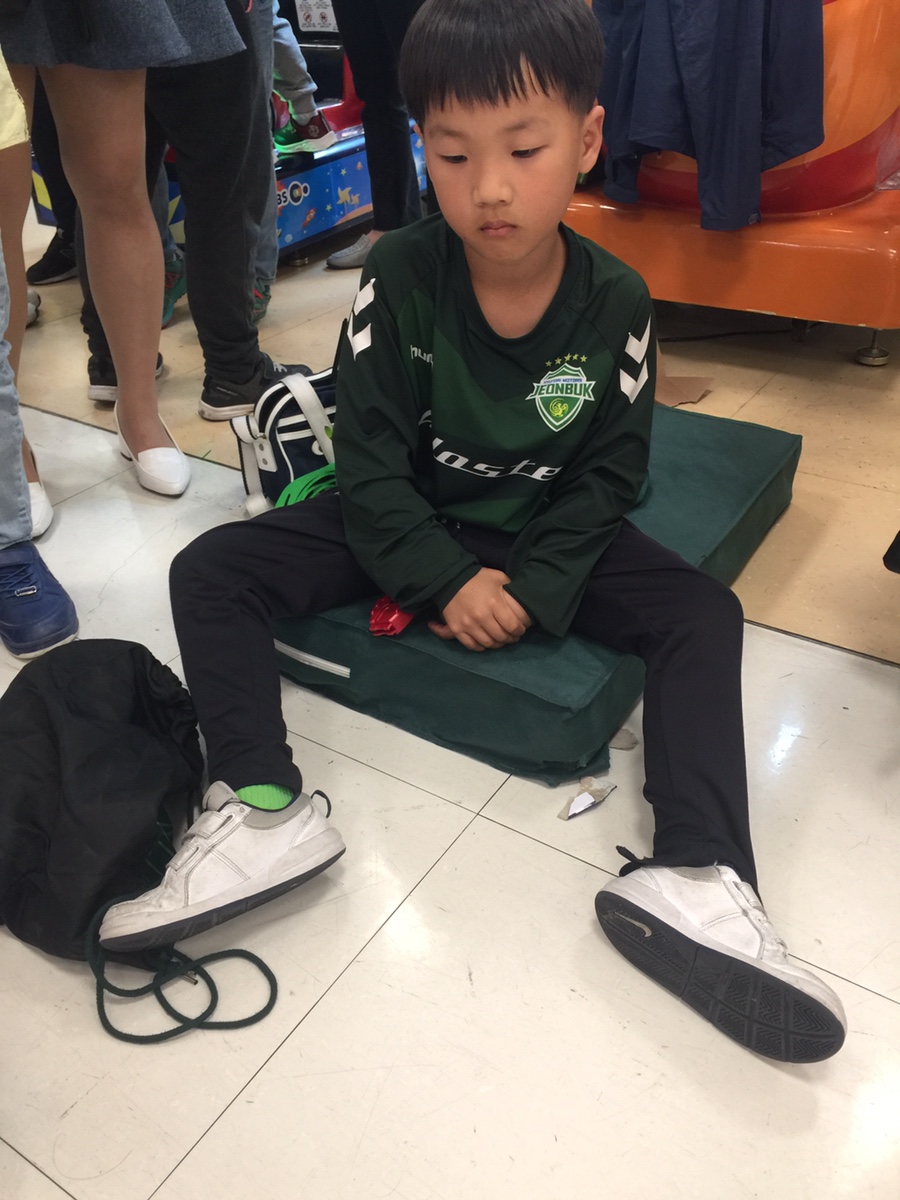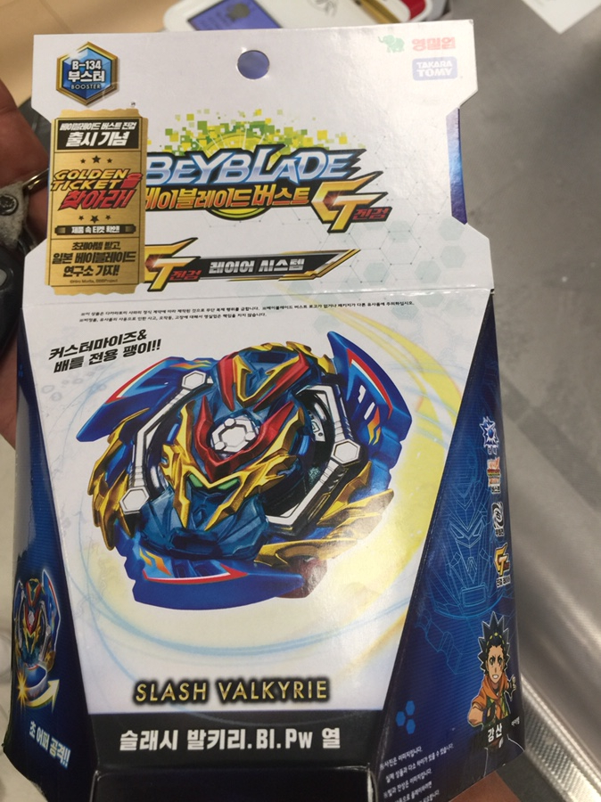 너무 오랜 기다림이 지친 선우^^ 그래서 롯데마트에서 베이블레이드 버스트 진검^^ 발키리 진검 버전으로 하나 사주었네요. 진검 팽이를 가지고 다른 조합도 해보고, 경기에 참가한 아이들과 바닥에 모여서 미니 베틀도 해보고.... 즐거운 시간을 보내며 대기를 했습니다.