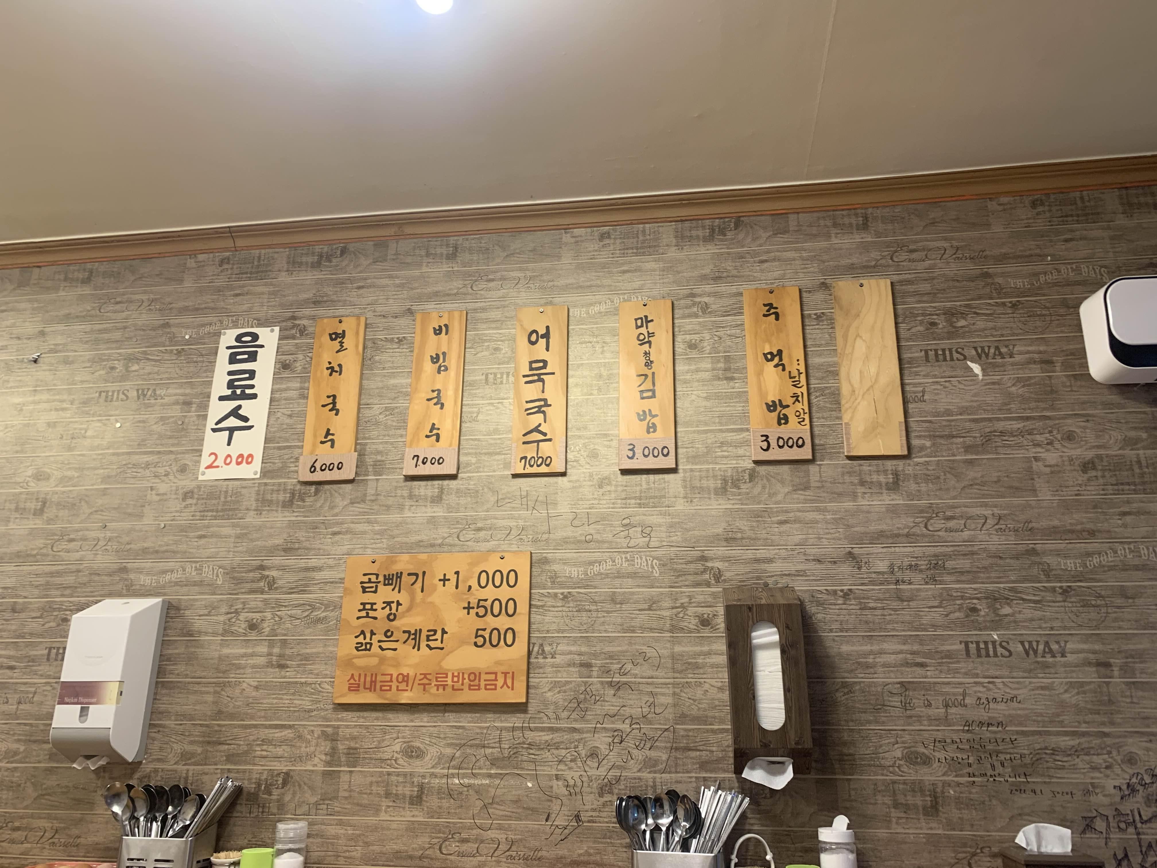 오랜만에 방문한 멸치국수!! 메뉴판을 스캔하는데... 국수 가격이 많이 올랐더군요. 멸치국수 6,000원 비빔국수 7,000원으로... 국수 가격이 한 끼 식사 가격이 되었네요^^ 그리고.... 메뉴가 추가되었는데, 어묵국수? 마약김밥, 주먹법.... 왠지 메뉴가... 너무 늘어난 느낌이;; 음식 주문은 멸치국수 기본과 비빔국수 곱빼기로 주문해 보았습니다.