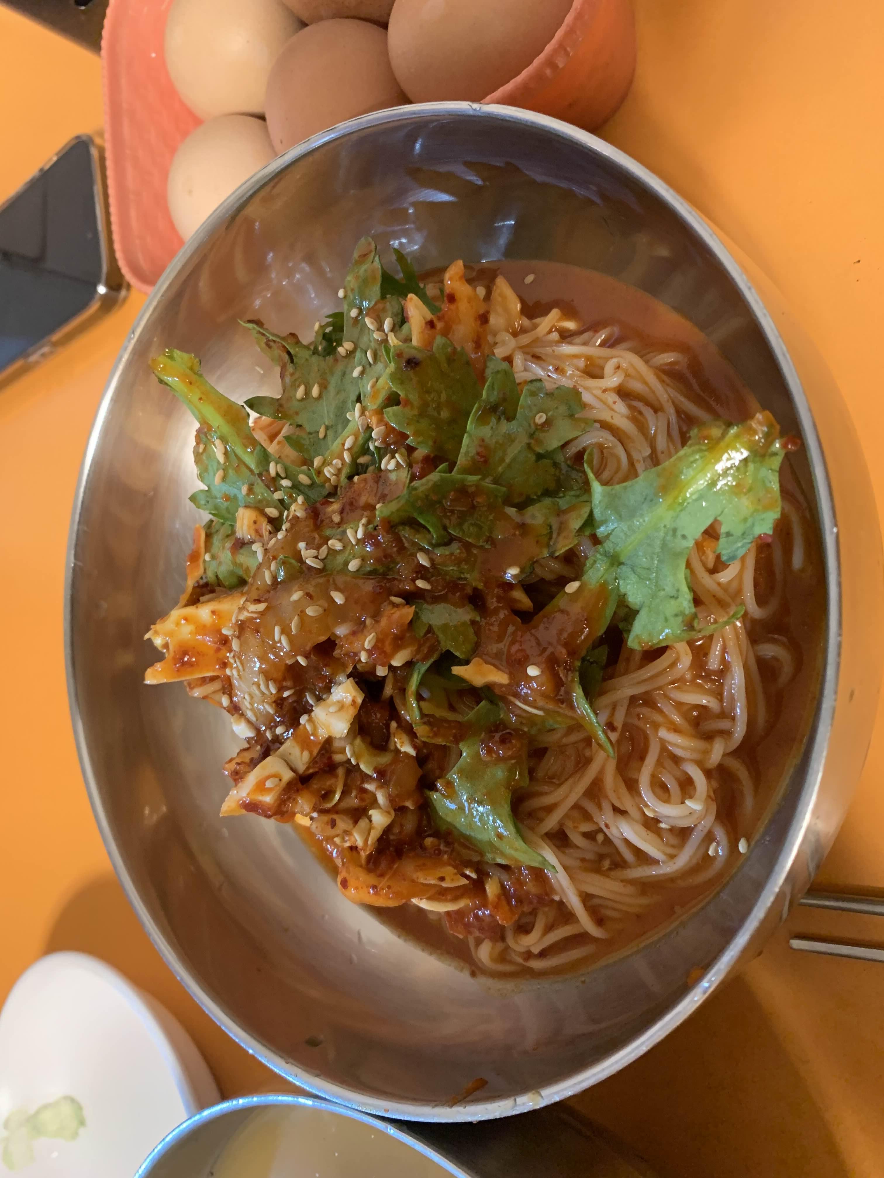 국수 옆 삶은 달걀도 있었지만... 달걀은 삶은 달걀보다는 프라이를 좋아해서 패스!ㅎㅎ