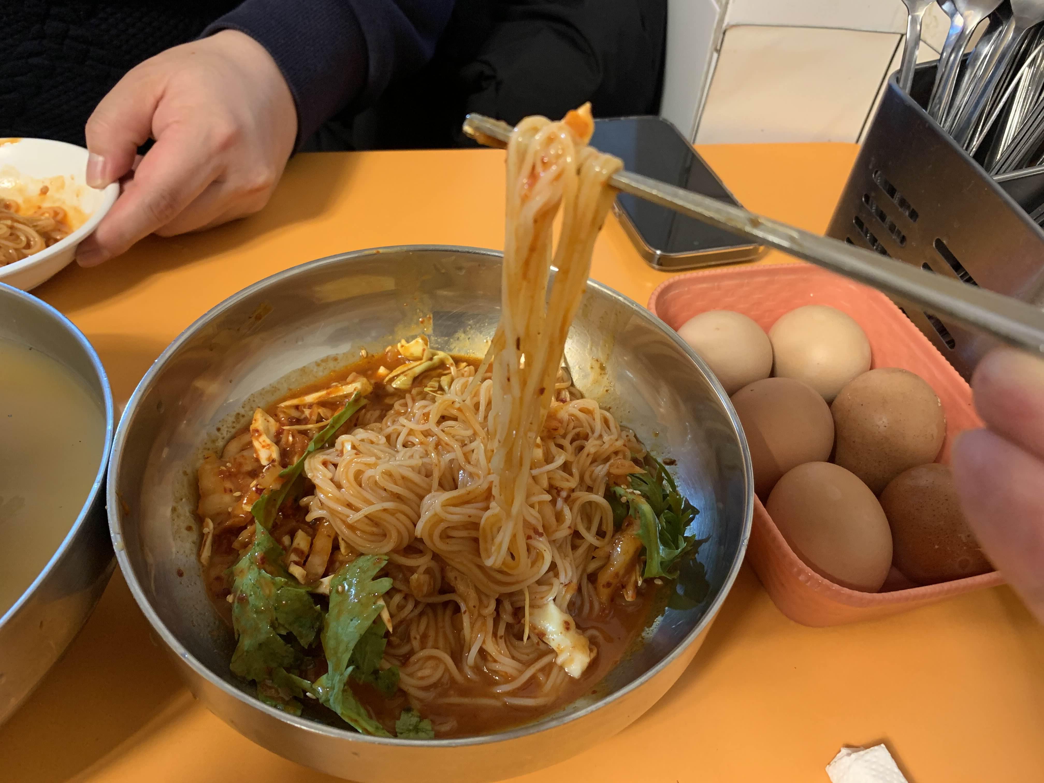 비빔국수에는 양념과 김치가 썰어져 들어갔는데, 그 김치가 식감이 꽤 괜찮더군요.