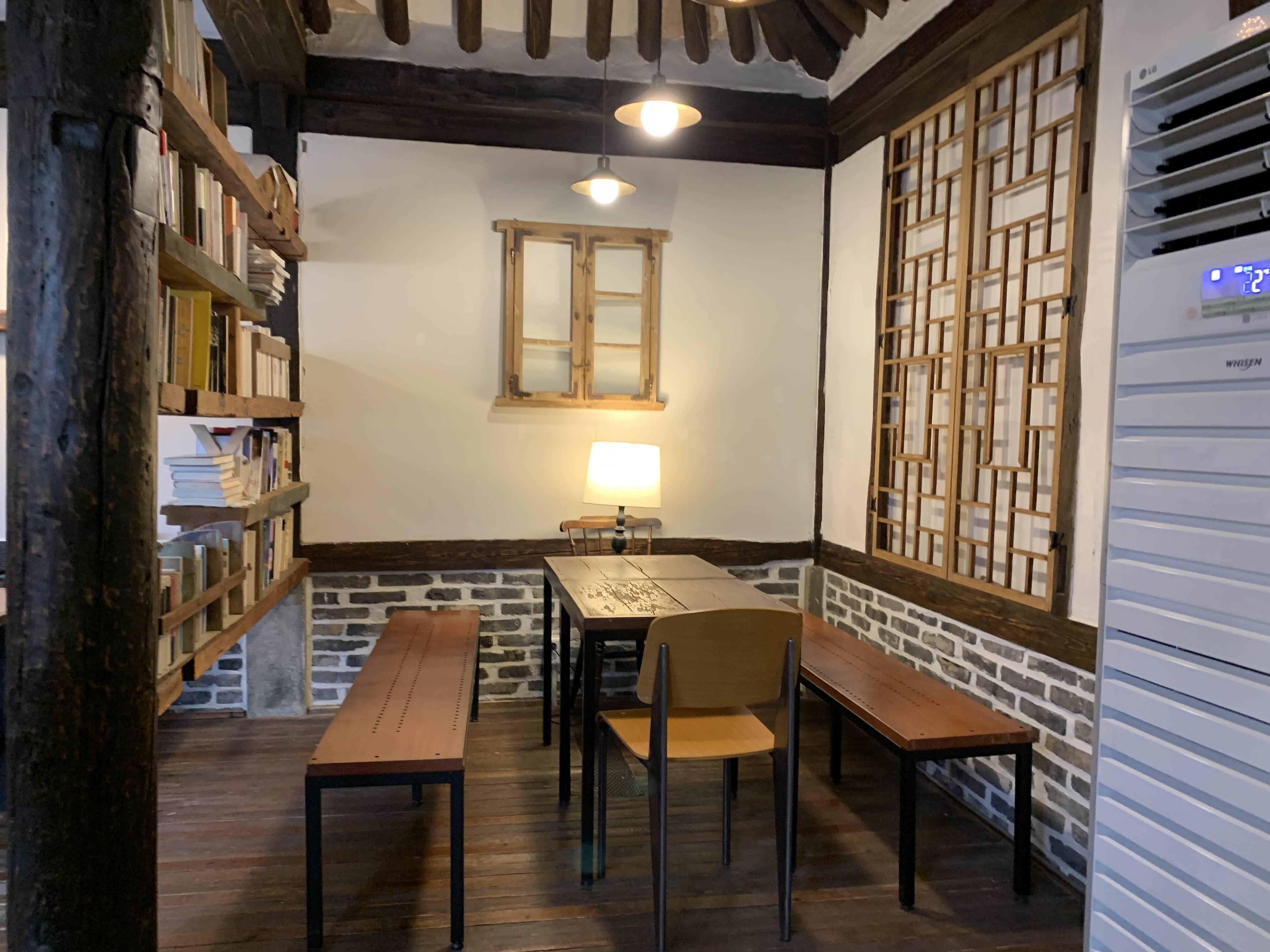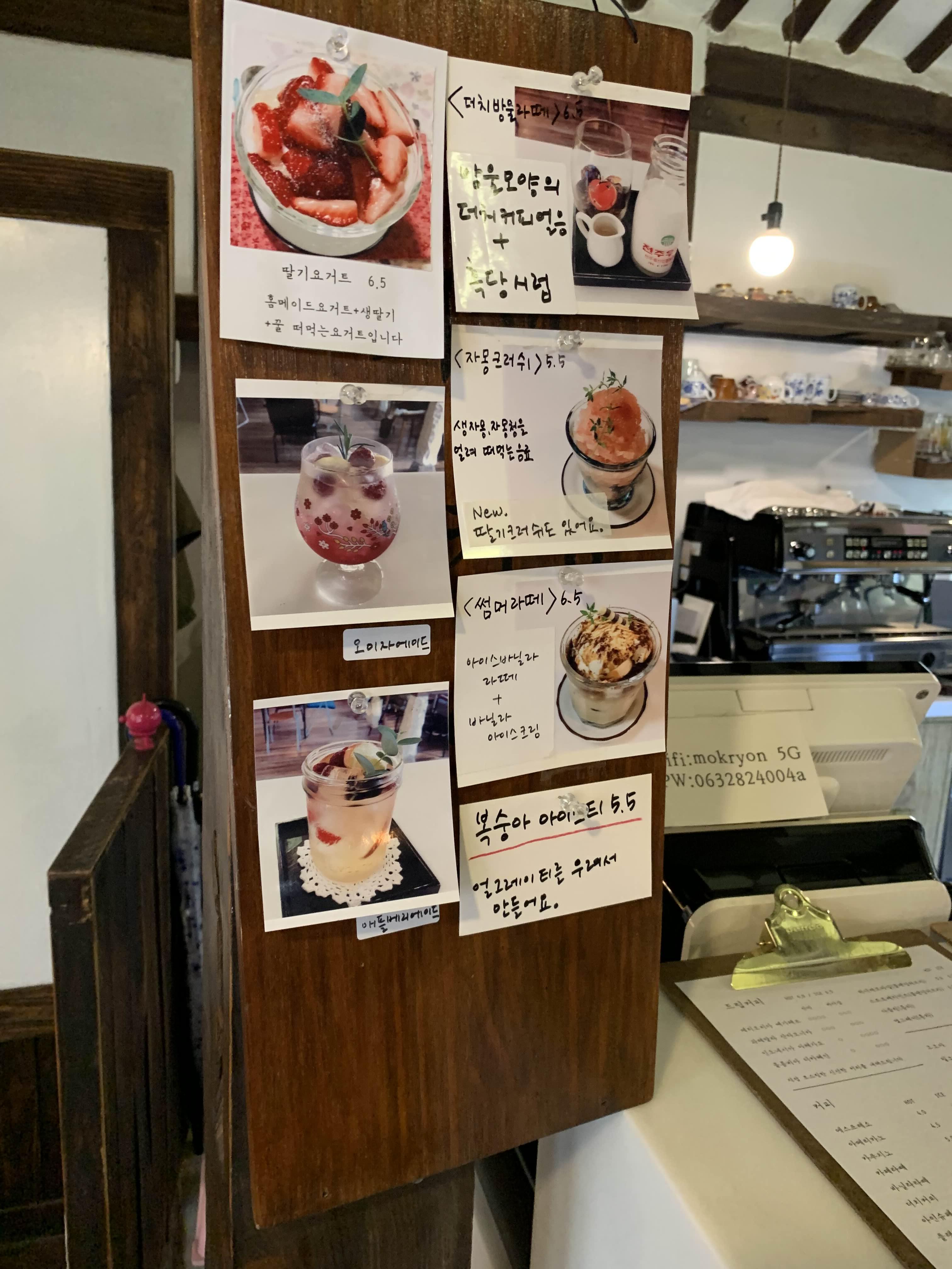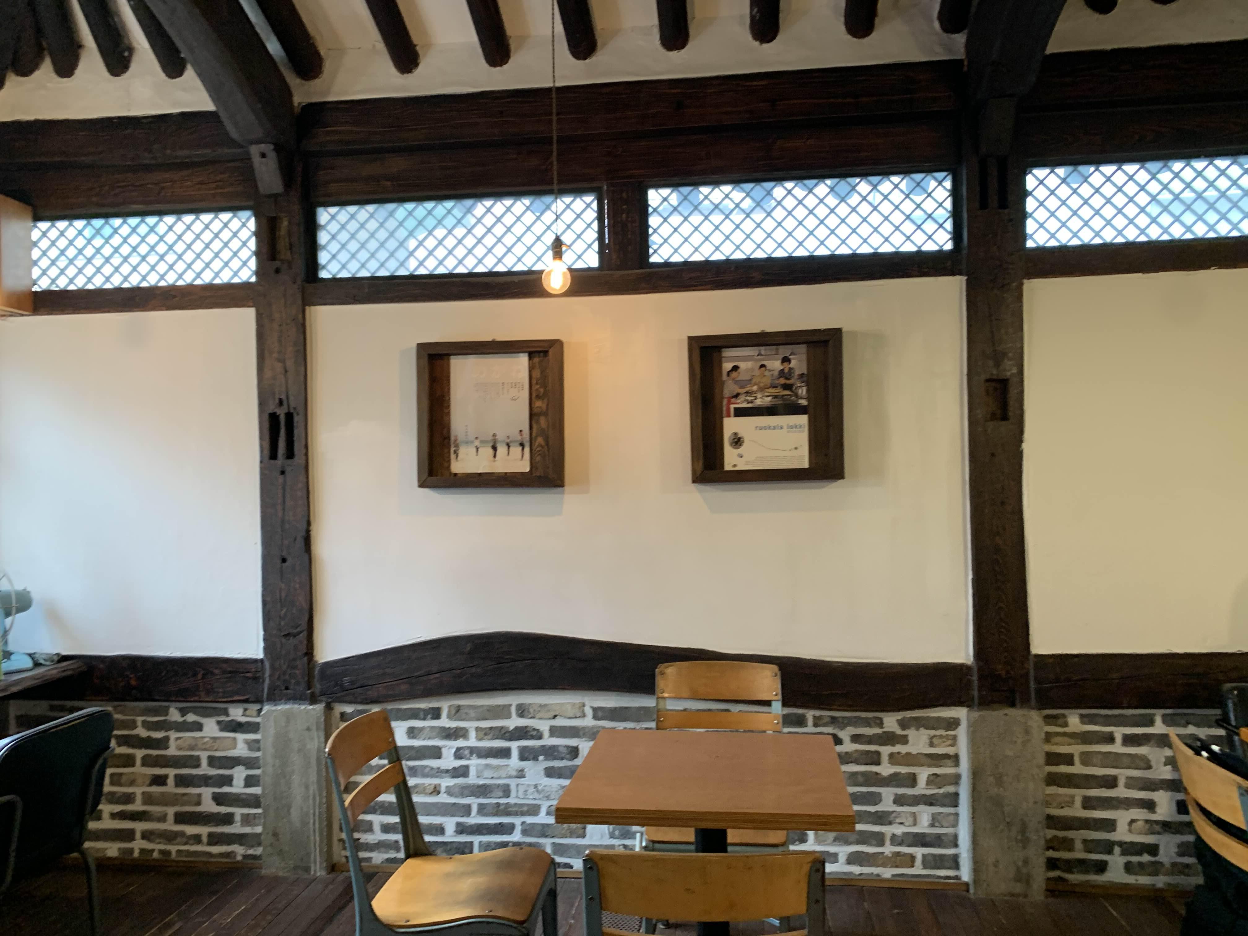 그리고... 한옥의 구조를 확인하기 위해 천정만 보았는데.... 어느 던 나의 시선은 바닥면을 향하는데... 마루널이 쪽 판으로 되어서.. 걸을 때마다 마루의 나무가 부딪혀 나는 소리가 즐겁게 들렸다. 이런 소리는 캄캄한 장소에서 들으면... 썸득하나, 카페의 화사한 분위기와 만다니 귀가 즐겁다.