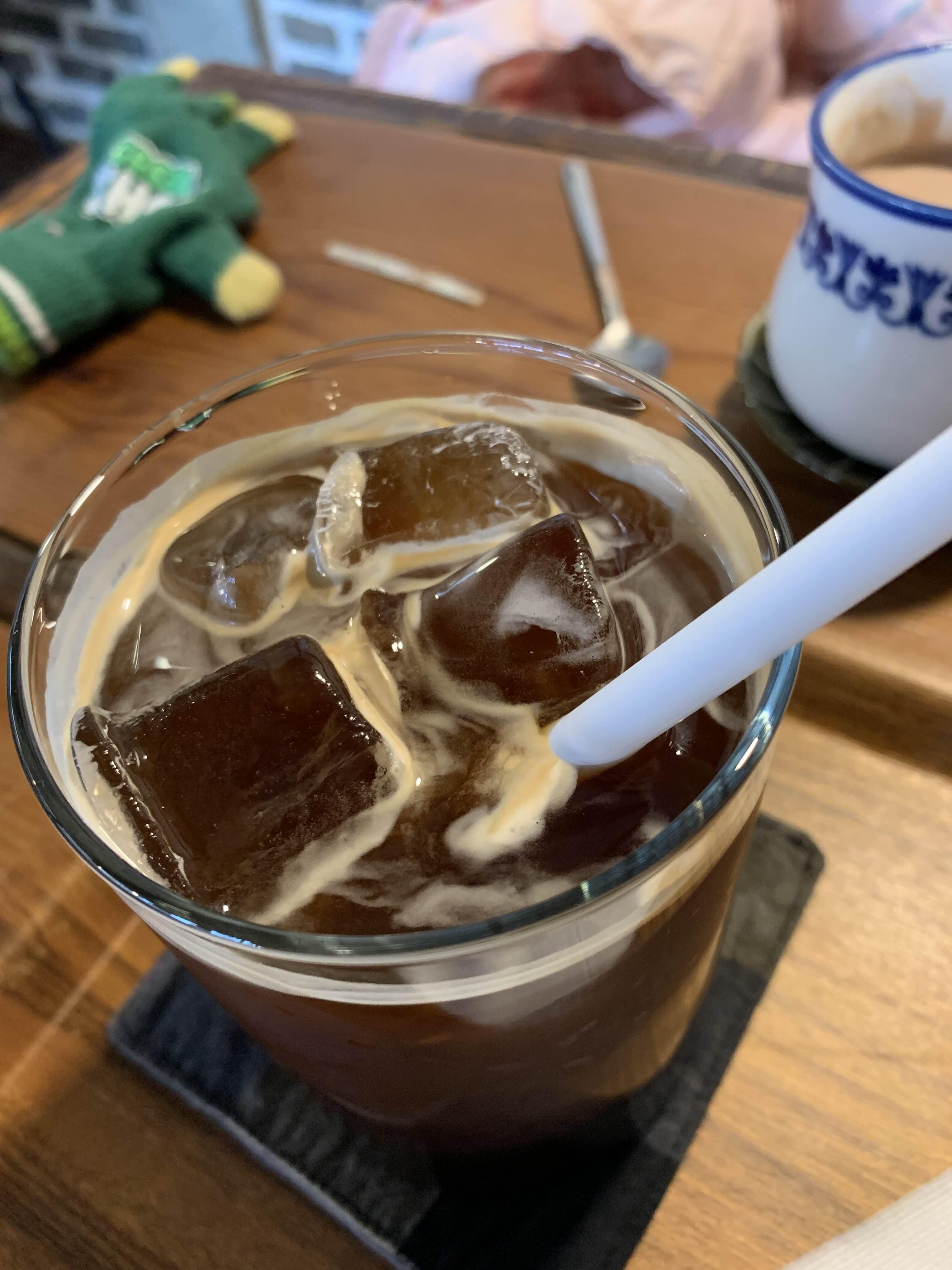 아이와 함께 방문하면.... 주문하는 메뉴는! 아이가 좋아하는 초코라테(제품이 없어서 코코아로 주문했다.) 그리고 내 음료수는 아이스아메리카노 한잔씩 주문해 보았다.