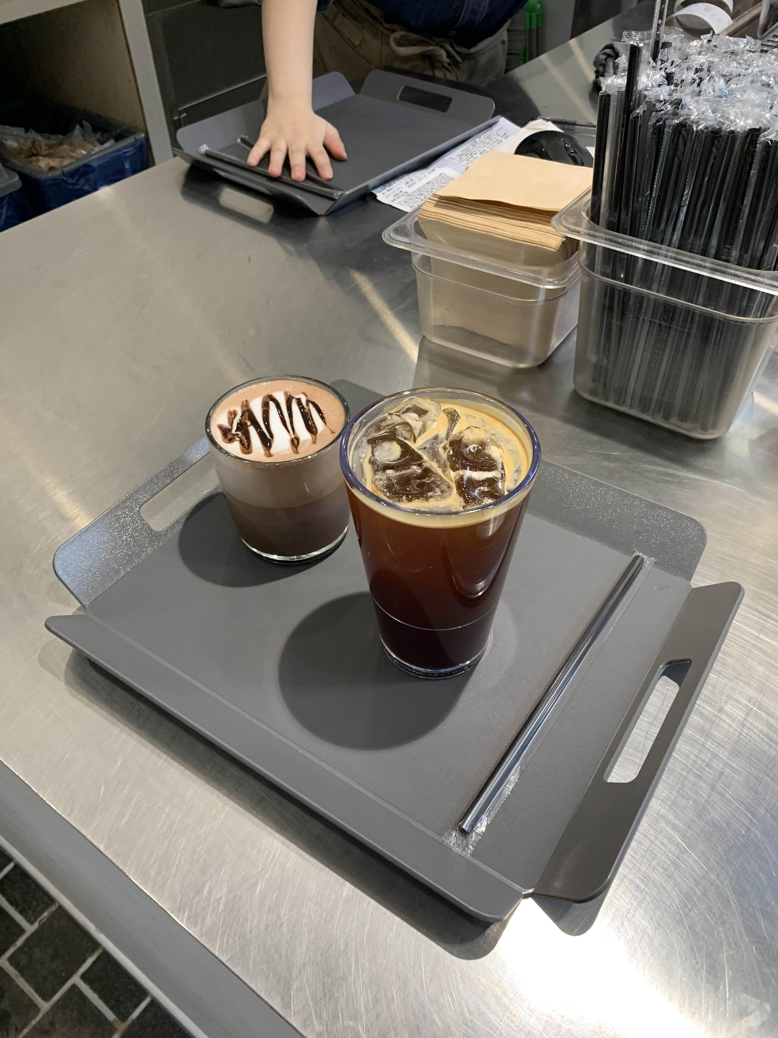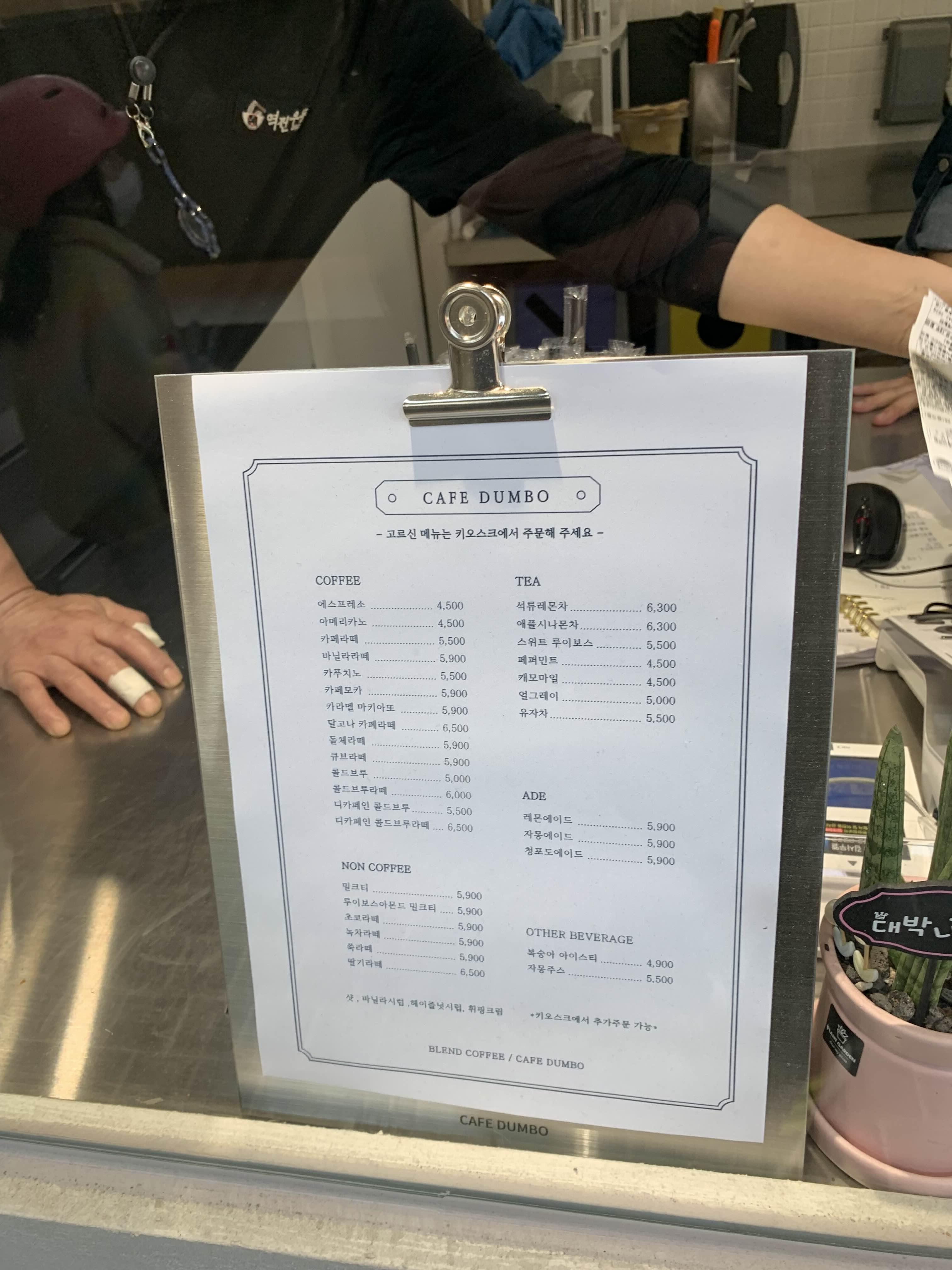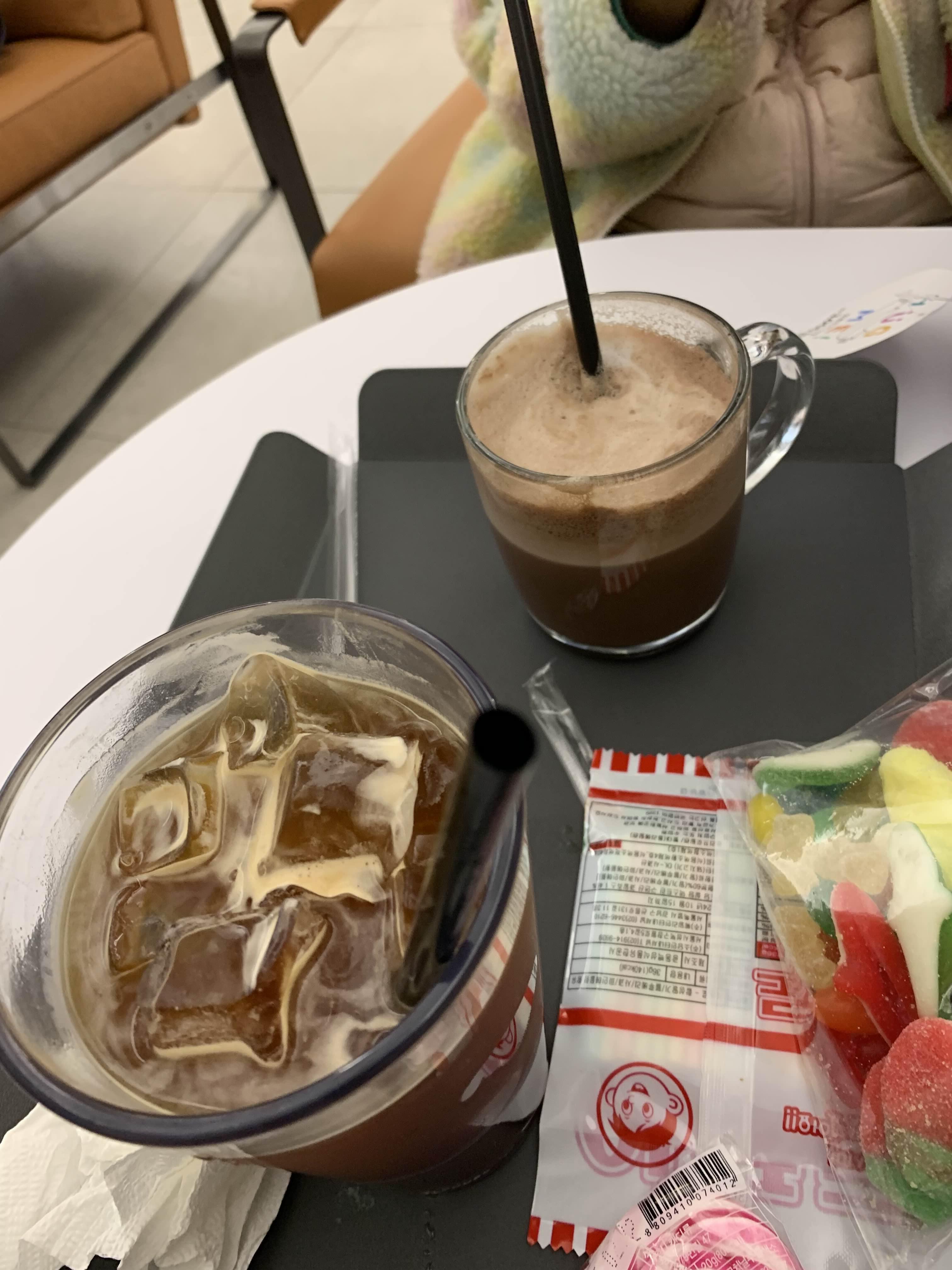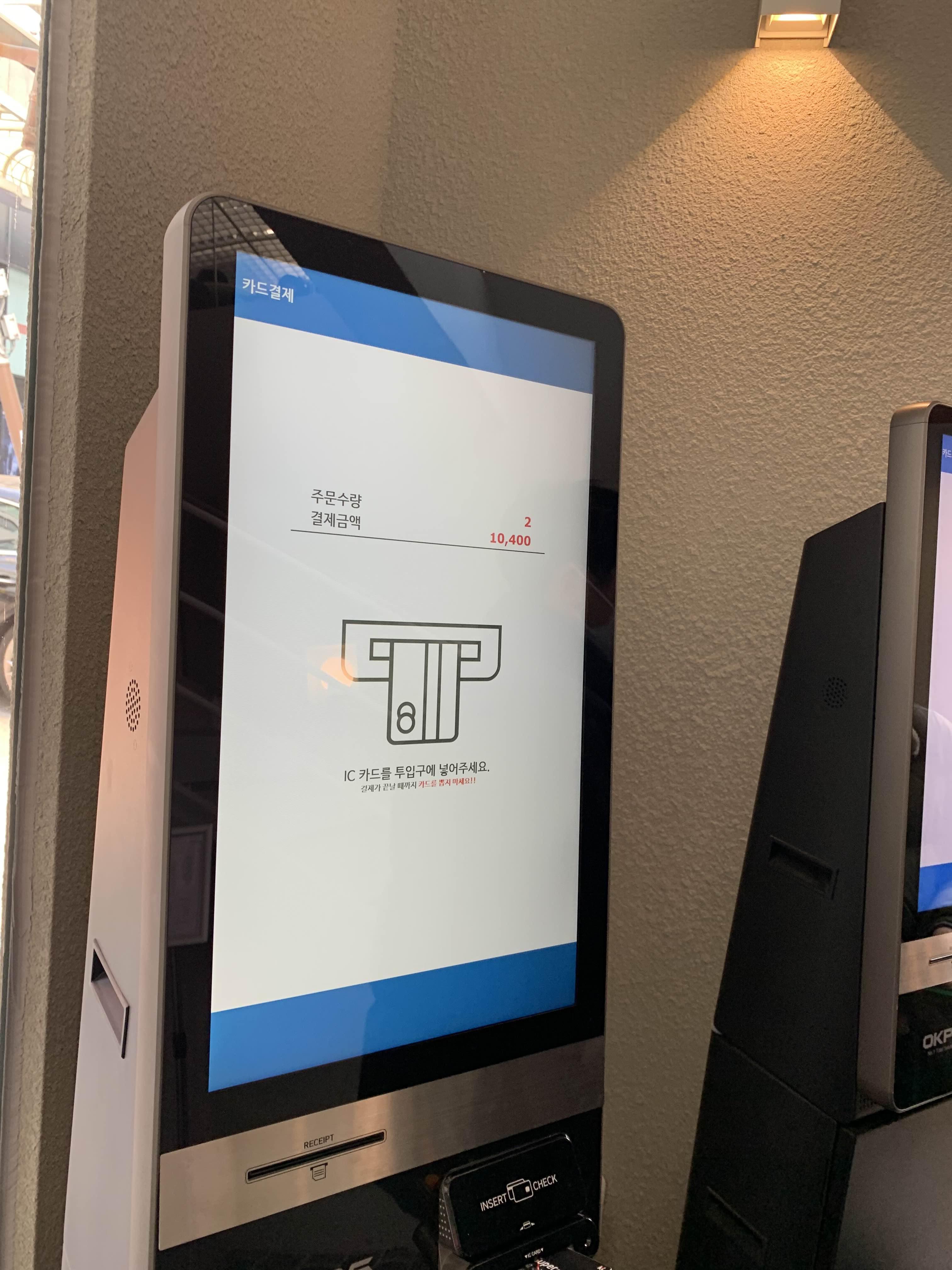 음료 주문은 출입구에 설치된 키오스크로 주문!! 음료는 아이스아메리카노와 아이가 좋아하는 초코라테!!ㅎㅎ 가격은 10,400원으로... 그렇게 비싸지 않게 느껴지더군요. 최근에는 키오스크로 주문하고 진동벨이 아닌, 모바일(카톡)로 안내해 주시더군요.