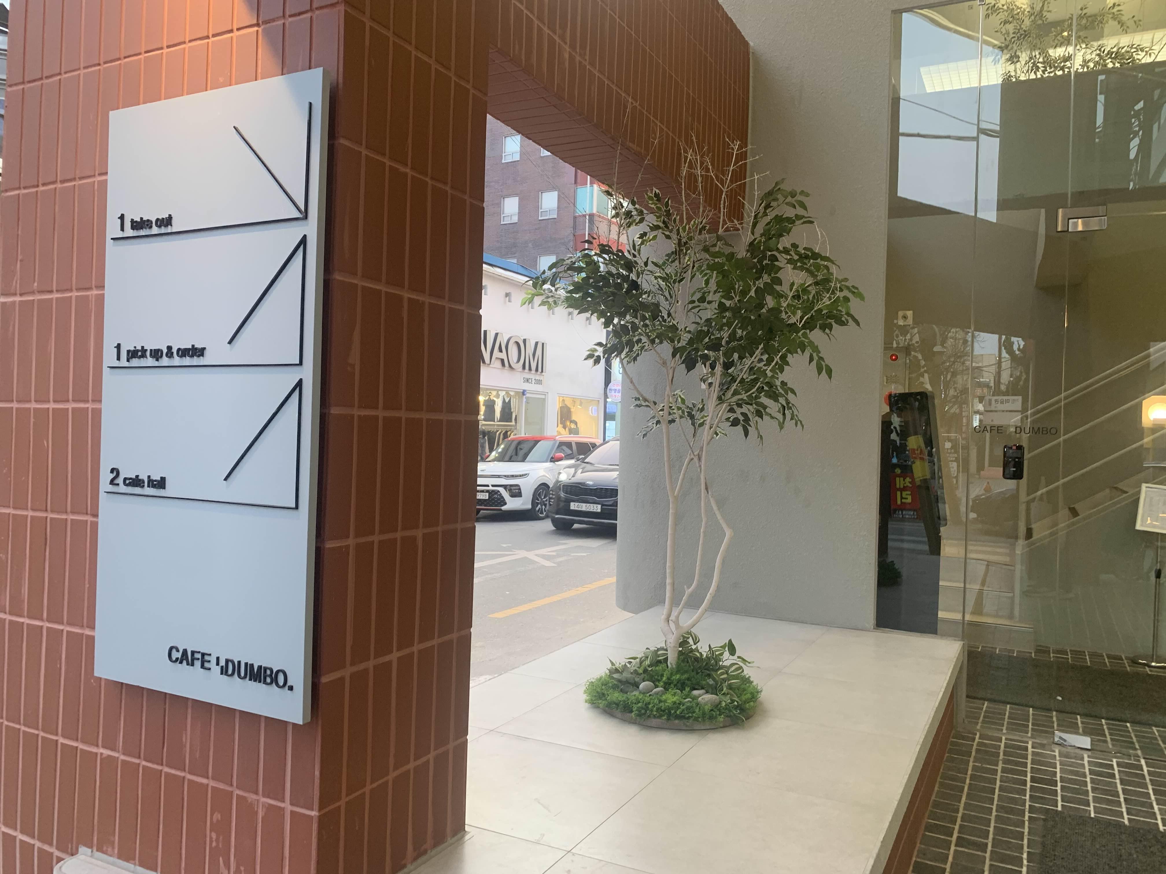 카페의 출입구의 도로가 인도와 차도 구분이 안 되는 공간이라.... 상당히 비좁게 느껴졌는데... 출입구에 필로티를 설치하니, 개방감이 좋아서... 카페 공간이 편하게 느껴지더군요.