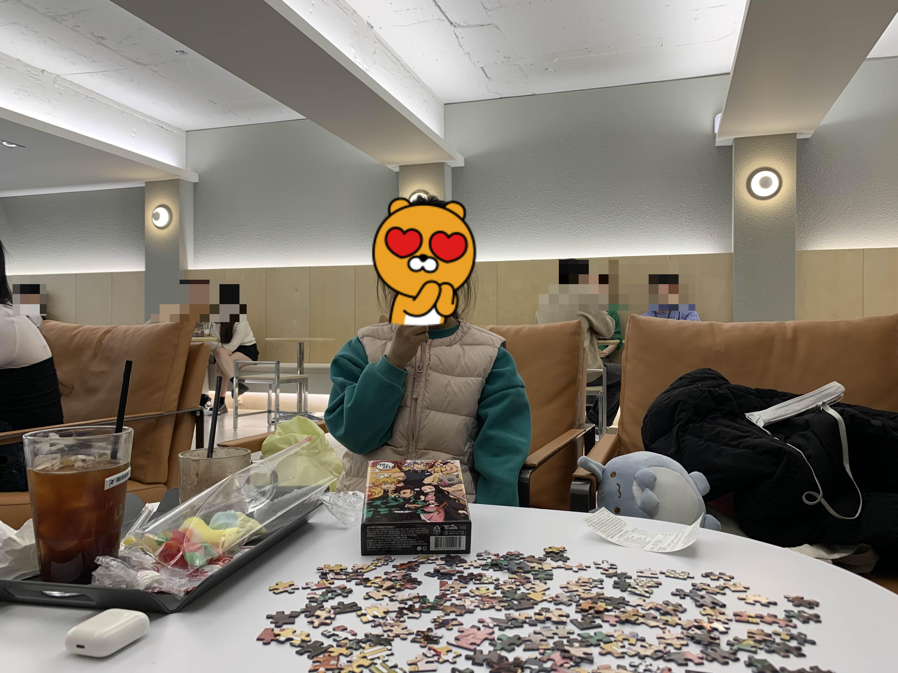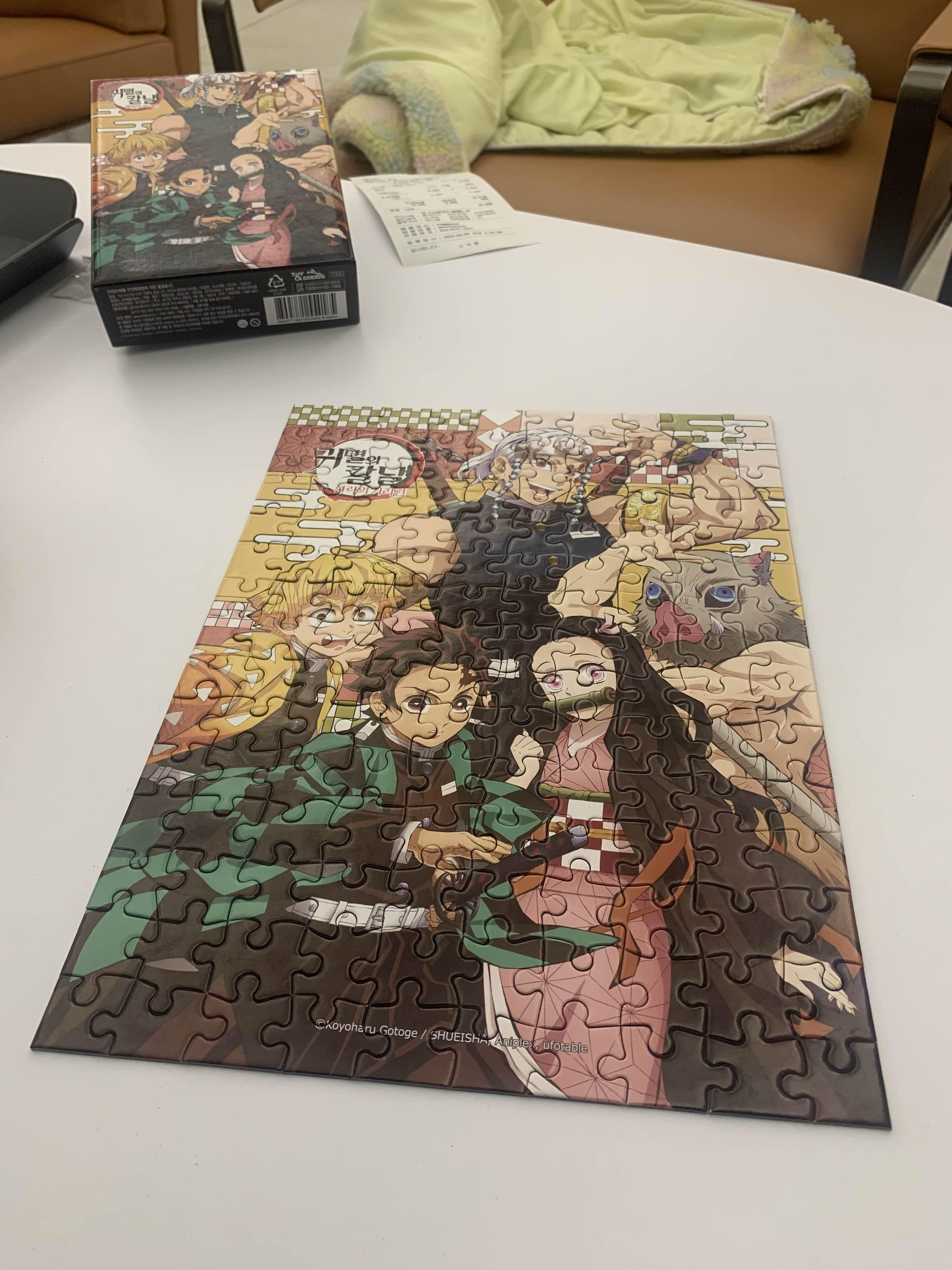 최근 재미있게 감상한 귀멸의 칼날!!! 직소퍼즐 하나 맞추어 주고!! 음료수를 맛나게 먹고~