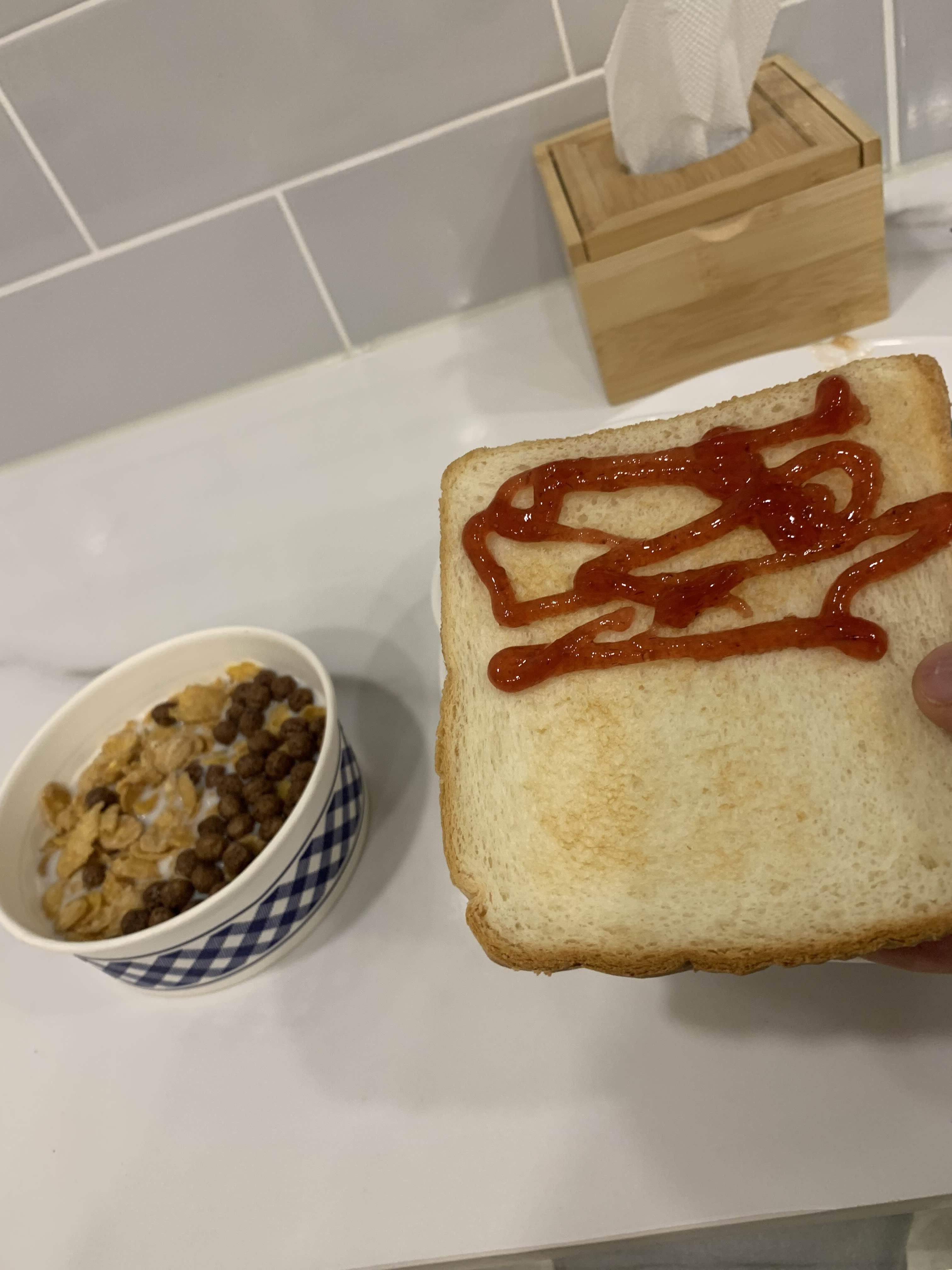 식판에 밥을 많이 담아서 배불리 먹었지만... 토스트가 있어서 입가심으로 맛보아 주었다.