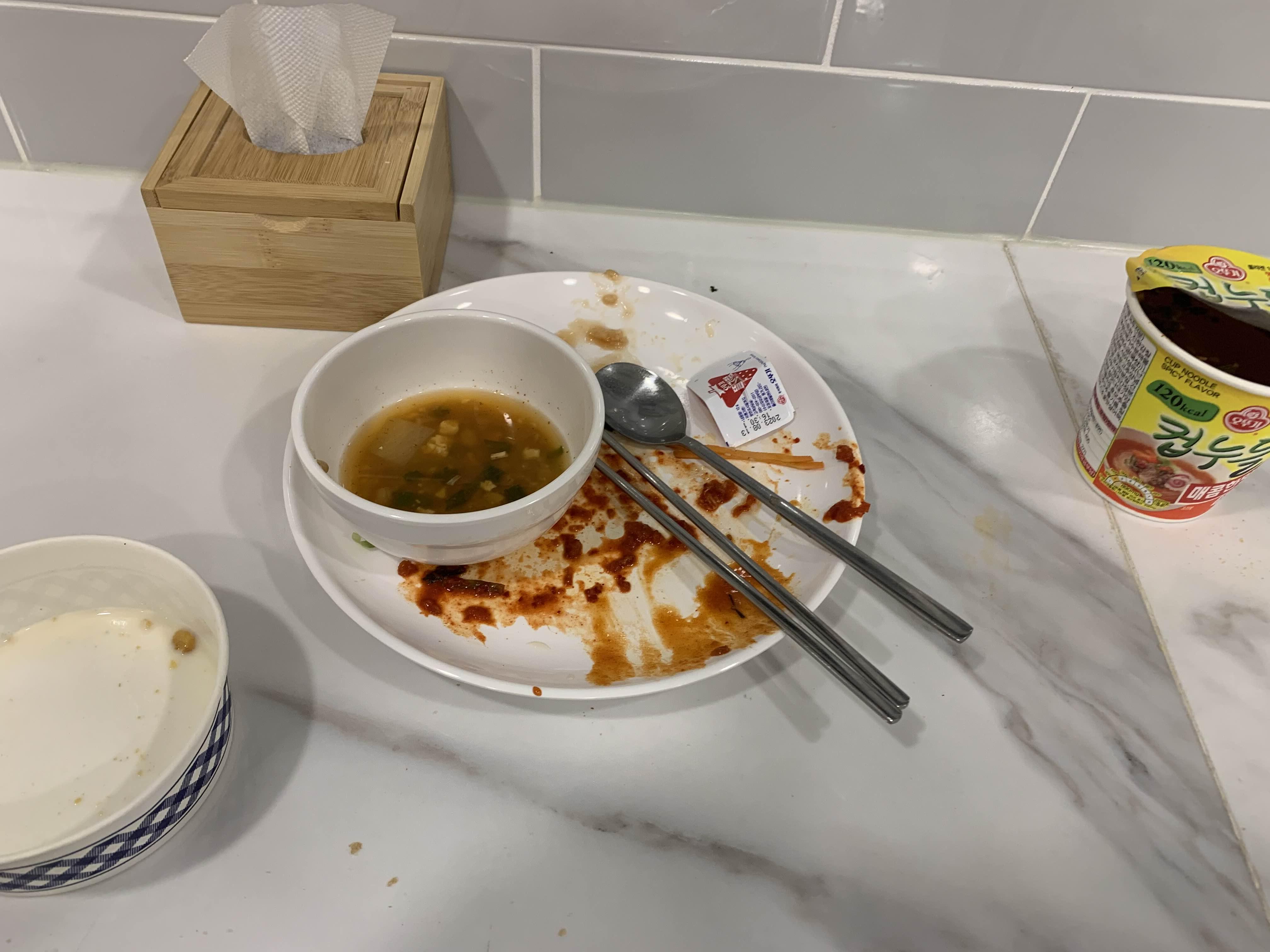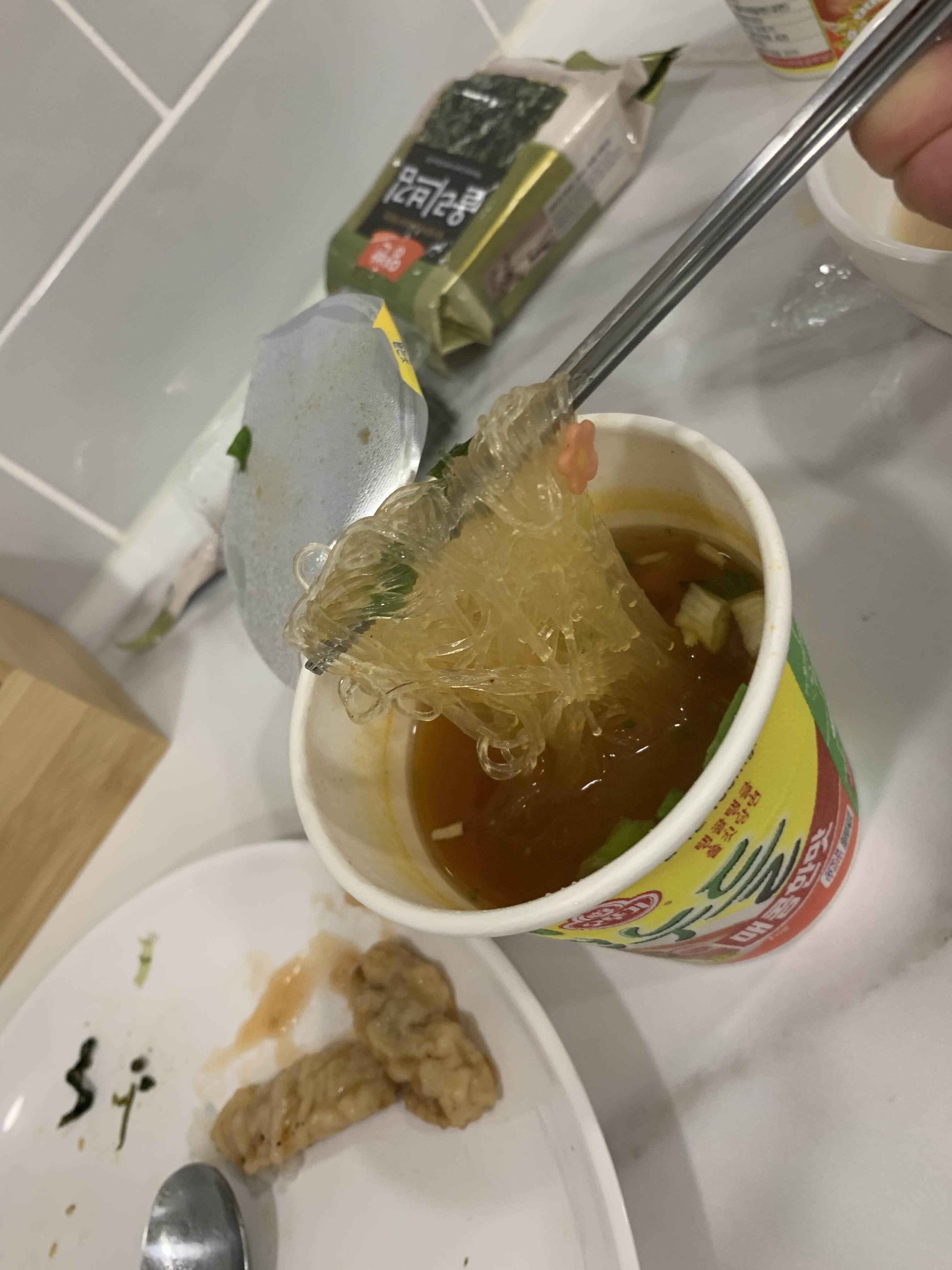 된장찌개도 맛있지만... 라면은 아침의 필수!ㅎㅎ 평소 좋아하는 컵누들이 있어서... 바로 따뜻한 물을 넣어서 조리해 준다.