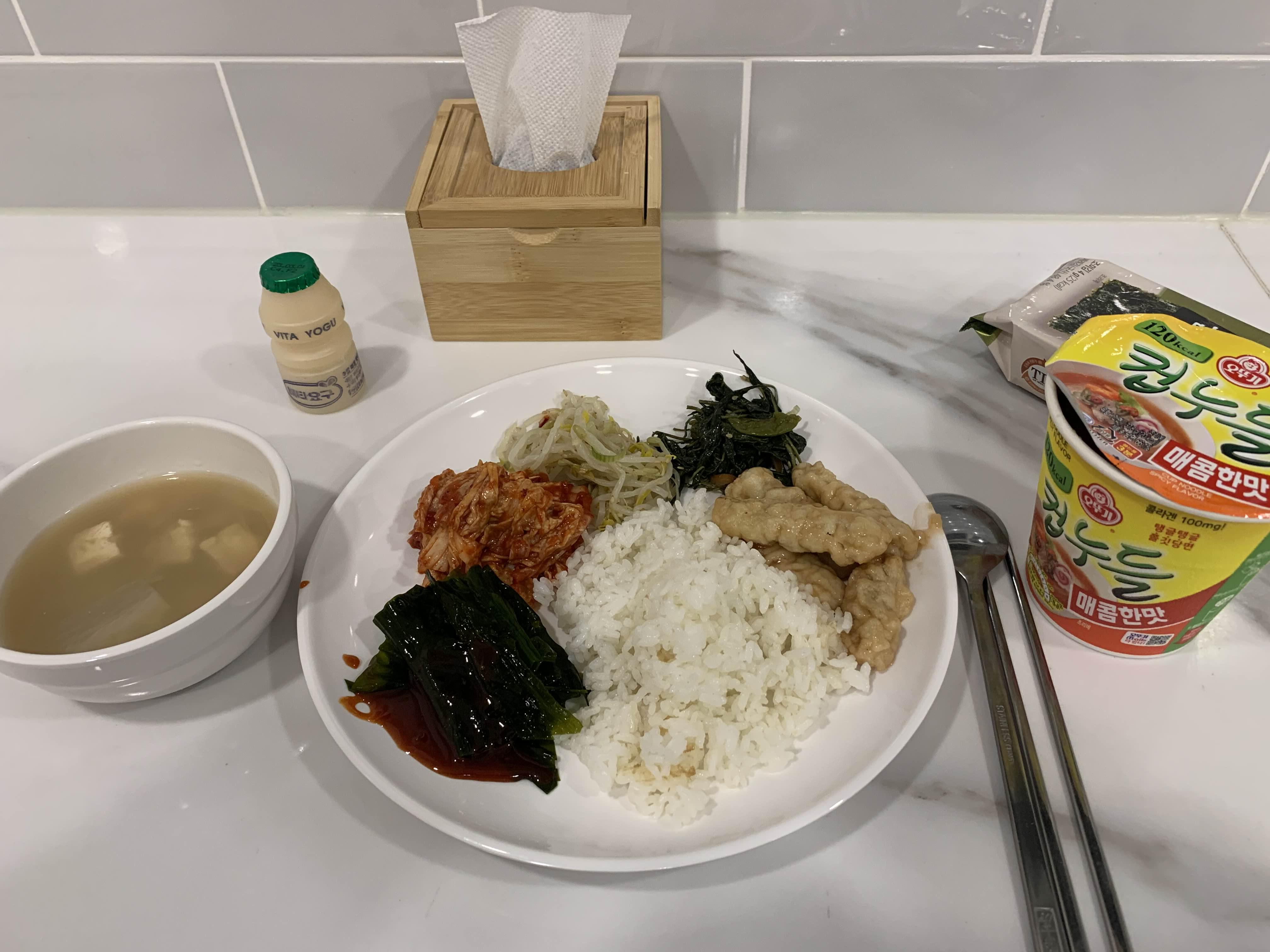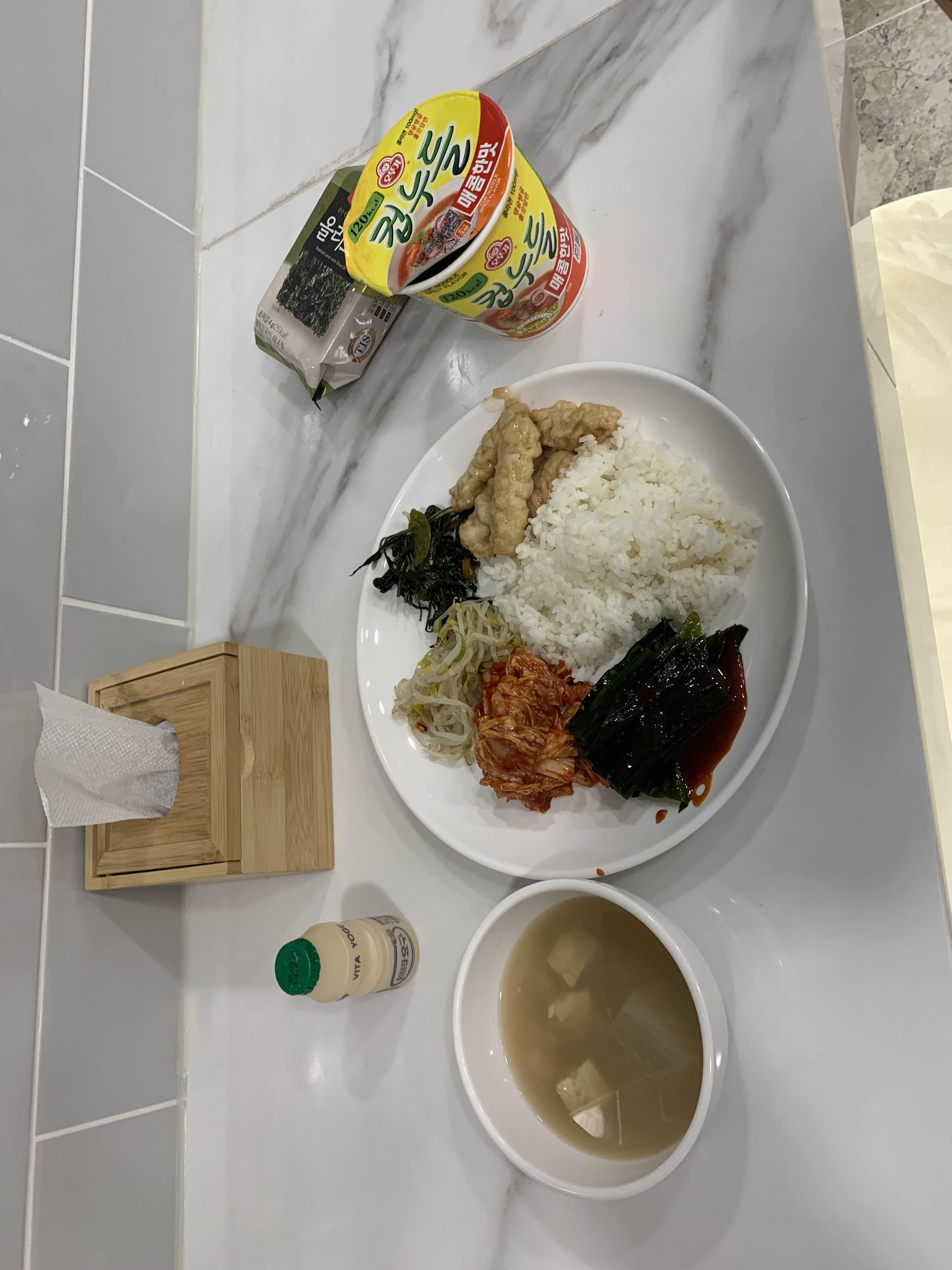 간단한 아침이 아닌!! 든든하게 하루를 시작할 수 있는 조식이 제공되었다. 밥과 라면 그리고 반찬들... 식판집 식사보다 퀄리티가 좋아서 놀랬다. 라면은 컵누들!ㅎㅎ