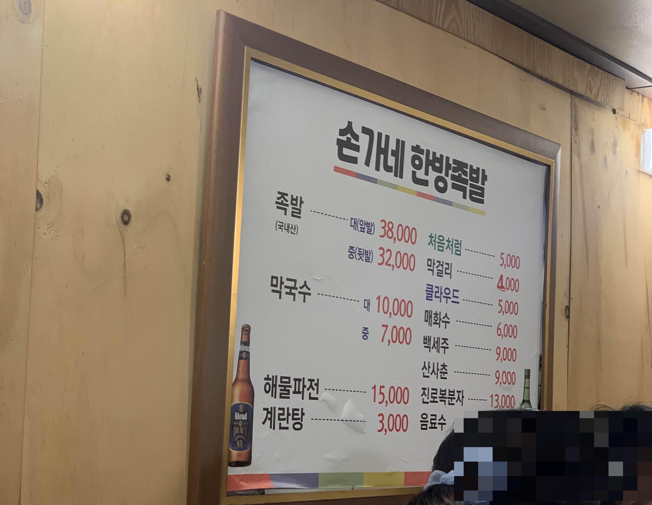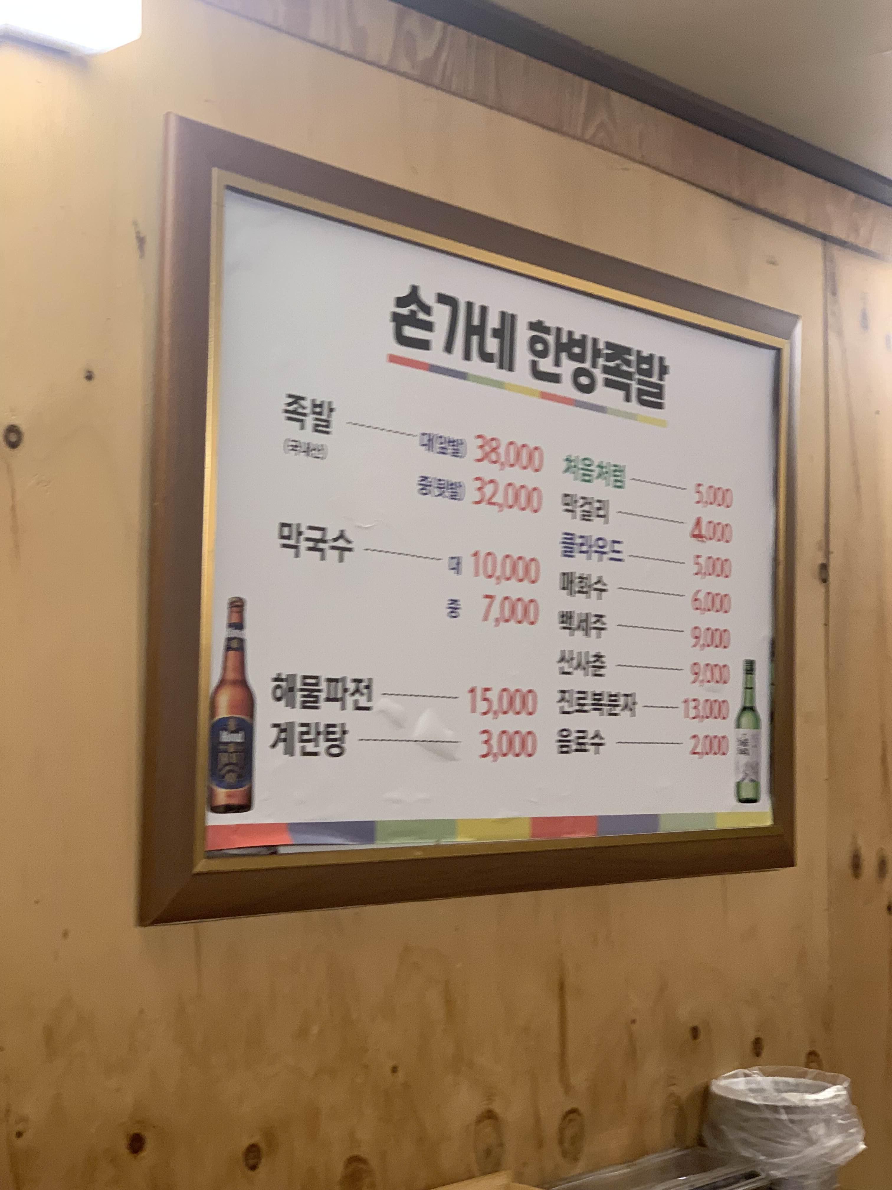 친구와 저녁식사와 술 한잔 마시기 위해 방문한 족발집이다. 약간 늦은 시간에 방문해서 그런지 손님들이 가득!!! 족발은 대(앞발)과 중(뒷발)이 있는데... 중(뒷발)만 있다고 하신다. 그래서 주문!! 32,000원이다.