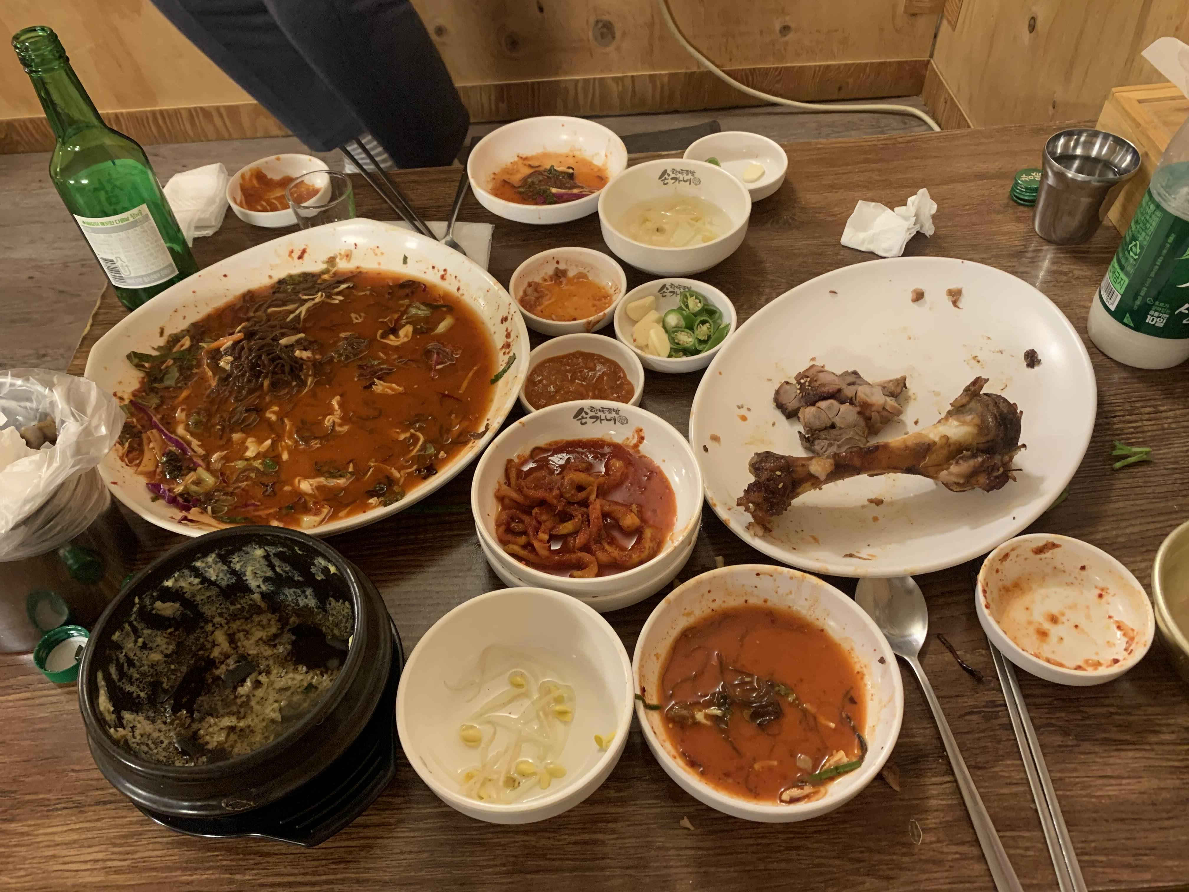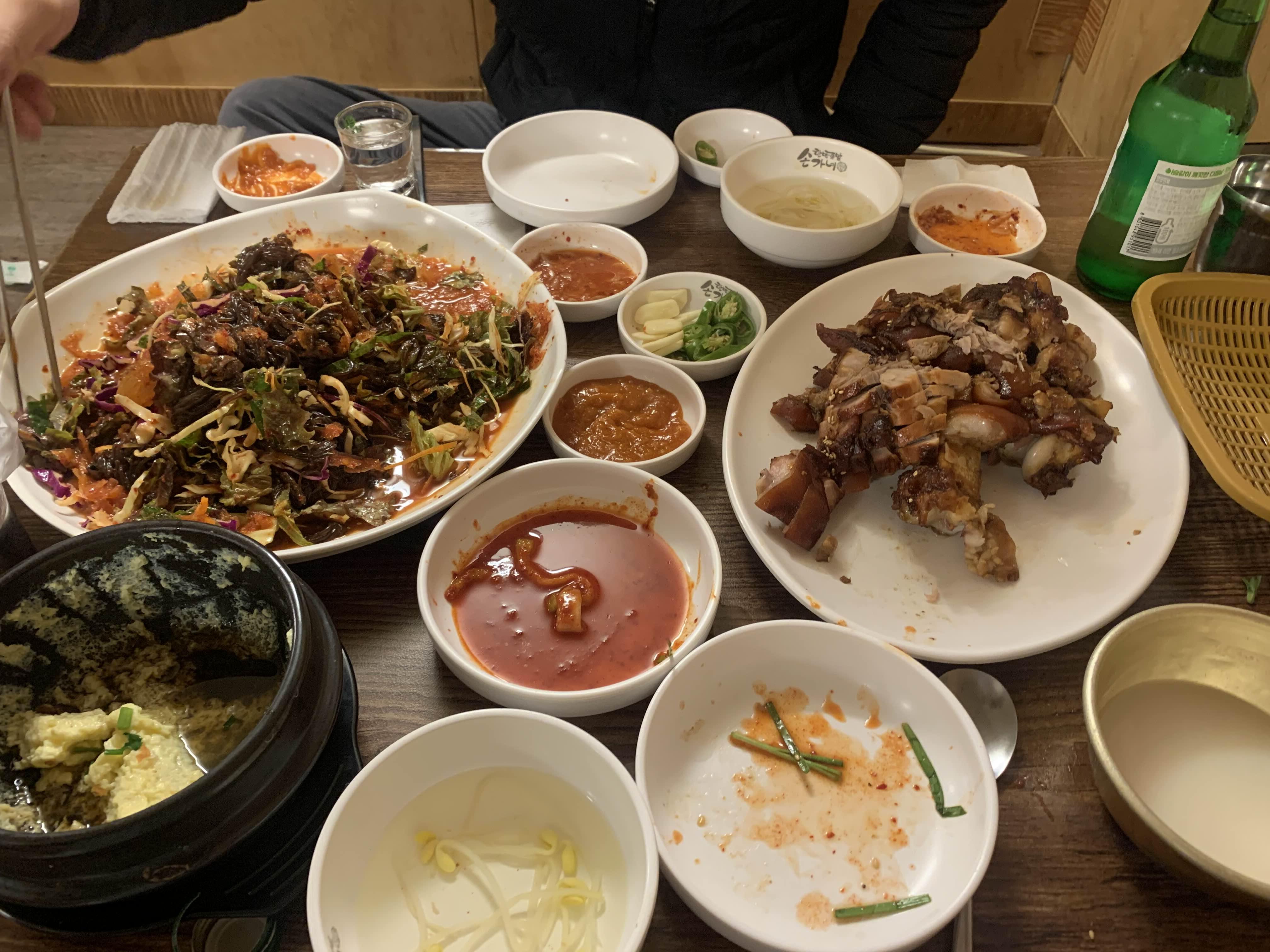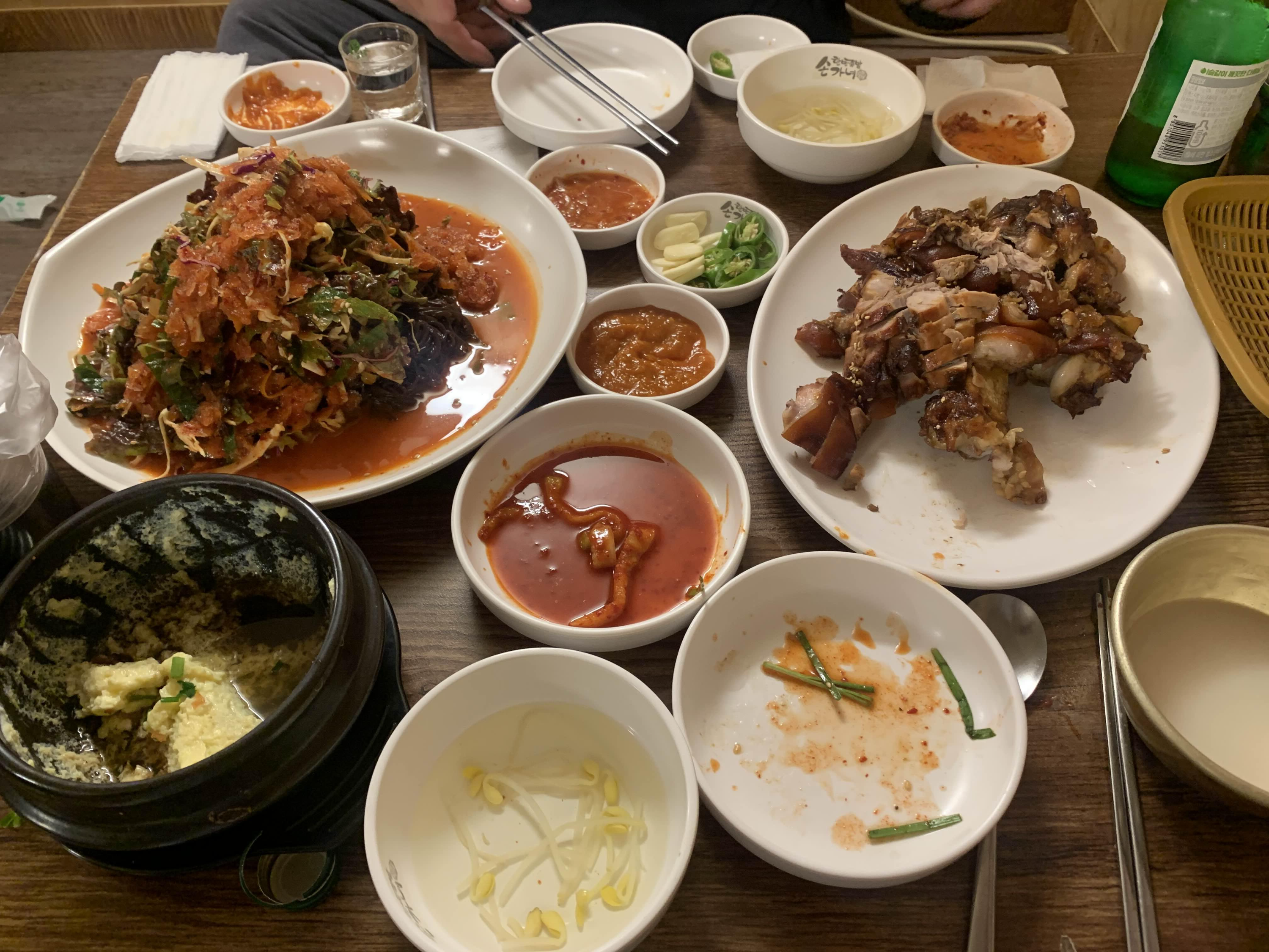 그리고 메인 음식인 족발이 나왔다. 족발이 나와서... 족발은 새우젓만 찍어서 맛보는데.... 족발이 정말 부드러웠다. 쫄깃한 식감이 아니라.... 뭐랄까? 동파육처럼 부드러운 돼지고기를 먹는 식감이랄까? 족발은 좀 질겨야 하는데... 이런 식감도 나쁘지 않았다.