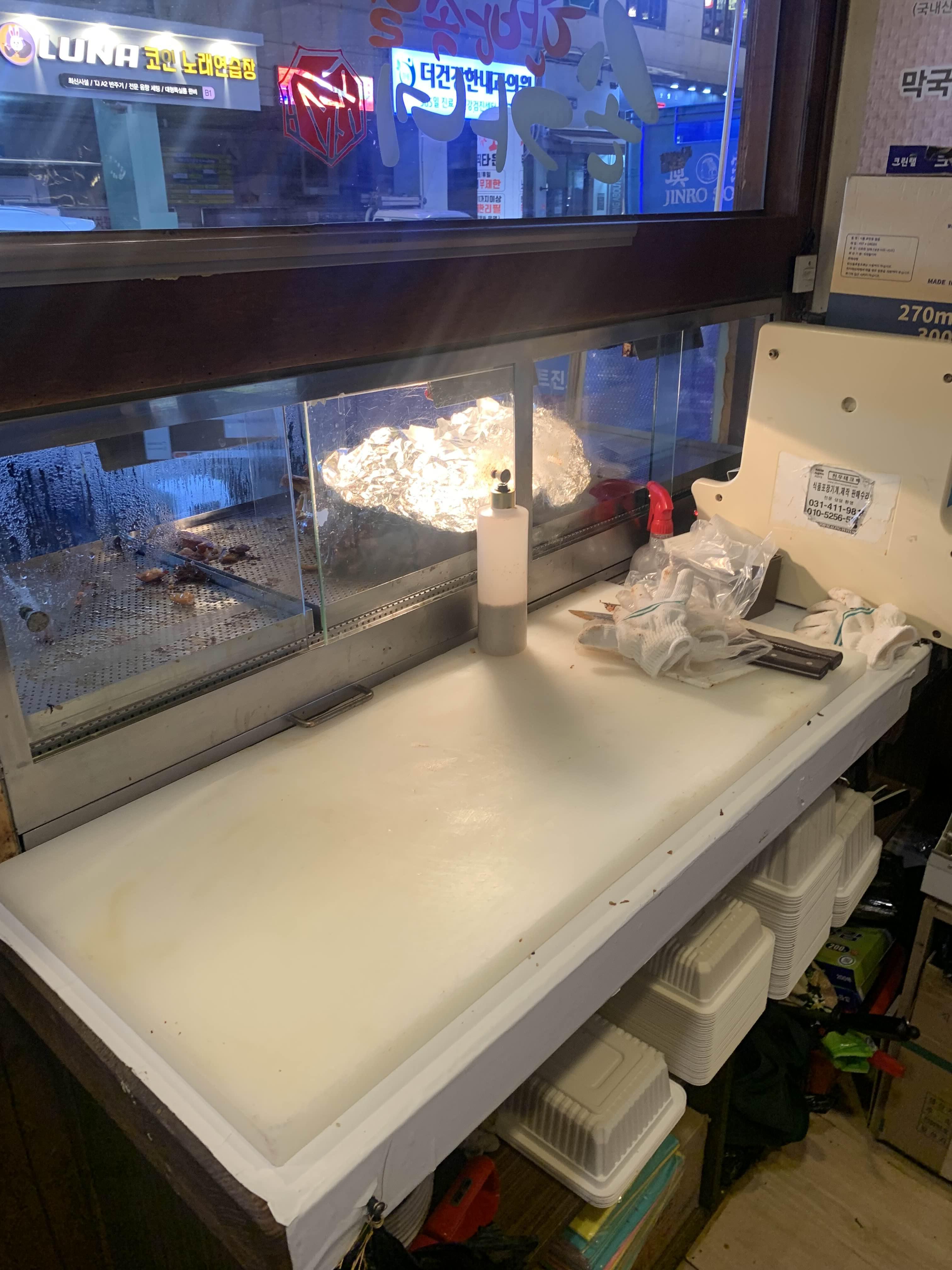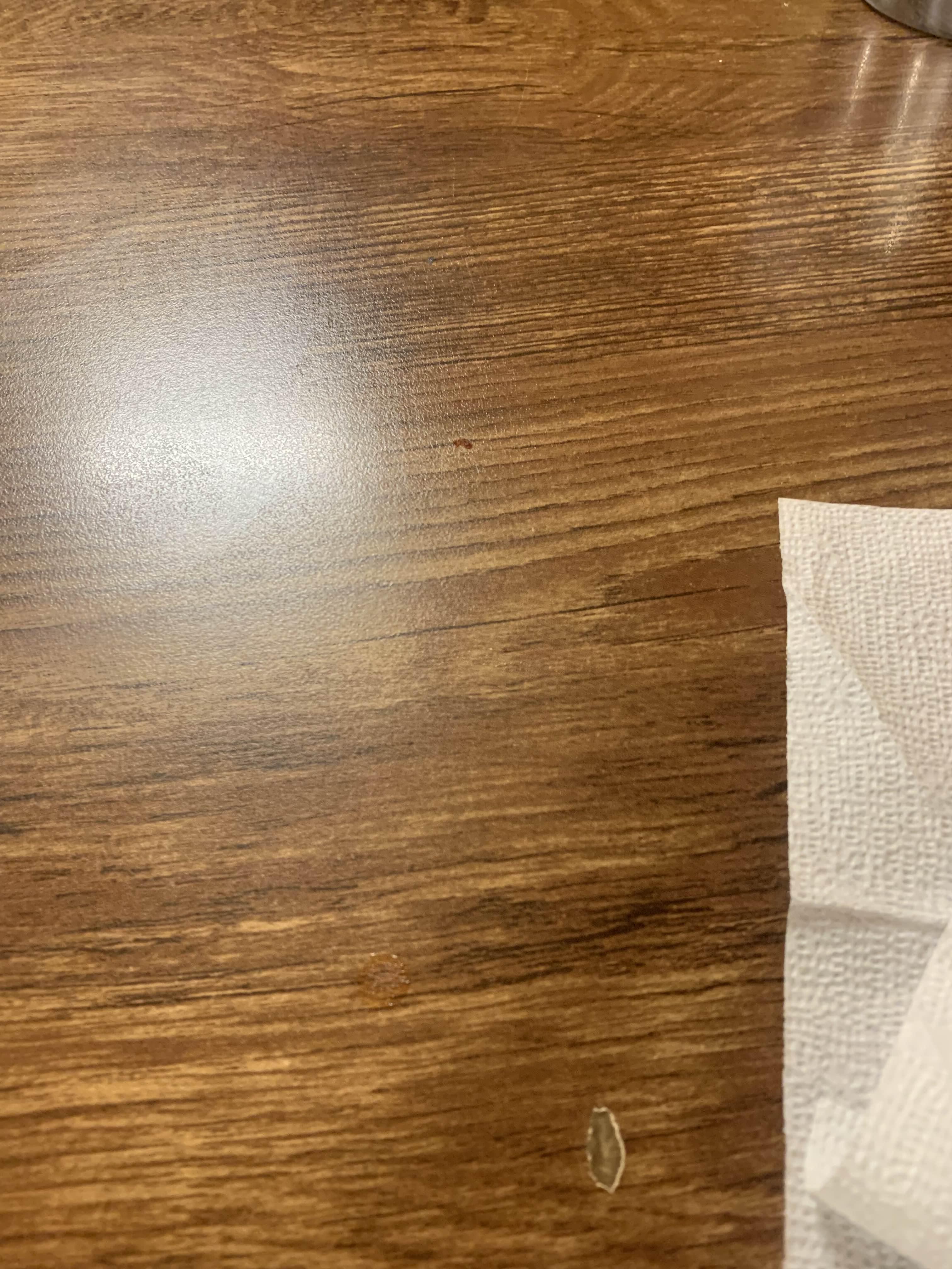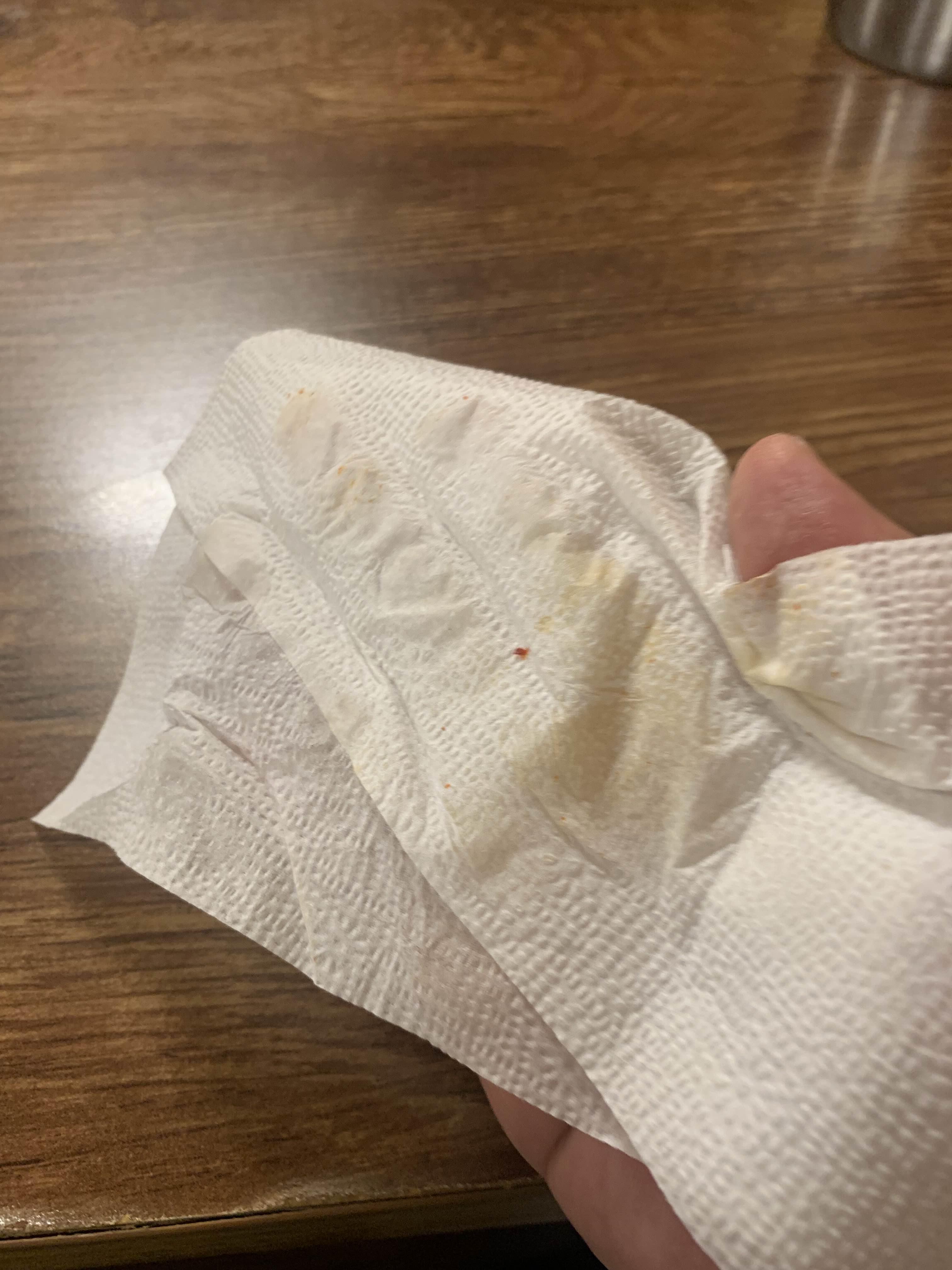 방금 손님이 지나간 테이블.... 테이블이 조금 지저분하다. 휴지로 깨끗하게 음식을 맞이할 준비를 해준다.