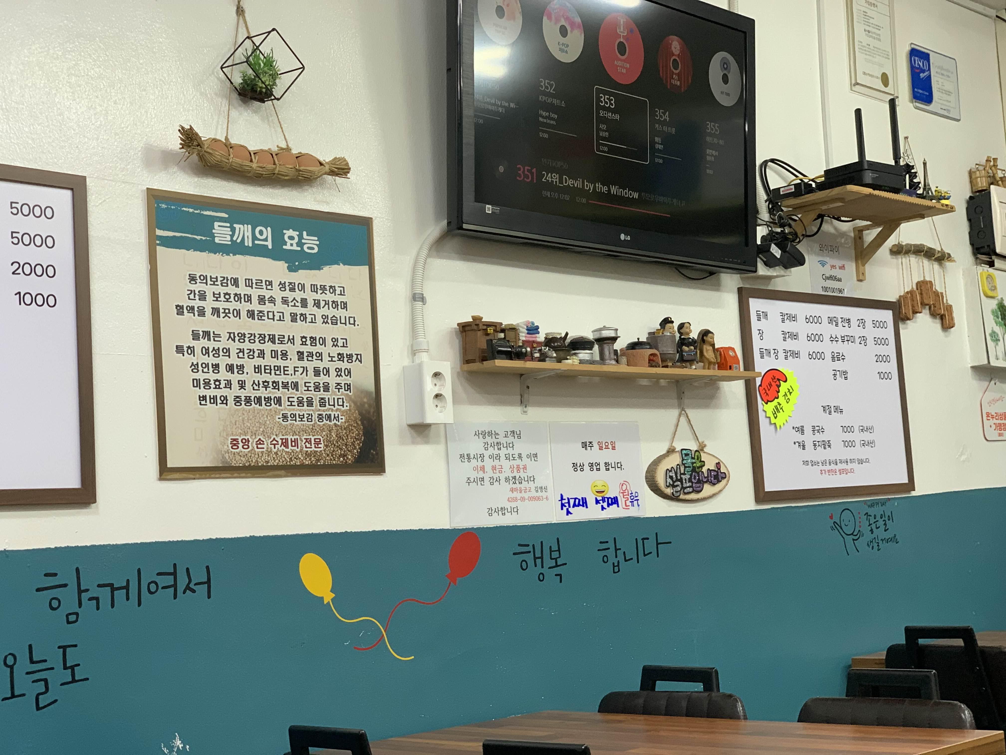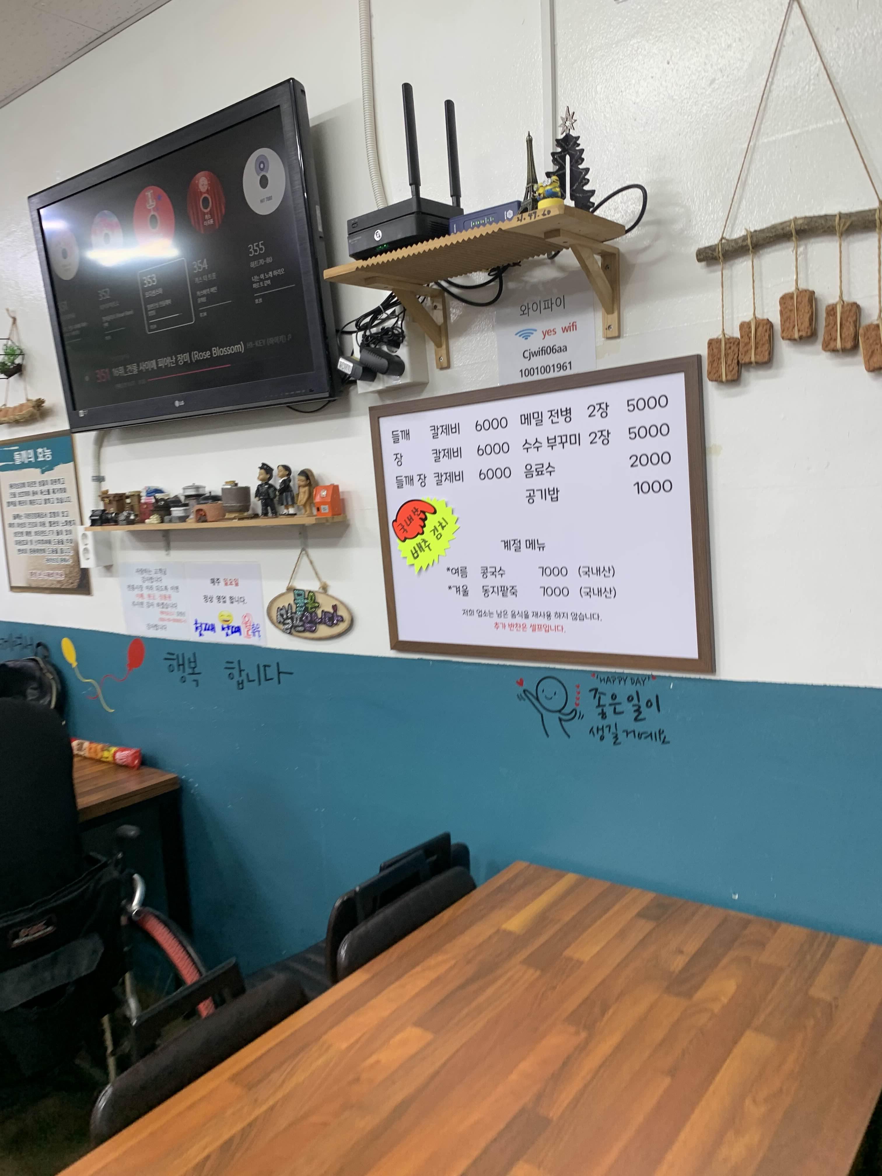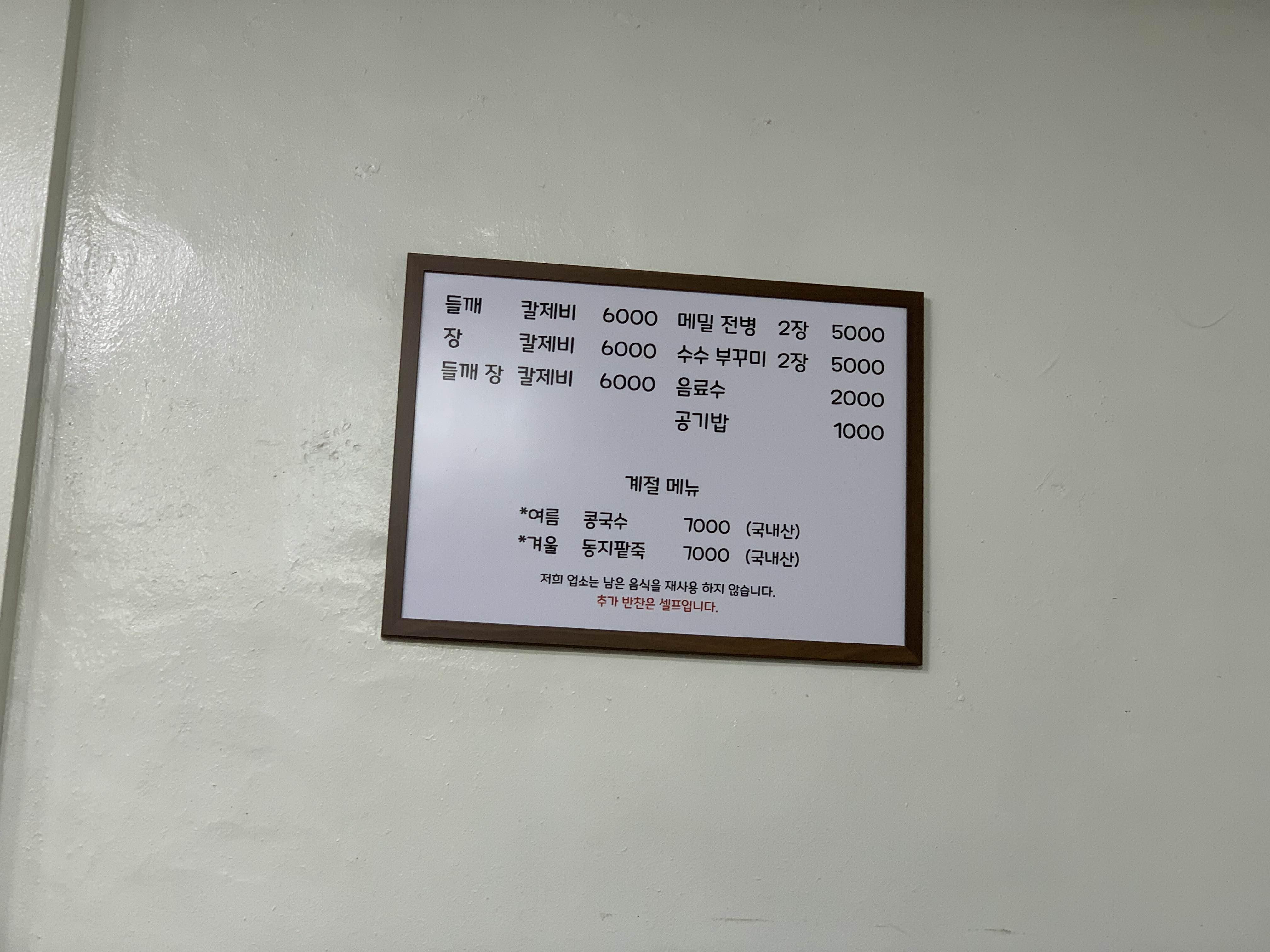 식당에 방문하여 수제비를 주문하려고 메뉴판 스캔?(메뉴판을 왜 스캔?ㅎㅎ) 수제비가 3가지.. 들깨, 장, 들깨장이라... 장칼국수도 맛있어서...ㅎㅎ 사장님에게 가장 맛있는 게 뭐냐고 물어보니... "들깨 칼제비"라고 하신다.ㅎㅎ 그래서 주문!! 가격이 6천 원으로.. 요즘물가 생각하면 정말 저렴하다.