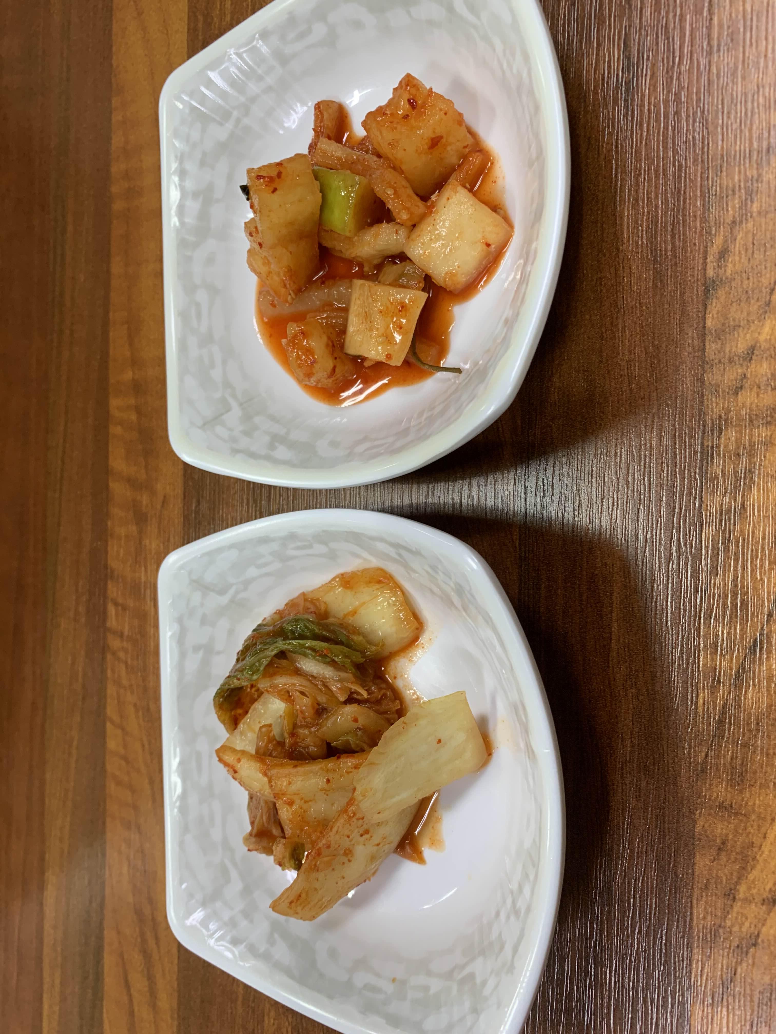 음식을 주문하고 잠시 후 밑반찬으로 배추김치와 깍두기가 나온다. 오!!! 김치가 맛있다.