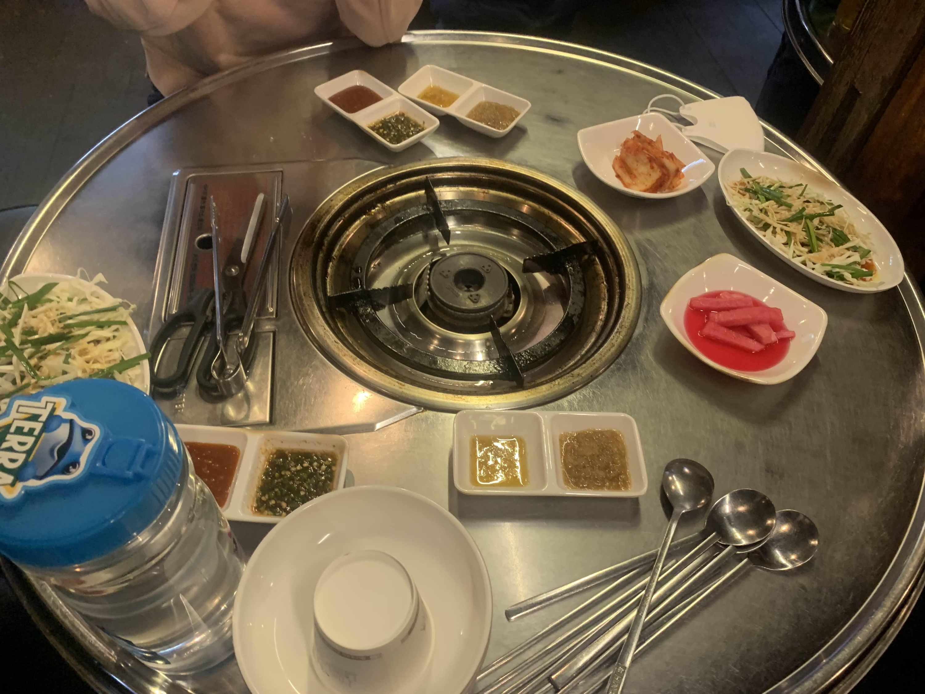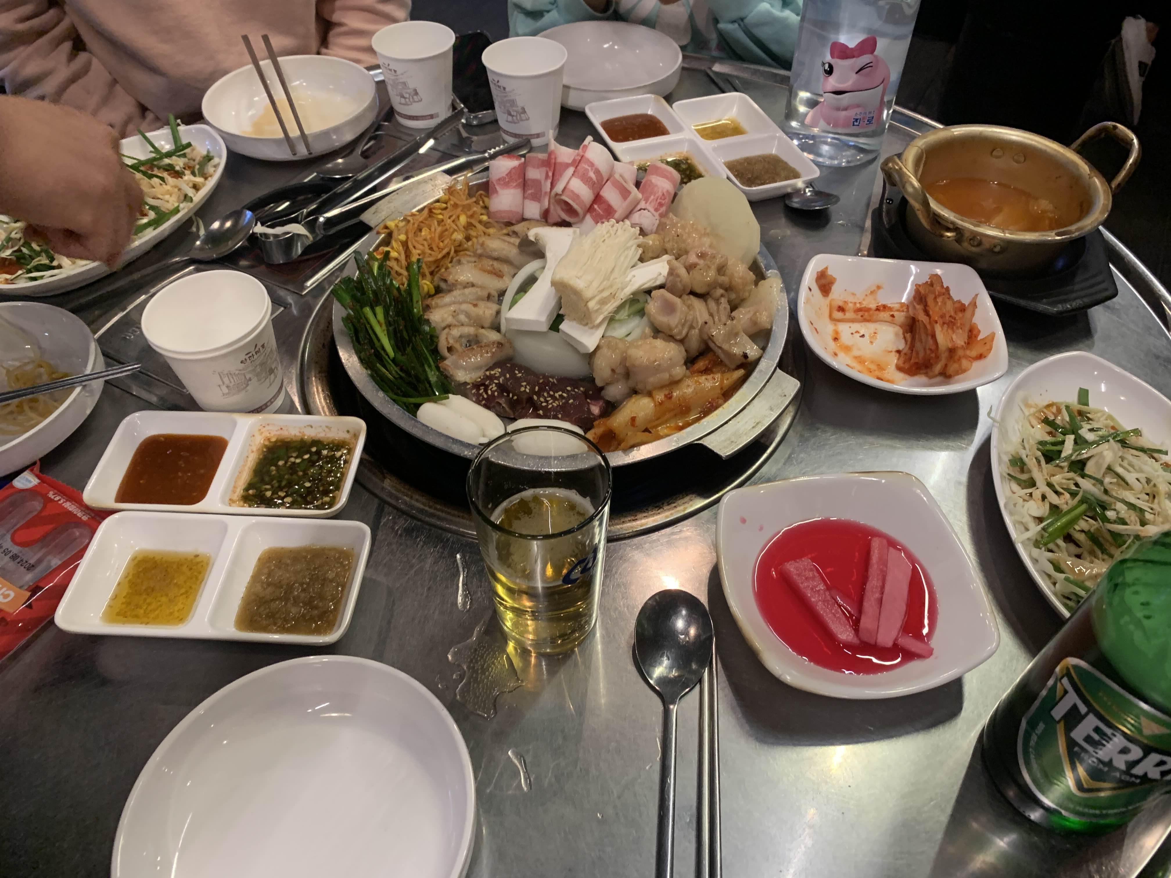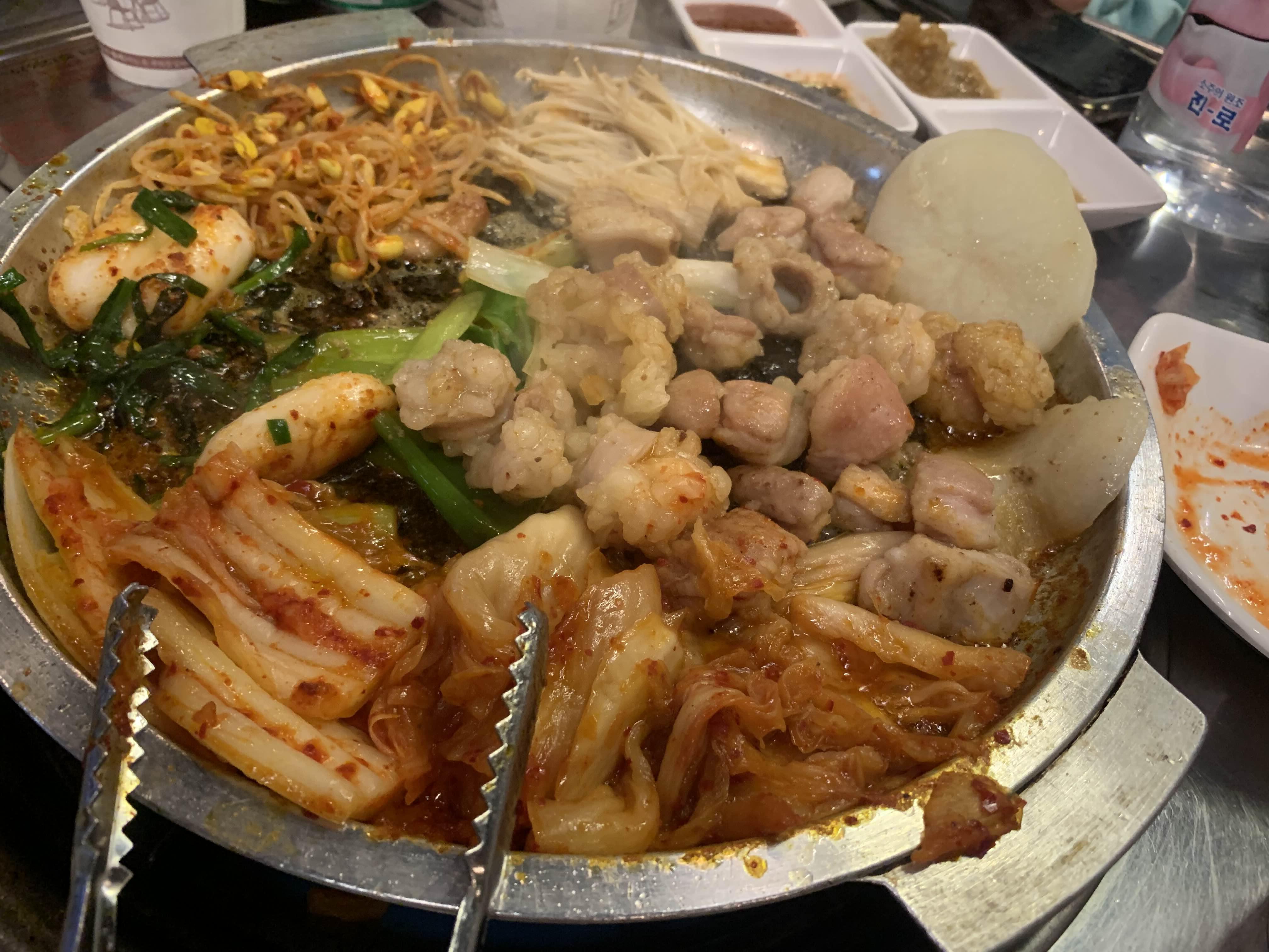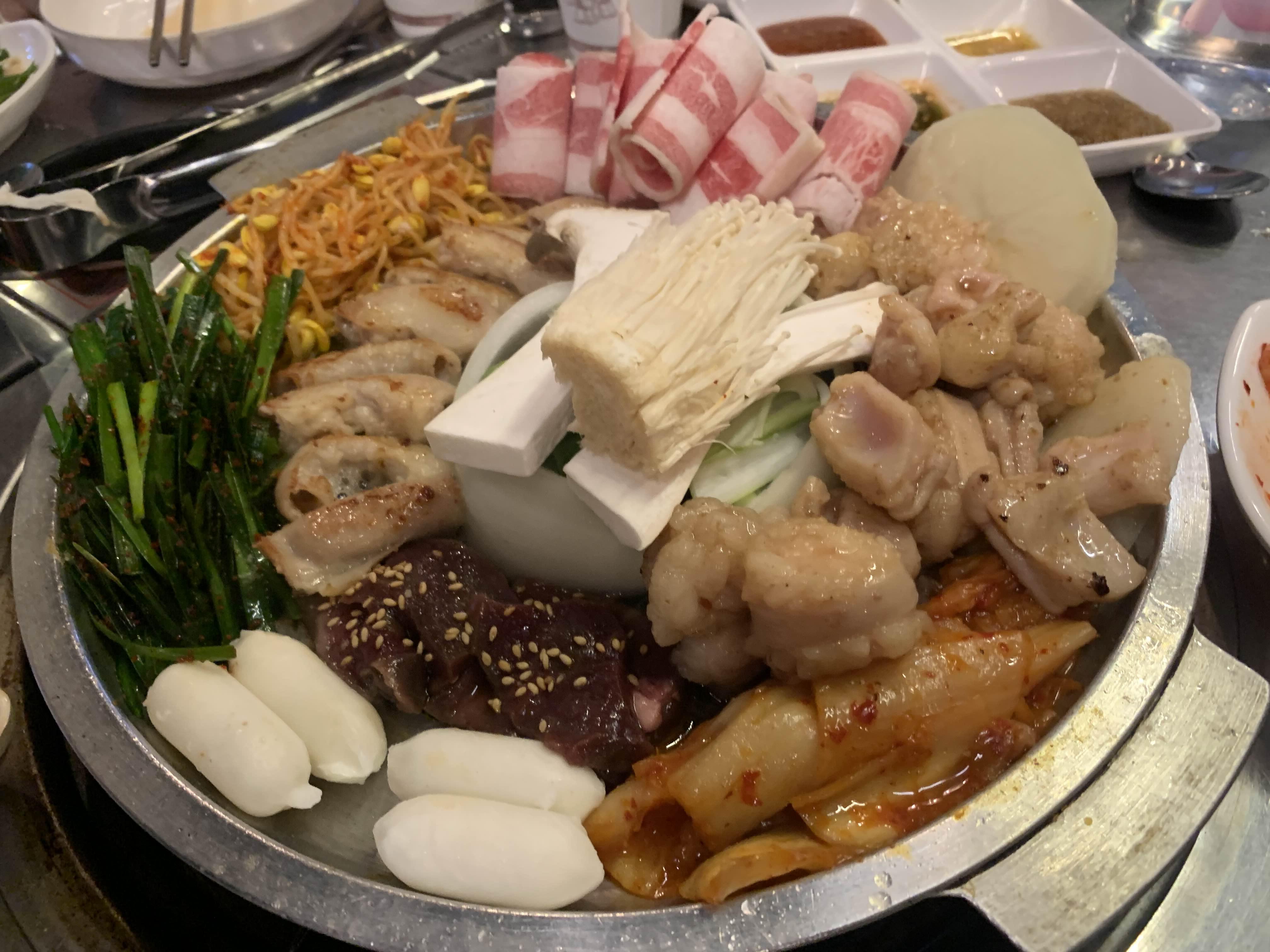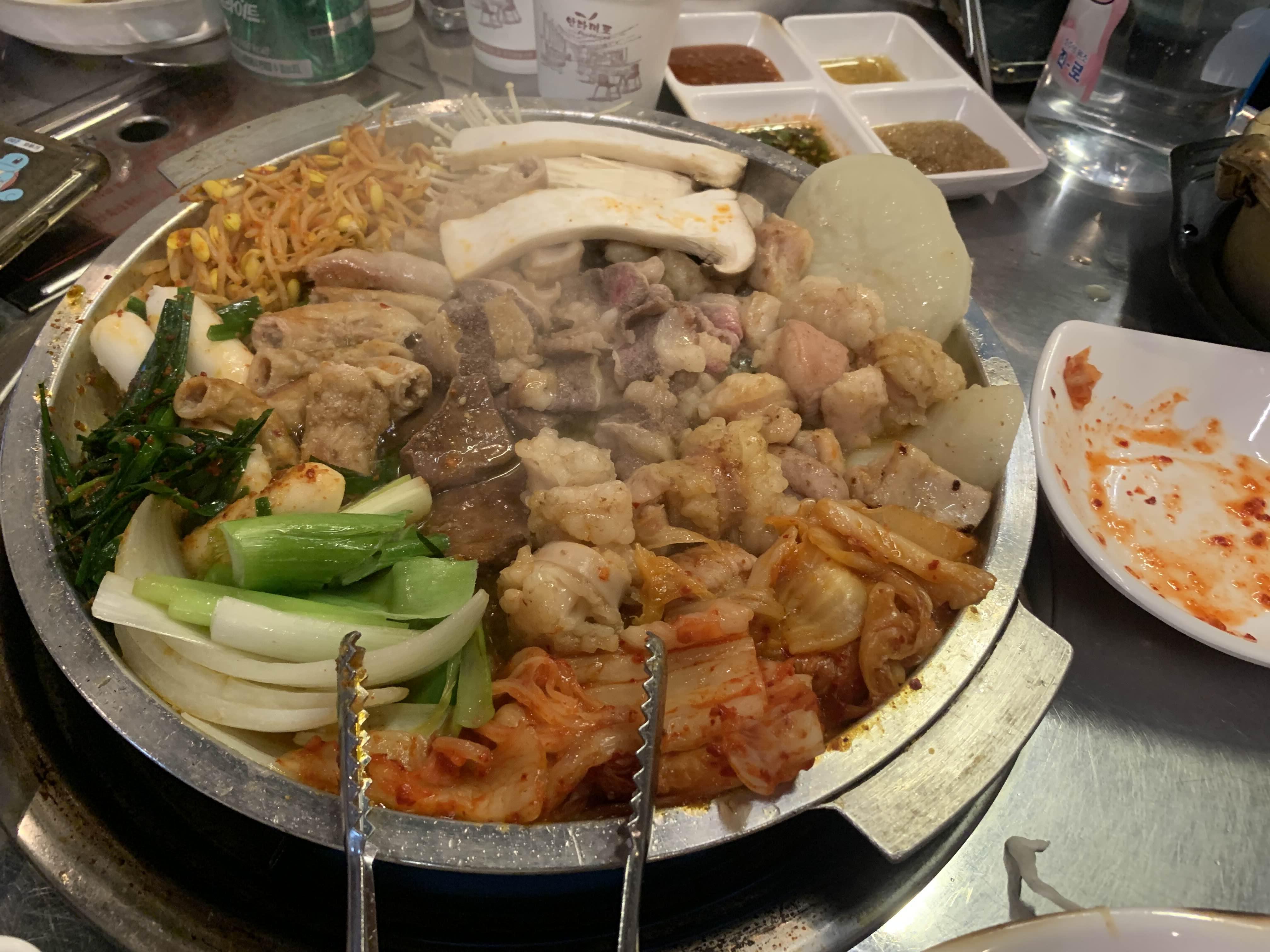 진수성찬 2인분 세팅이 비주얼이 꽤 괜찮아 보이더군요. 곱창의 양보다.. 곁들이는 감치, 김치, 부츠, 감자 등 곱창이라는 메뉴가 양이 적은 메뉴인데! 곁들이가 푸짐하게 양이 넉넉하게 보이더군요.ㅎㅎ
