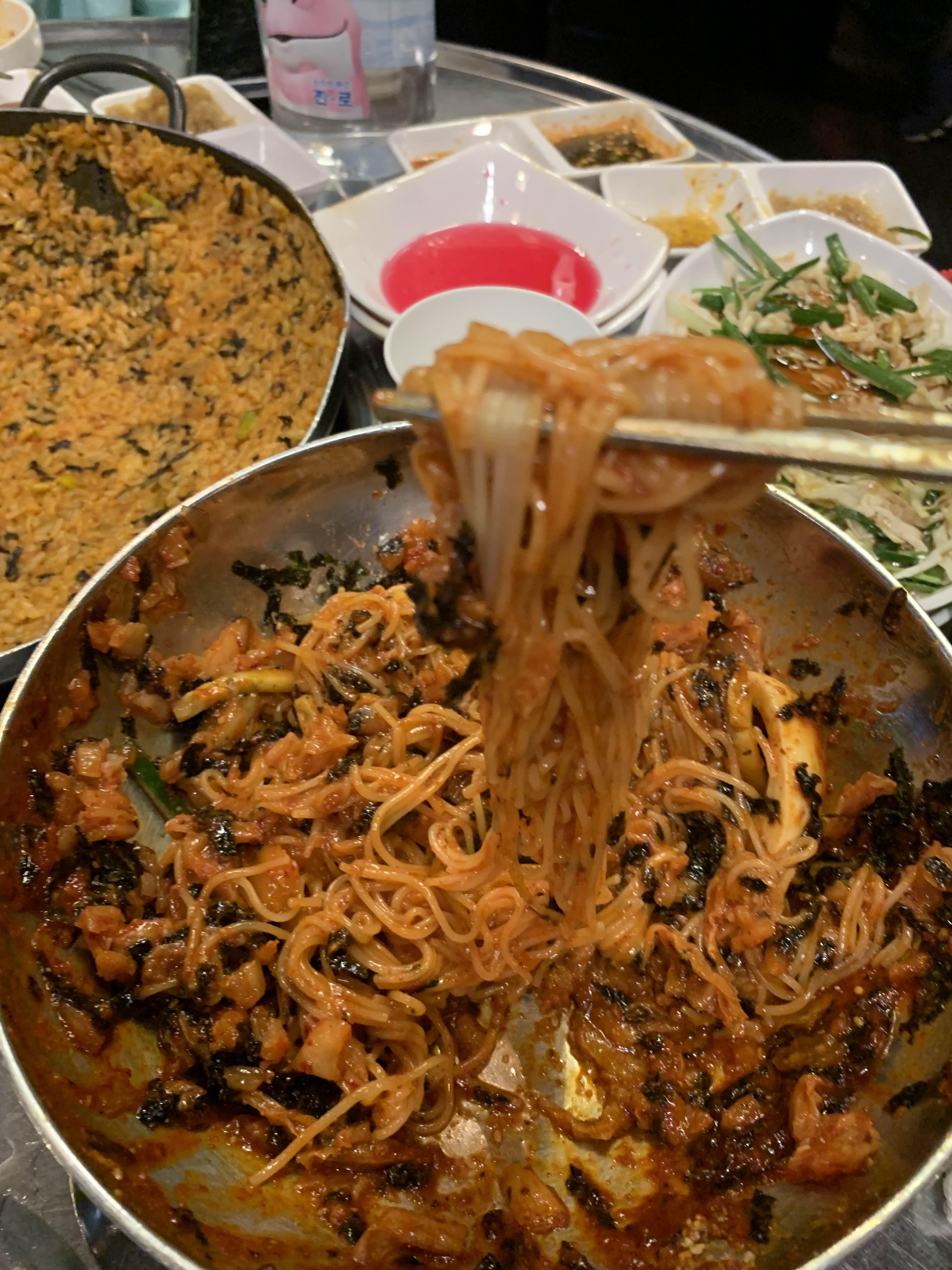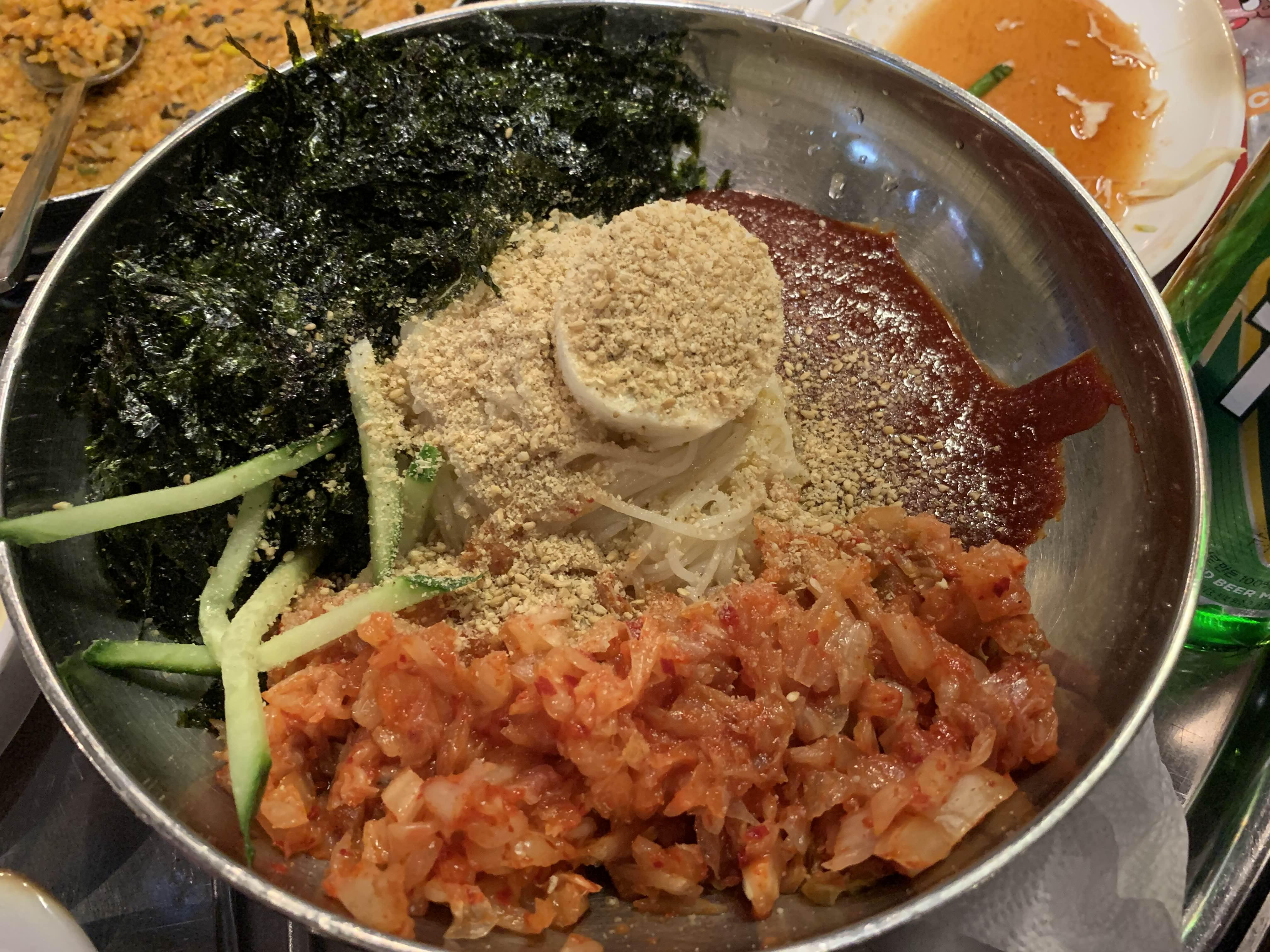 볶음밥이 최고!! 그리고 나온 김치말이 국수! 국수 비주얼은... 정말!! 맛이 없을 수가 없는 비주얼이더군요. 수북이 들어간 김가루와 들깻가루... 그리고 김치!! 쓱쓱 비벼서.. 국수의 물기가 없어... 잘 비벼지지는 않지만!