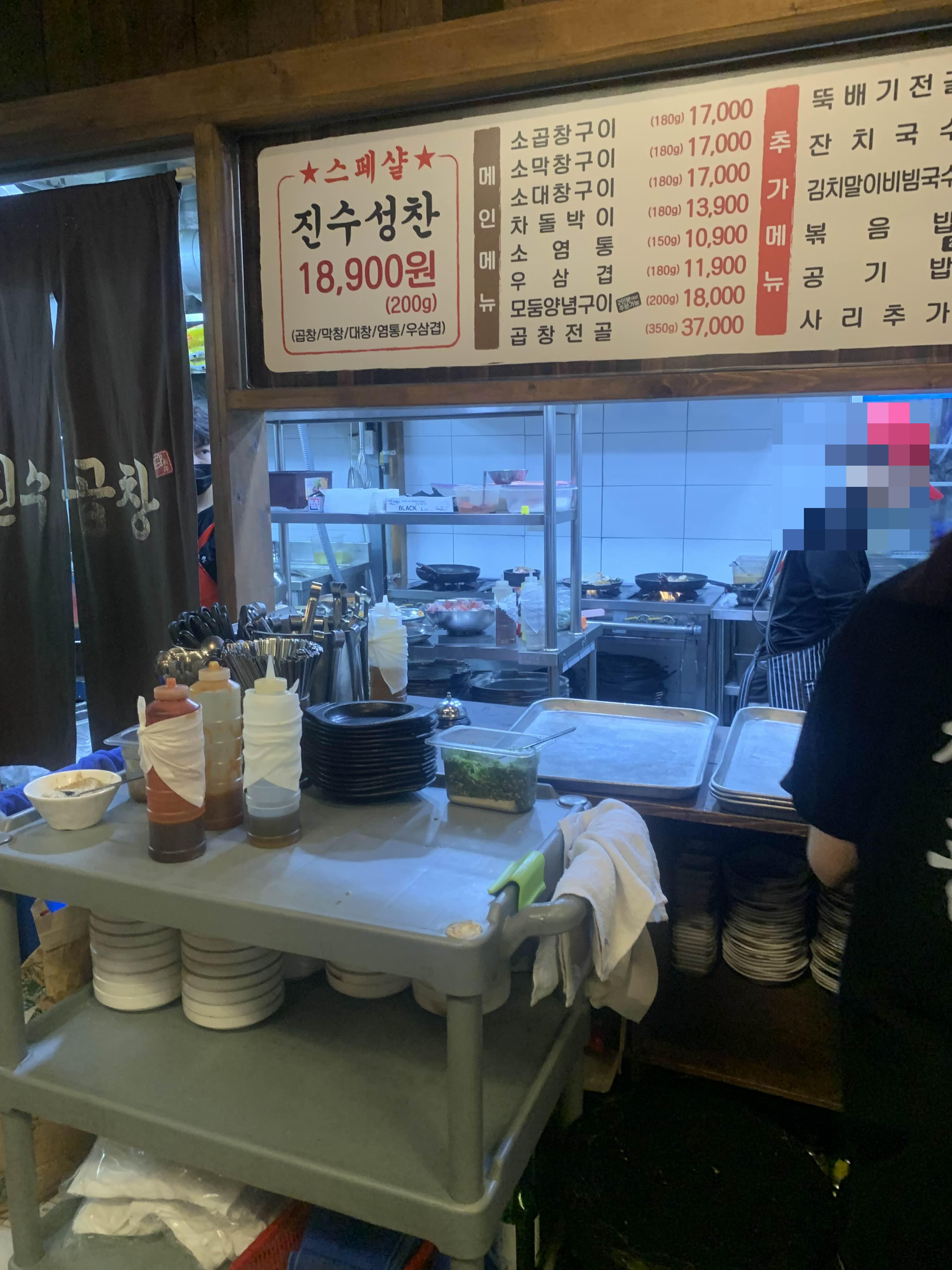 그 골목에 위치한 곱창전문 진수곱창에 방문해 보았습니다.