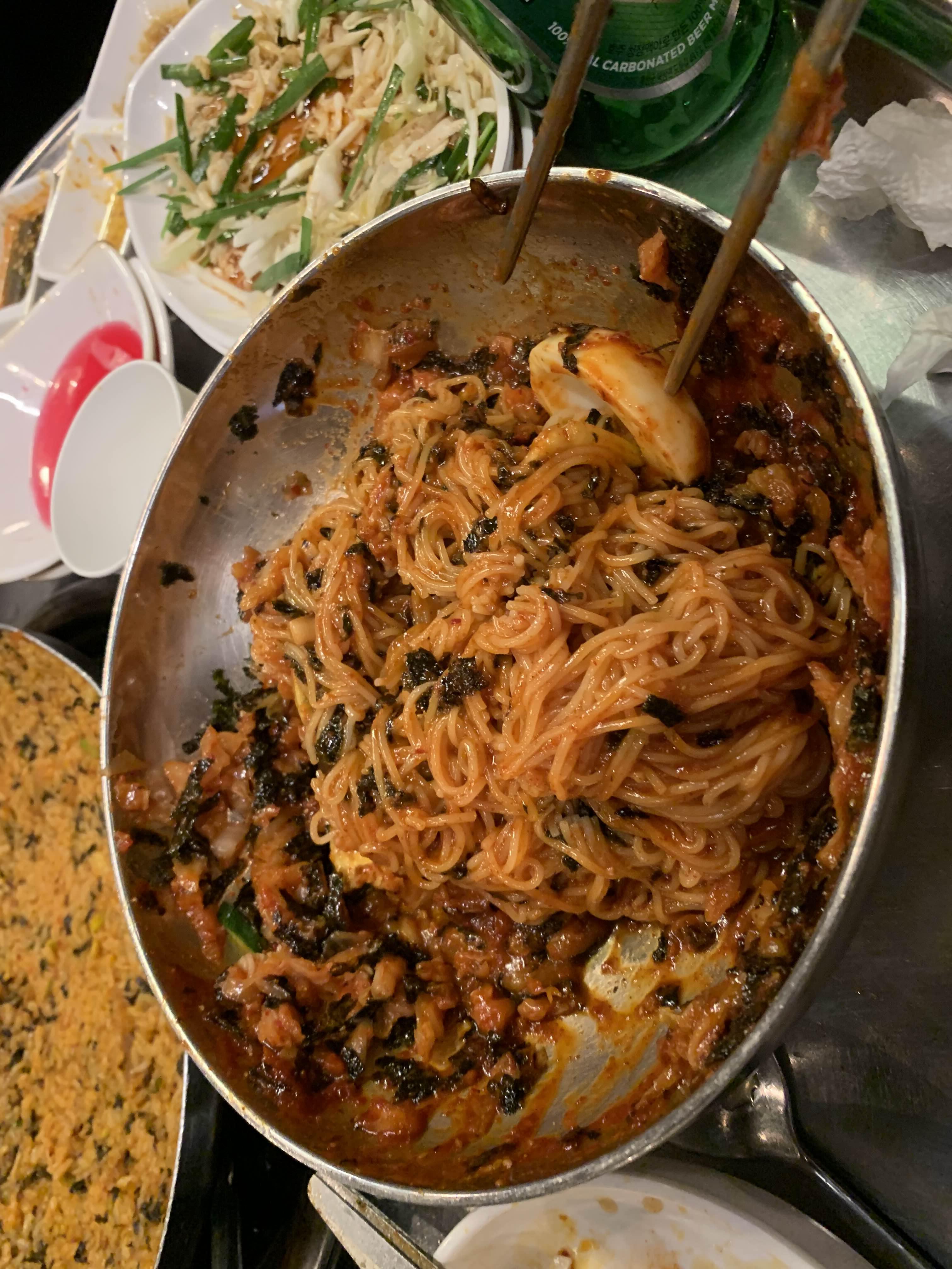 국수도 맛이 꽤 좋더군요. 퍽퍽한 국수보다는 수분기가 있는 국수를 좋아해서~~ 콩나물국 국물을 어느 정도 섞어서 국수를 비벼주니~~ 양념과 국수면이 잘 썩여서 먹기도 좋더군요.