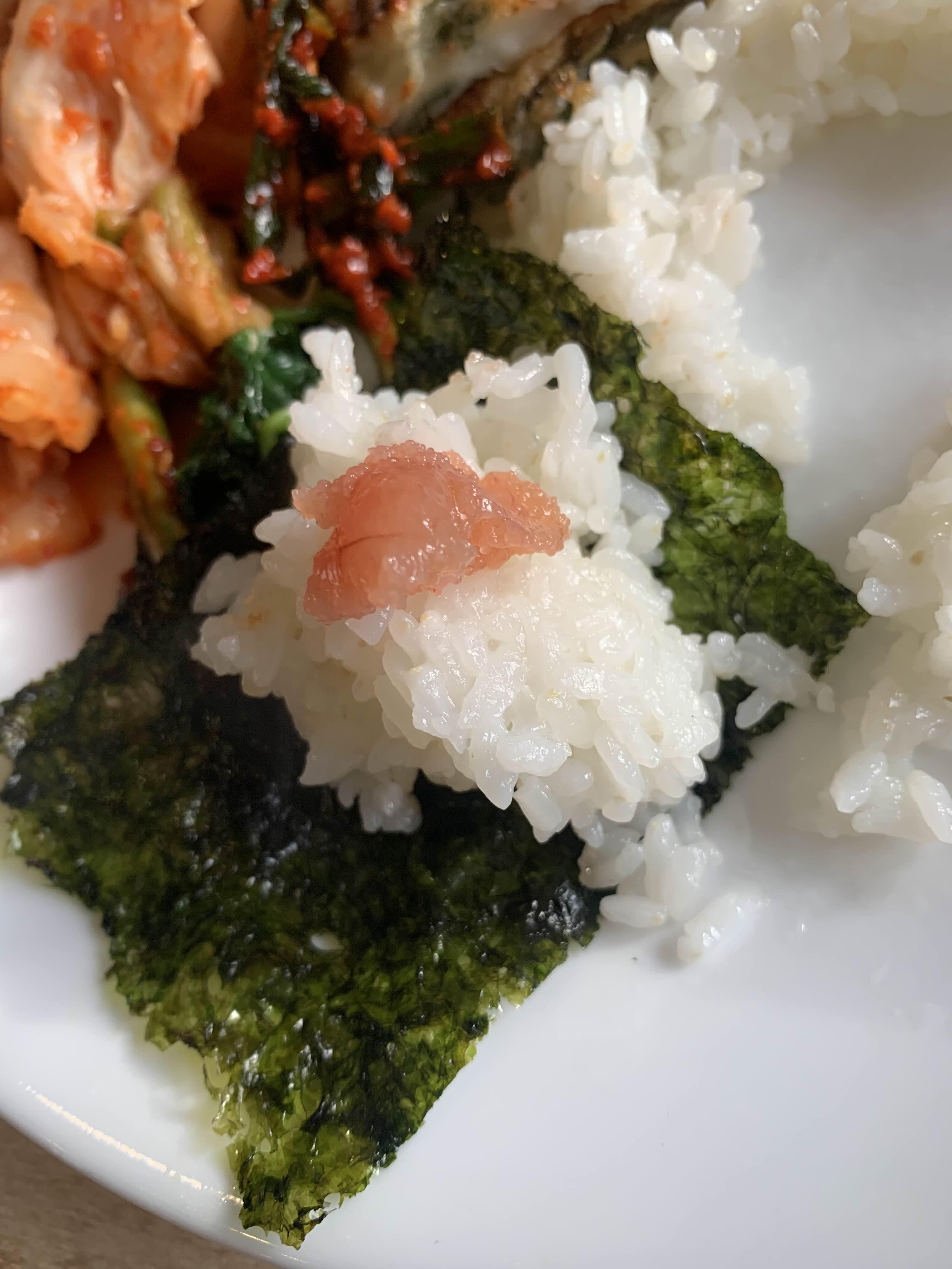 김치를 직접 담으신 거라 맛보았는데.. 맛이 괜찮더군요. 그리고 나물도 맛이 좋아서..ㅎㅎㅎ 김과 명란젓을 싸 먹는데... 요 조합을 꿀맛!ㅎㅎ