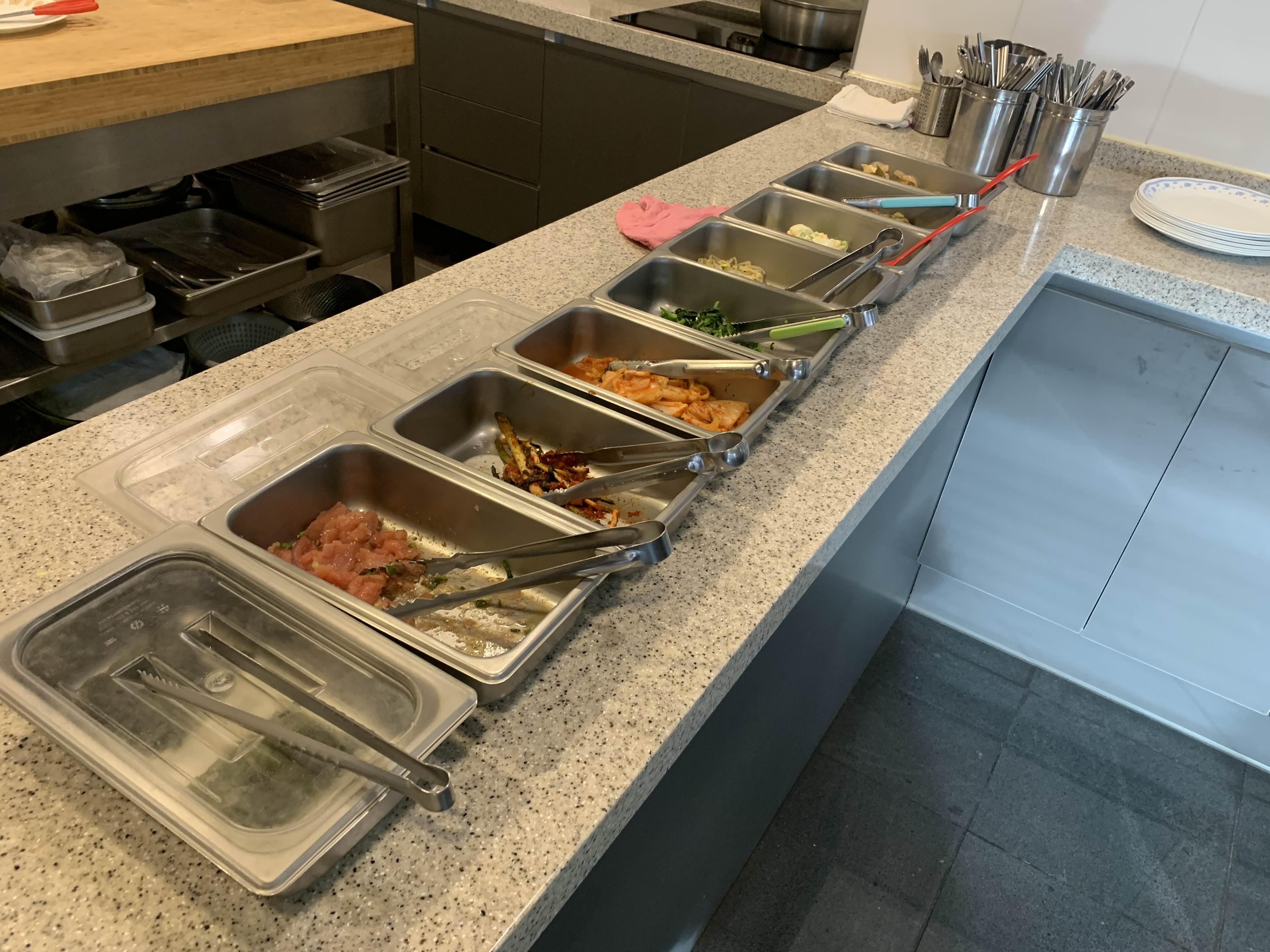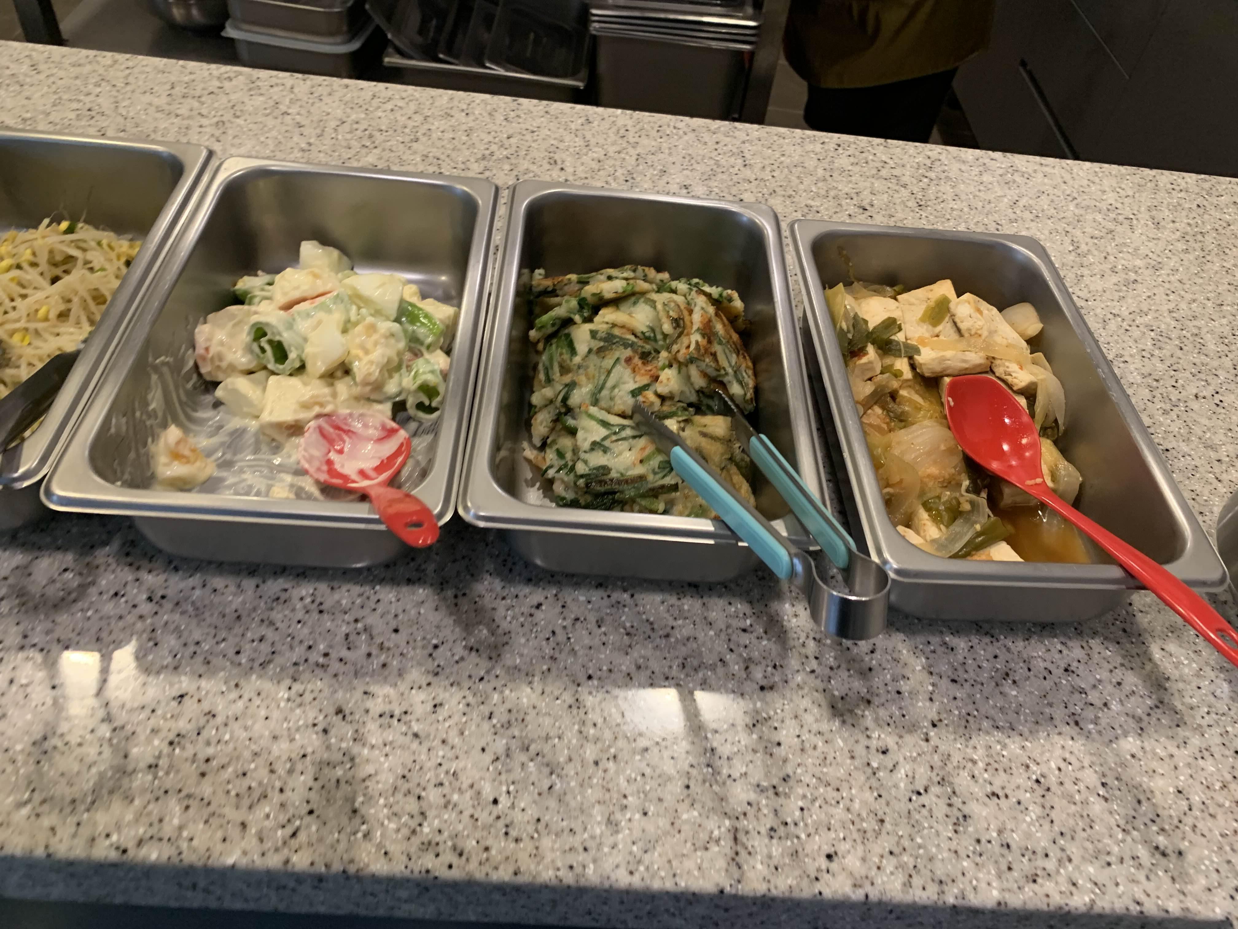 다양한 반찬이 마련되어... 넓은 접시에 모든 걸 담기에는... 그릇이 작아 보이네요.ㅎ