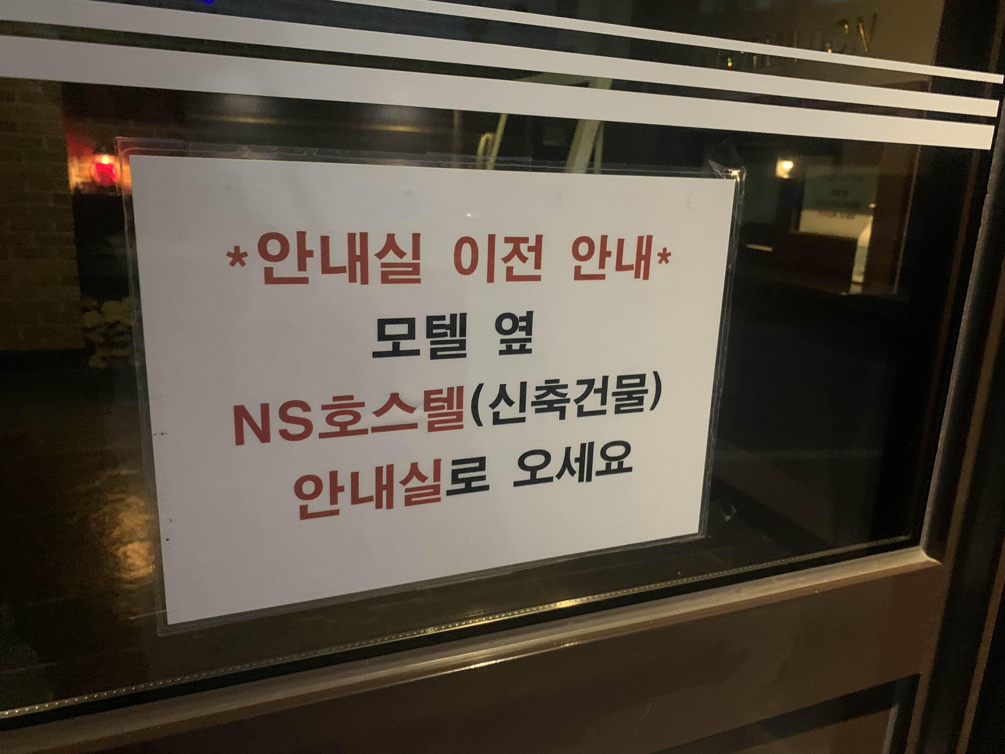 사전 예약이 NS호스텔이 아닌, NS모텔로 되었다고 하더군요. 분명히 NS호스텔에 전화해서 방을 물어보고 예약을 했는데....