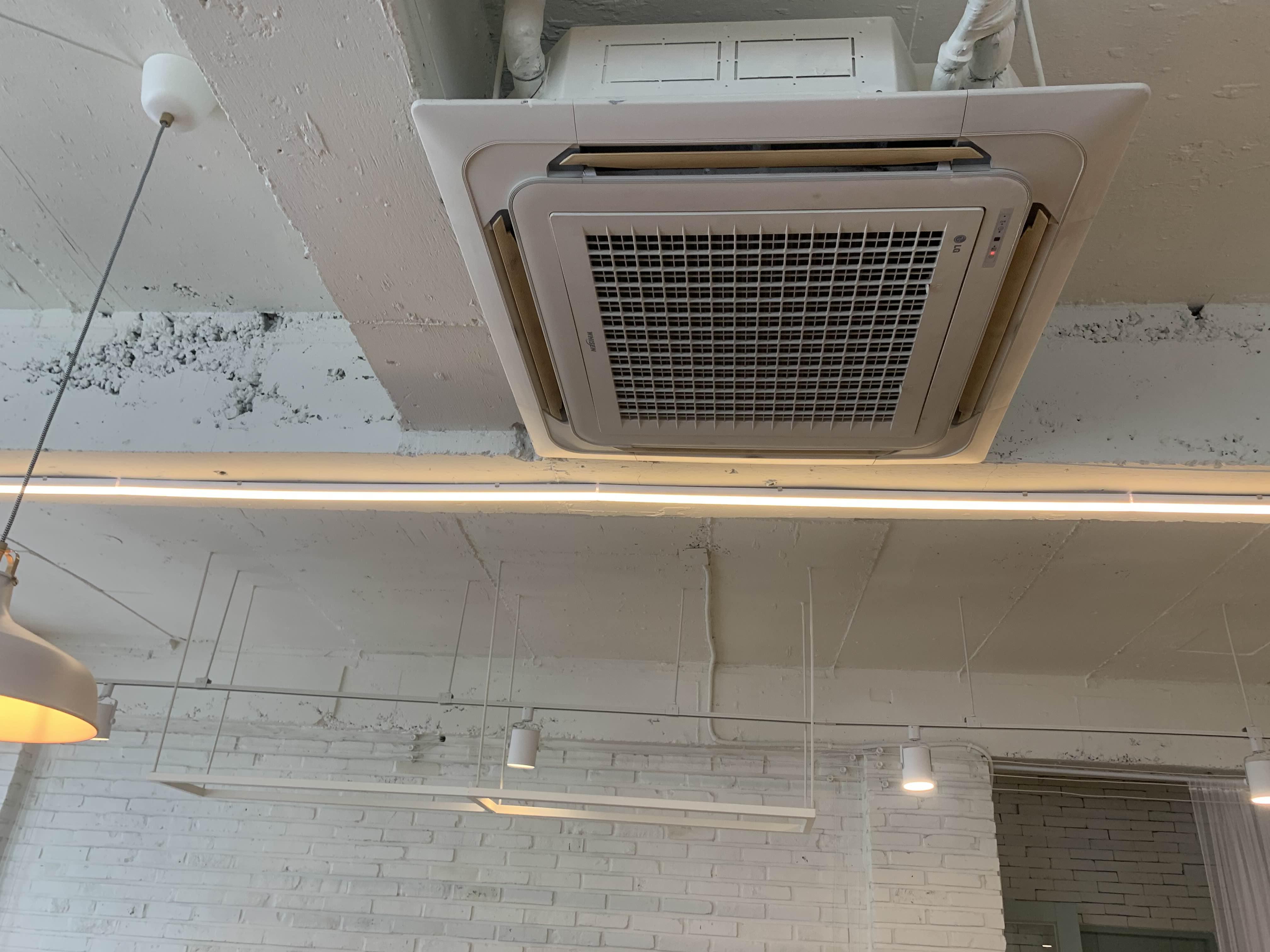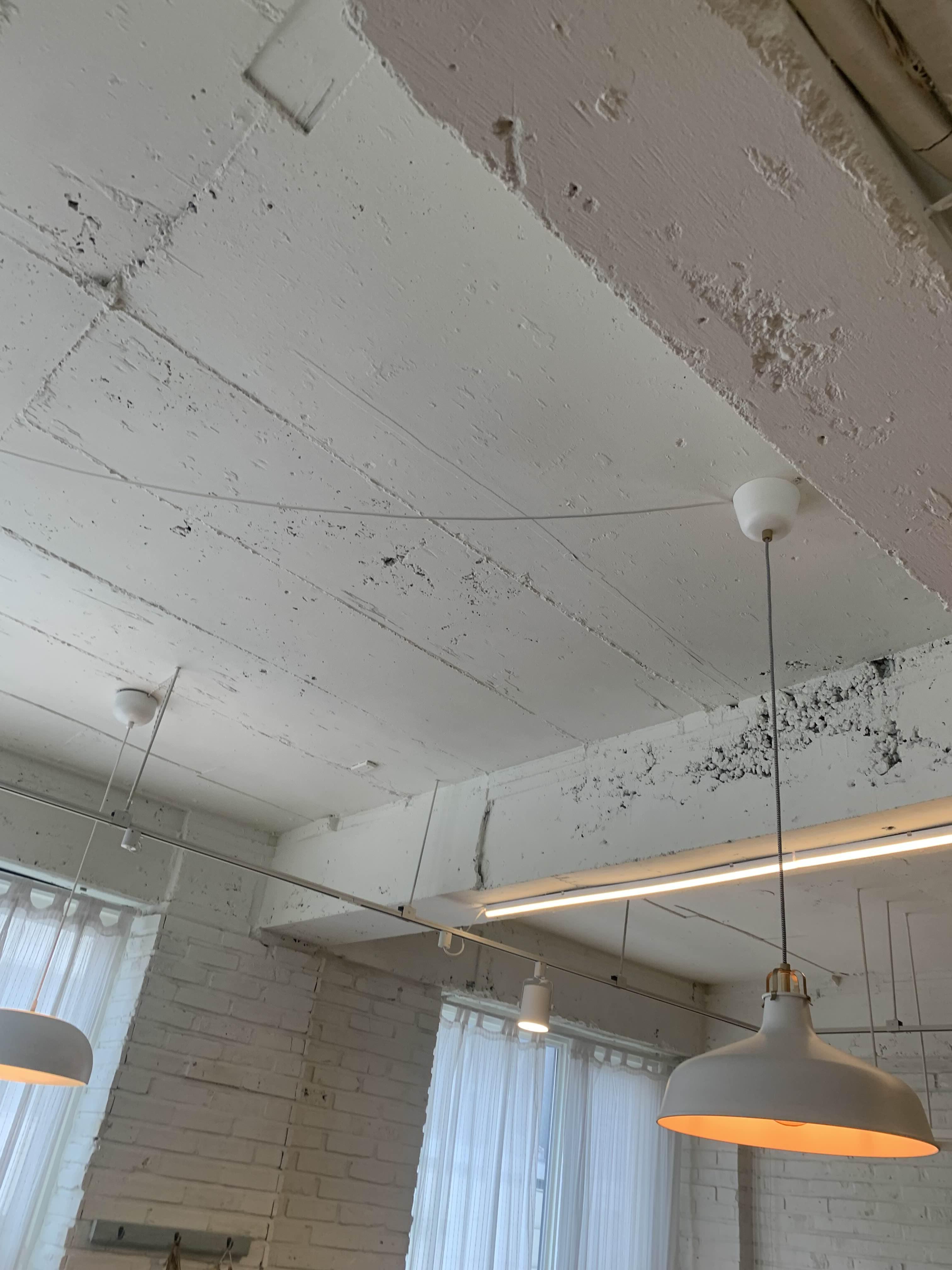 2층은 노출 천정으로 흰색 페인트로 마감되어 있었다.