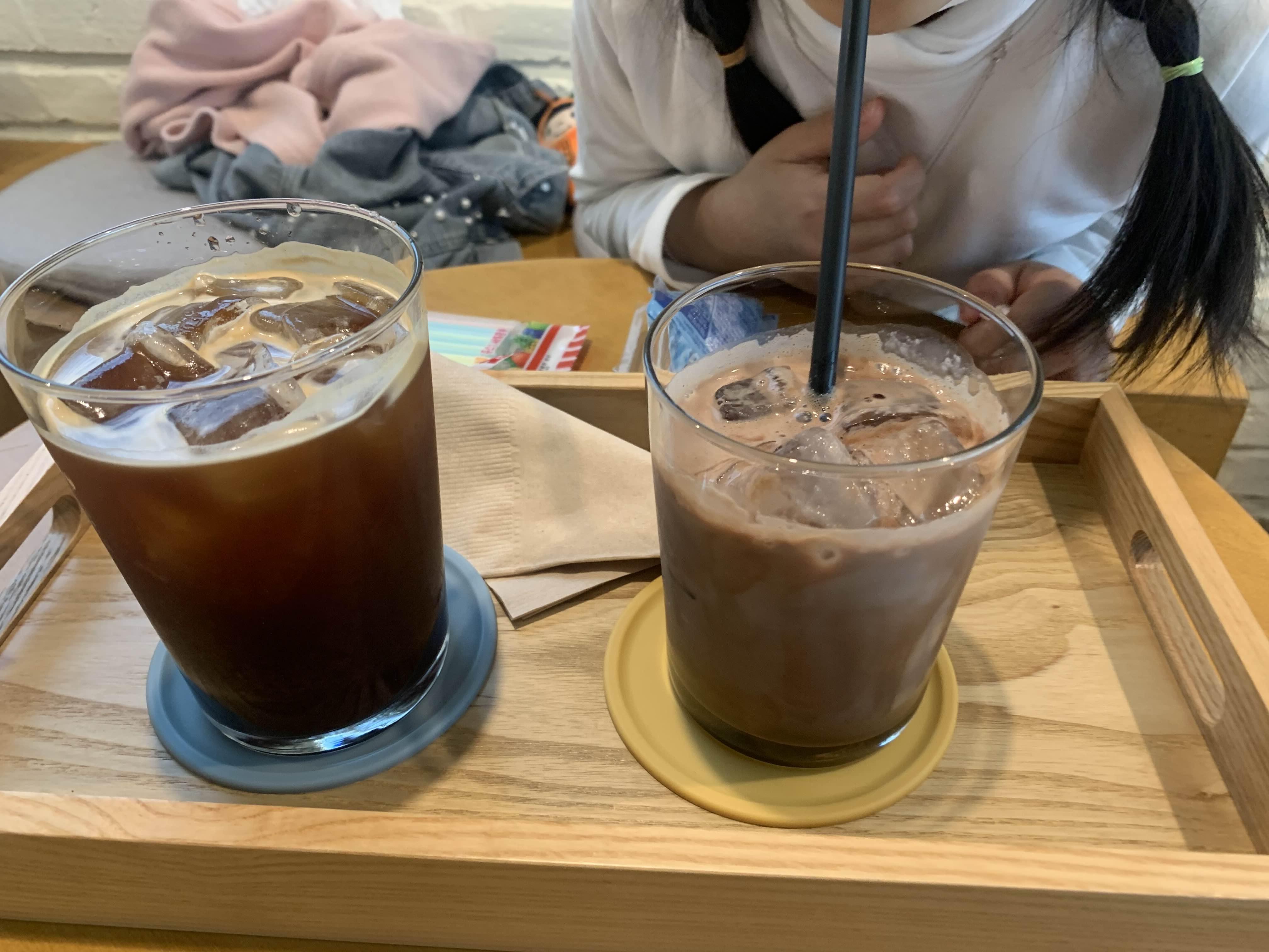 음료는 아이스 아메리카노와 초코라테~