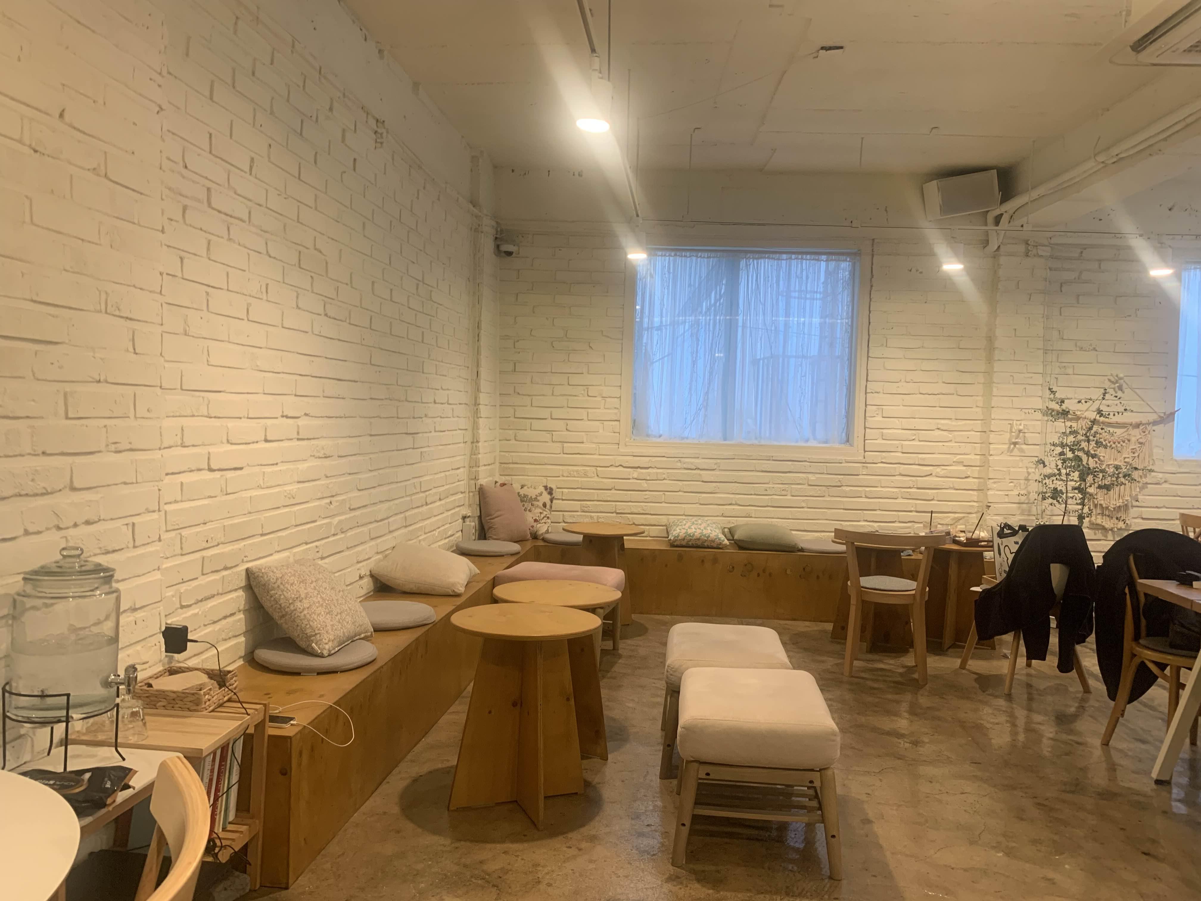 카페 1층에는 2개 좌석이 있고 2층에 많은 테이블이 마련되어 있었다.