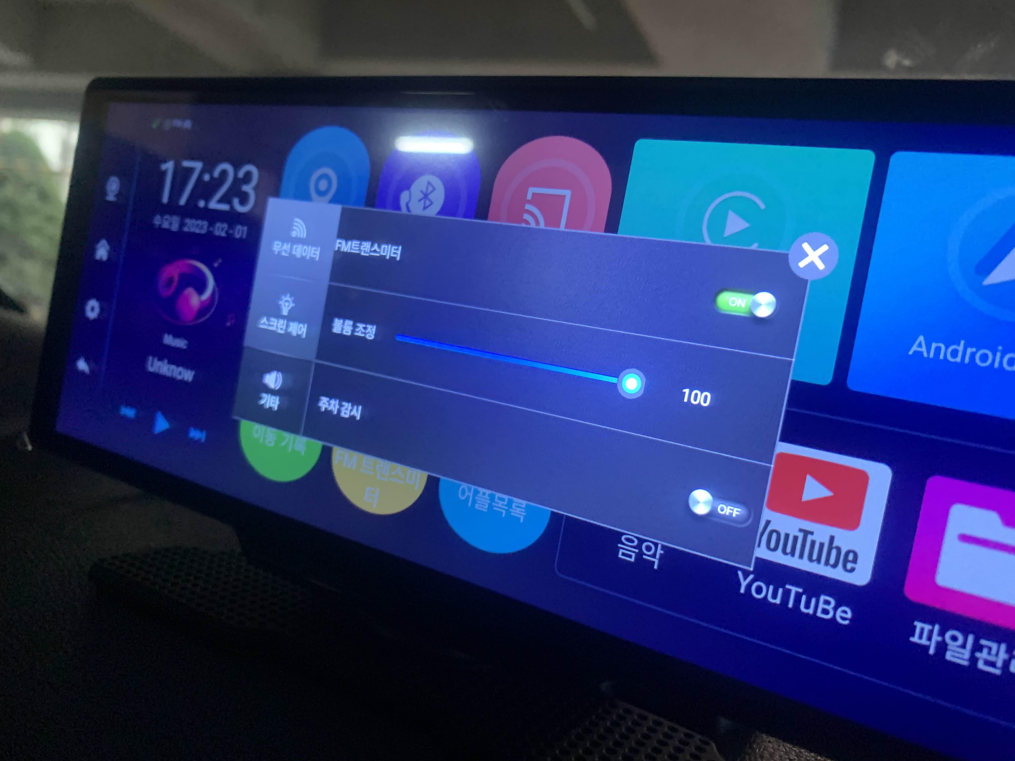 그리고 대시보드와 차량 스피커의 연결은 무선 "FM트랜스미터"로 연결해 본다.