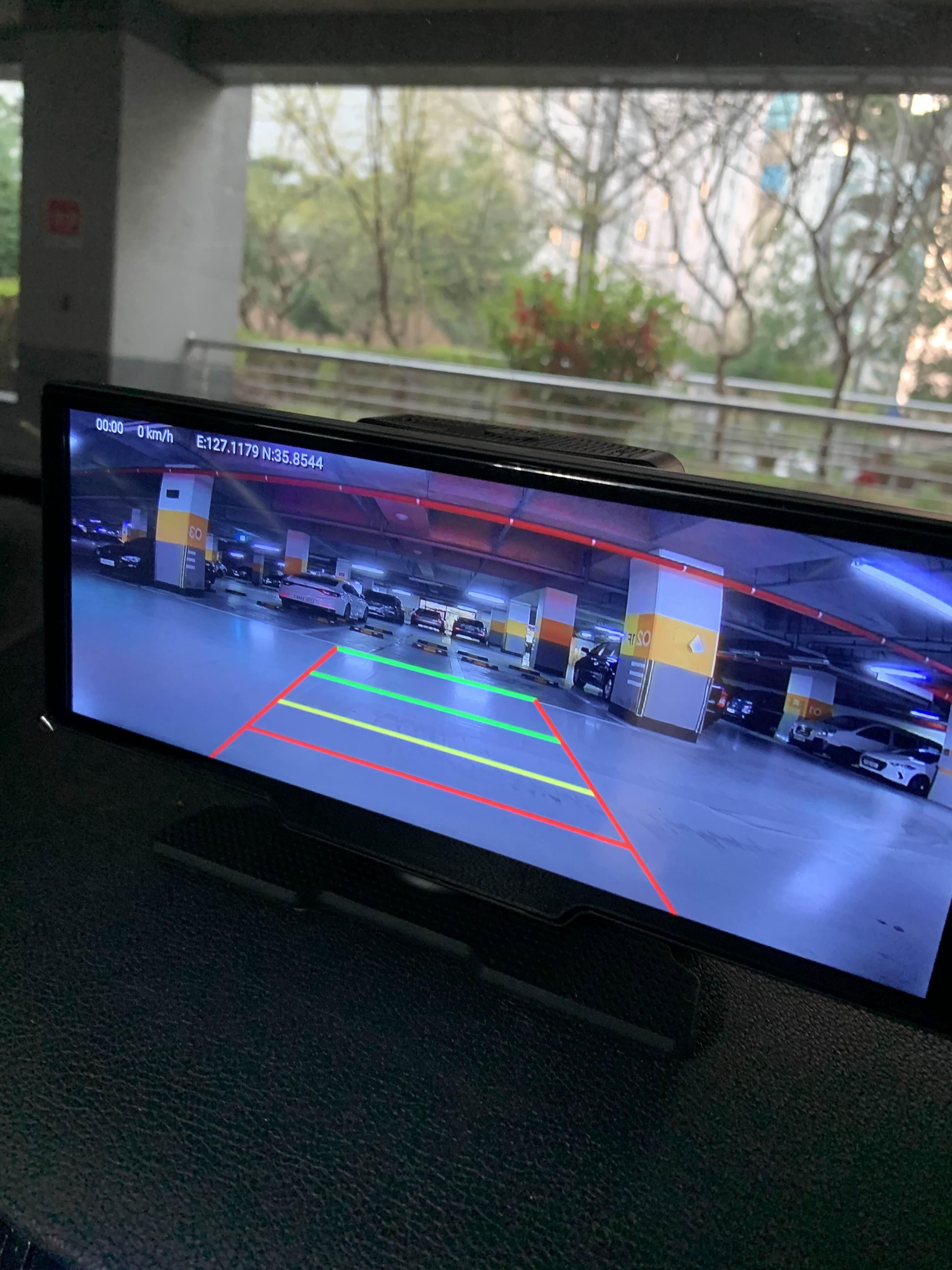 후진 기어를 넣어주면, 자동으로 후방 화면이 보인다. 요즘은 차량 기본 옵션으로 들어가는 후방카메라....