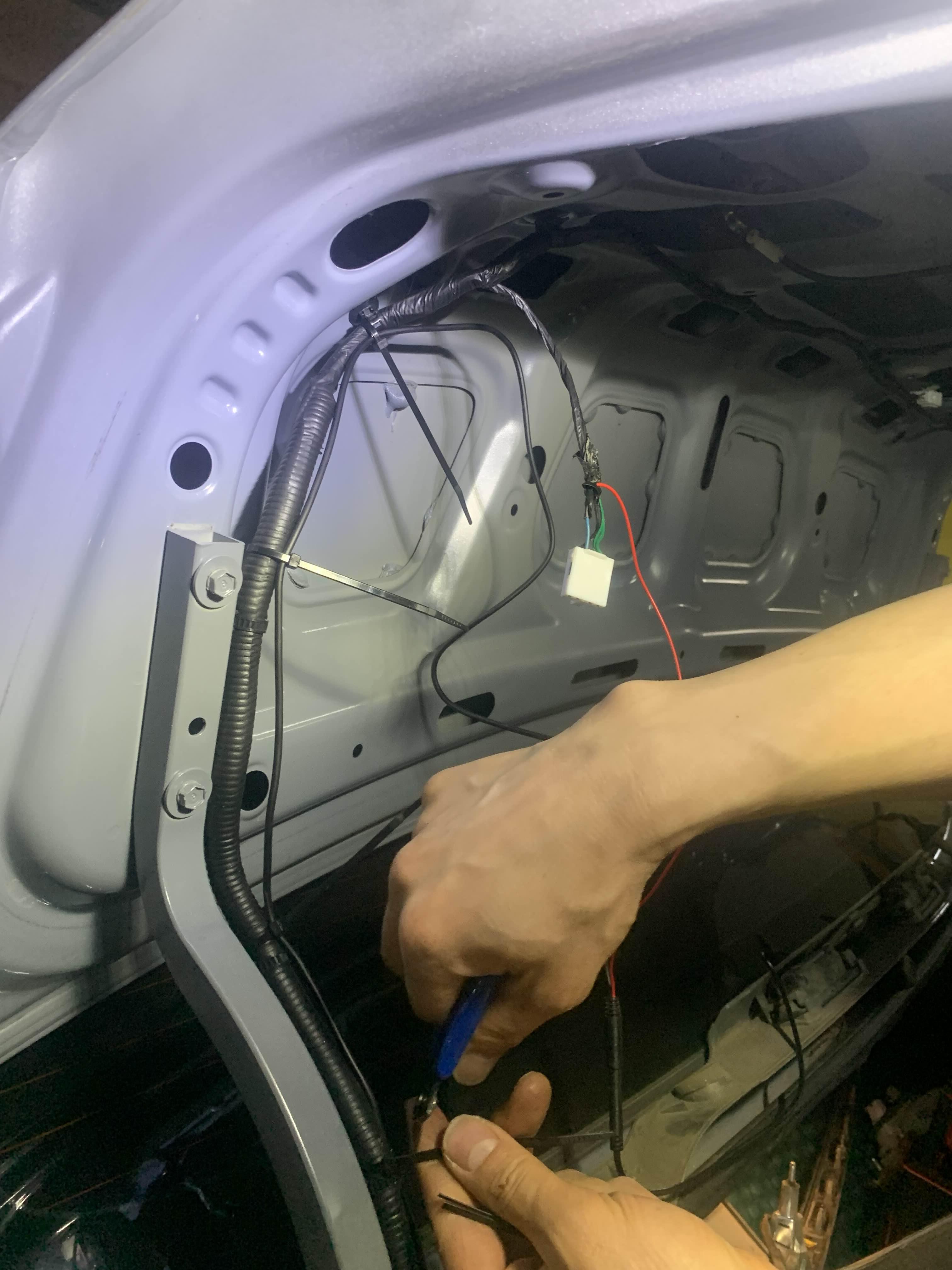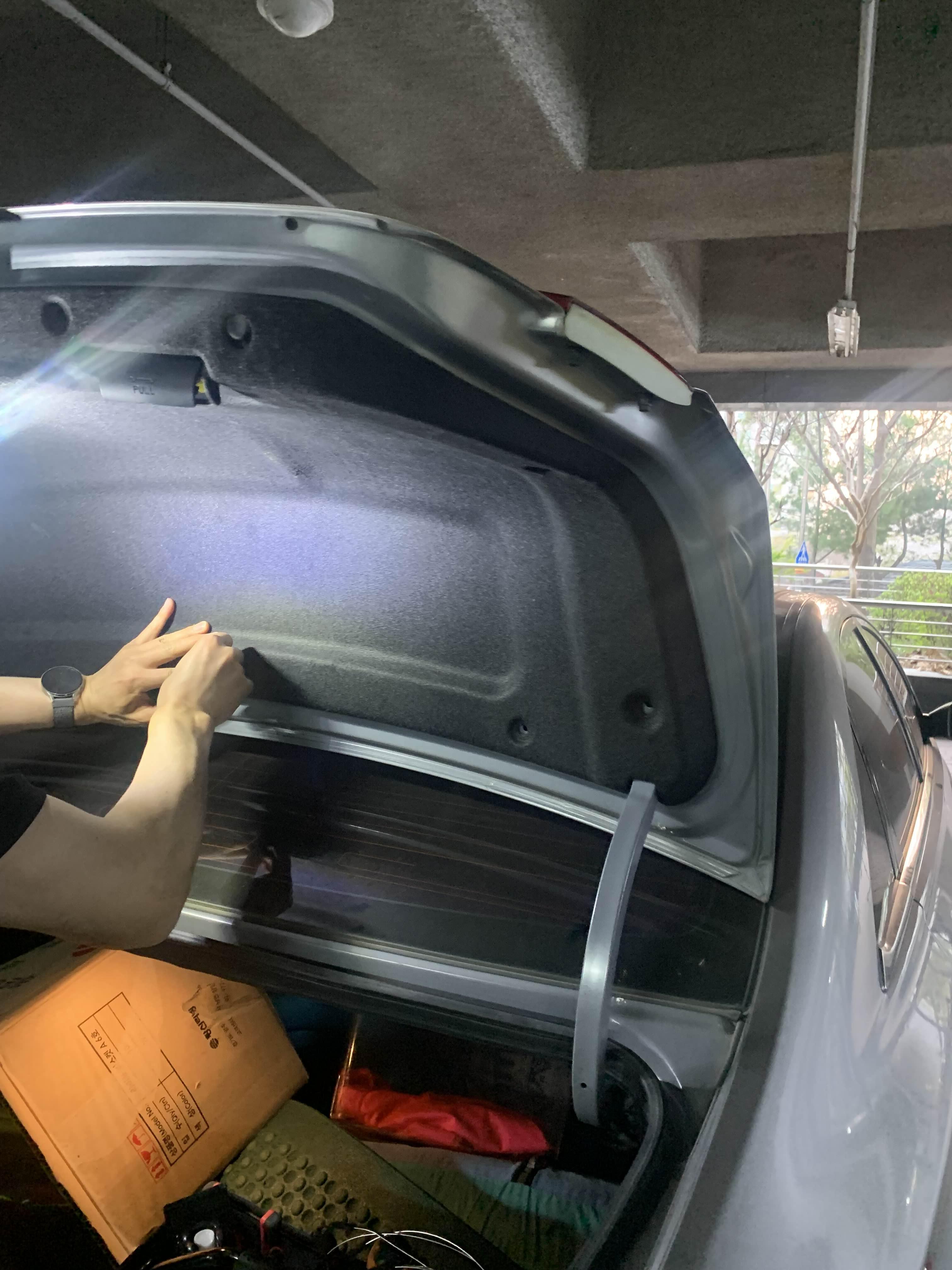 후방카메라 연결할 준비를 하신다. 차량 뒷부분을 해체하시는데...