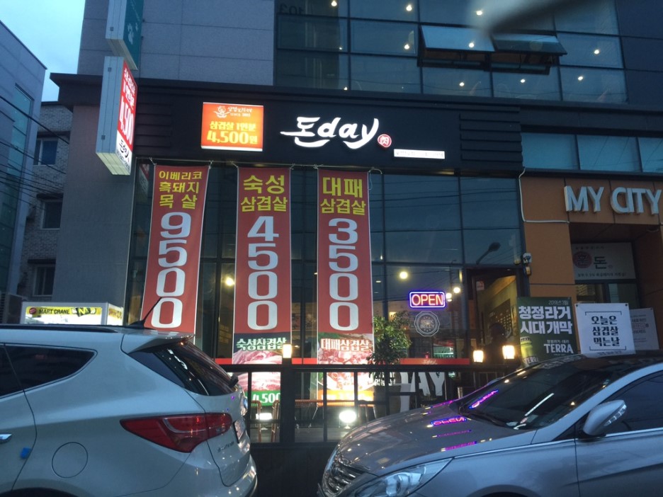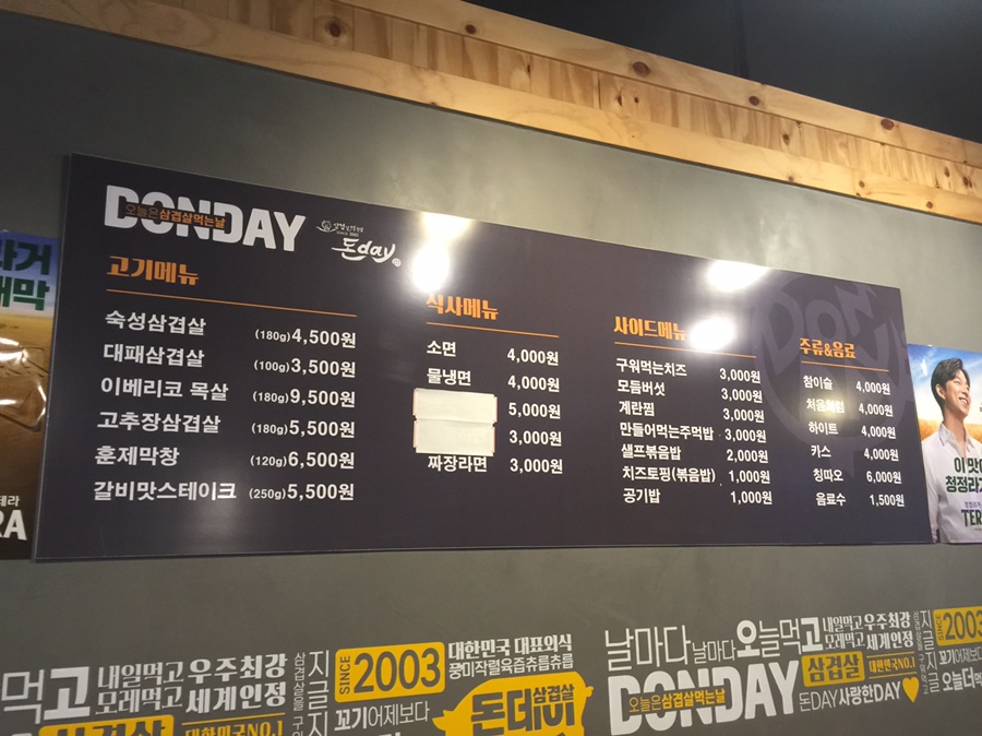 돈데이의 메인메뉴 숙성 삼겹살(180g 4,500원)과 대패삼겹살(100g 3,500)을 주문했네요. 지인이 돈데이가 좋다고 해서 방문해봤는데.... 가격 대비 좋은 거 같습니다. 기본 상차림이 준비되고, 한쪽 코너에 셀프 바가 준비되어 마음껏 가져다 먹기 좋은 곳이네요. 여기는 가격 대비 맛도 좋은 거 같습니다. 고기야 거기 거 거기이고.... 상추와 파무침이 괜찮았습니다.