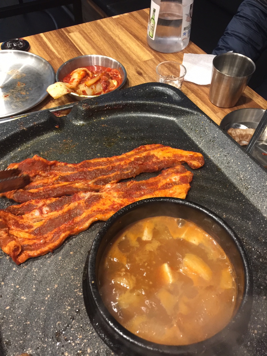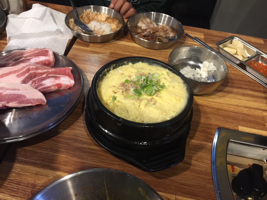 아이들용 계란찜과 고추장삼겹살을 주문했네요. 계란찜은 괜찮았는데... 고추장 삼겹살은 좀 별로였네요. 숙성 삼겹살이나 대패가 더 맛이 좋았네요. 고추장은 고기가 익기도 전에 타버려서, 먹기가 좀 불편했네요. 대패를 조금 더 주문해서 구워서 볶은 밥에 넣어서 함께 볶으면 더 맛있을 거 같네요.