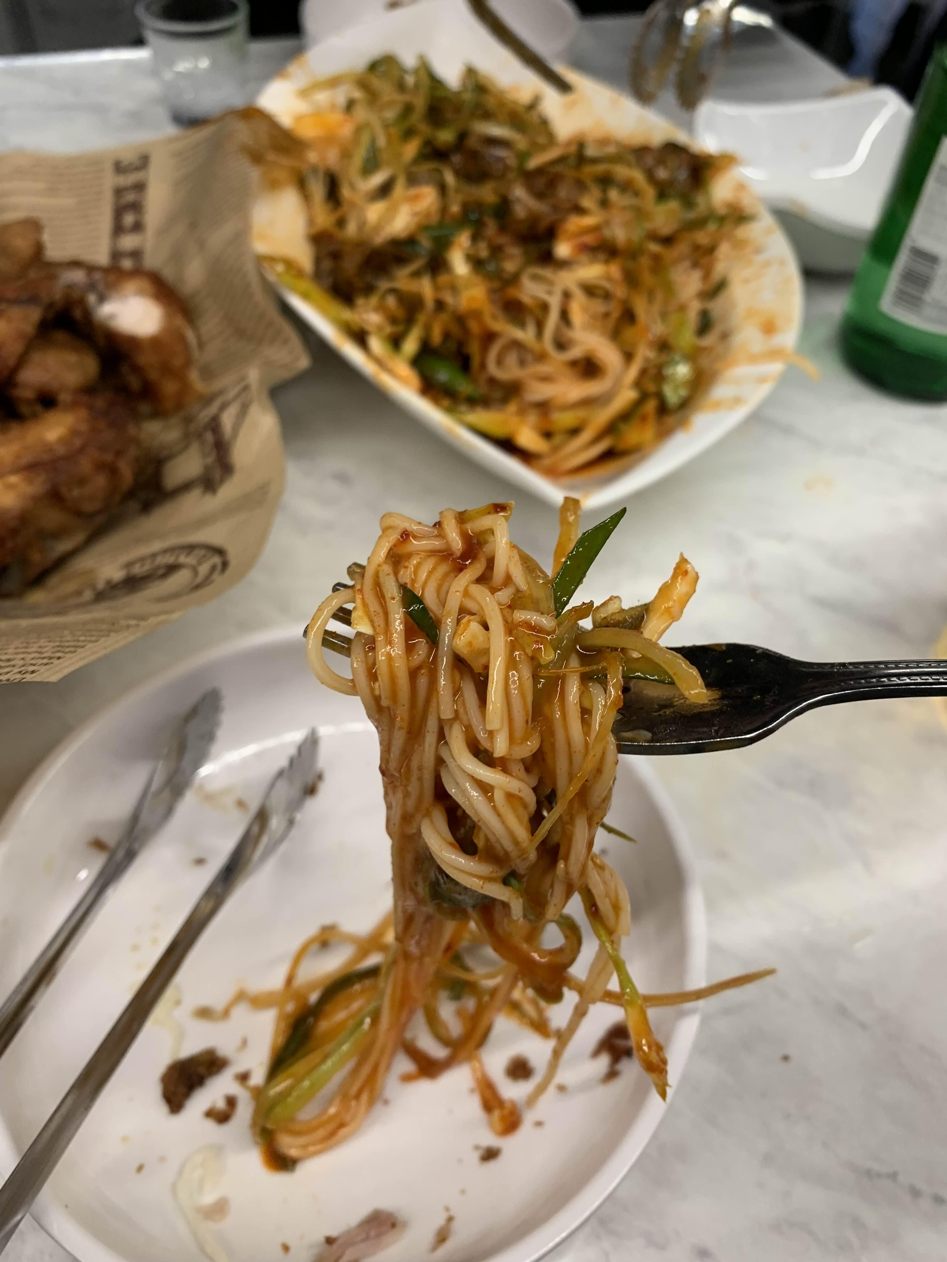 골뱅이 양념이 맛이 좋고... 대파와 함께 먹으니... 식감도 좋더군요. 다음에는 치뱅이로 공략!