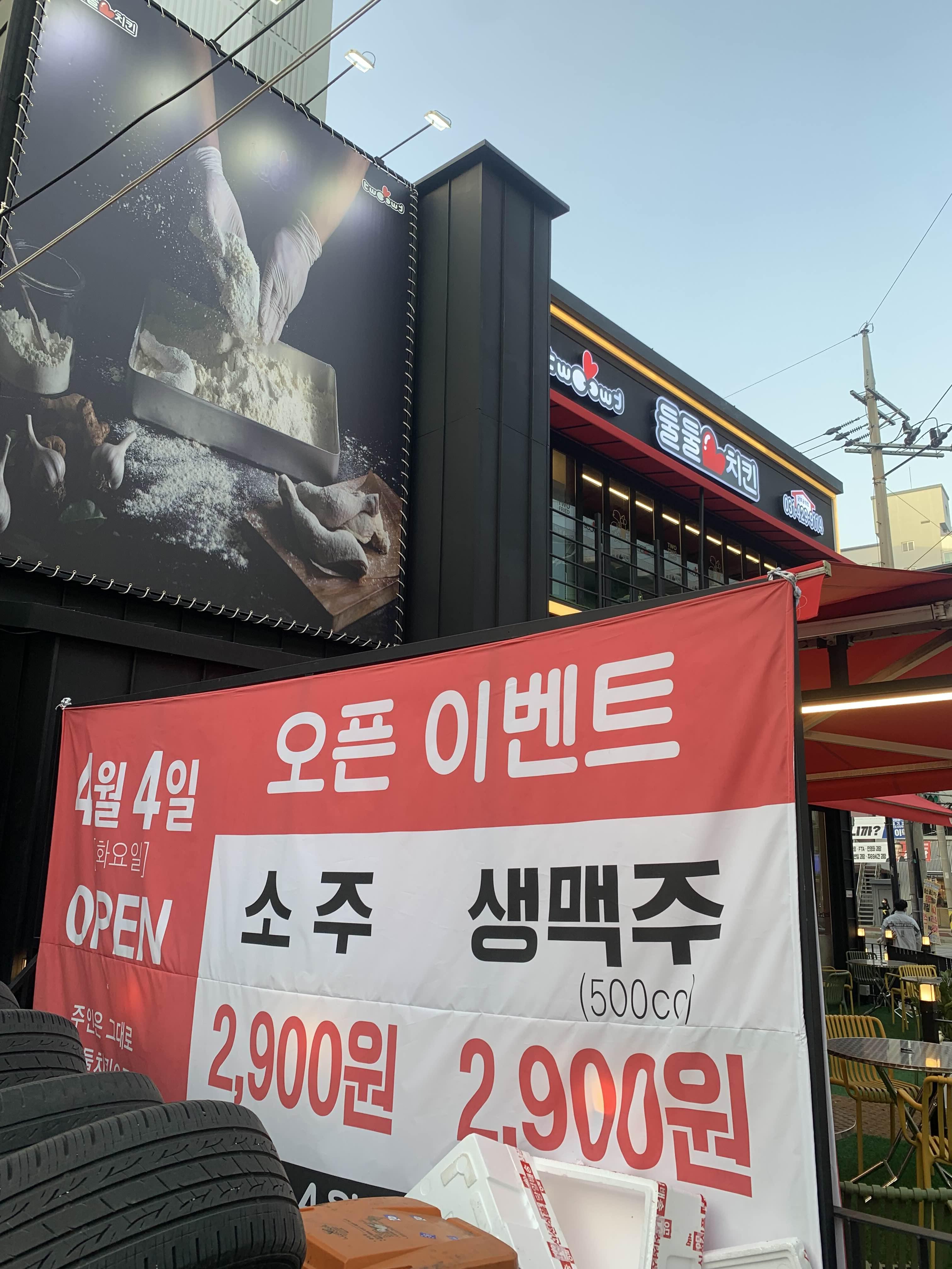 오픈 이벤트로 소주/맥주를 2,900원에 판매한다는 플래카드가 눈에 들어오더군요.