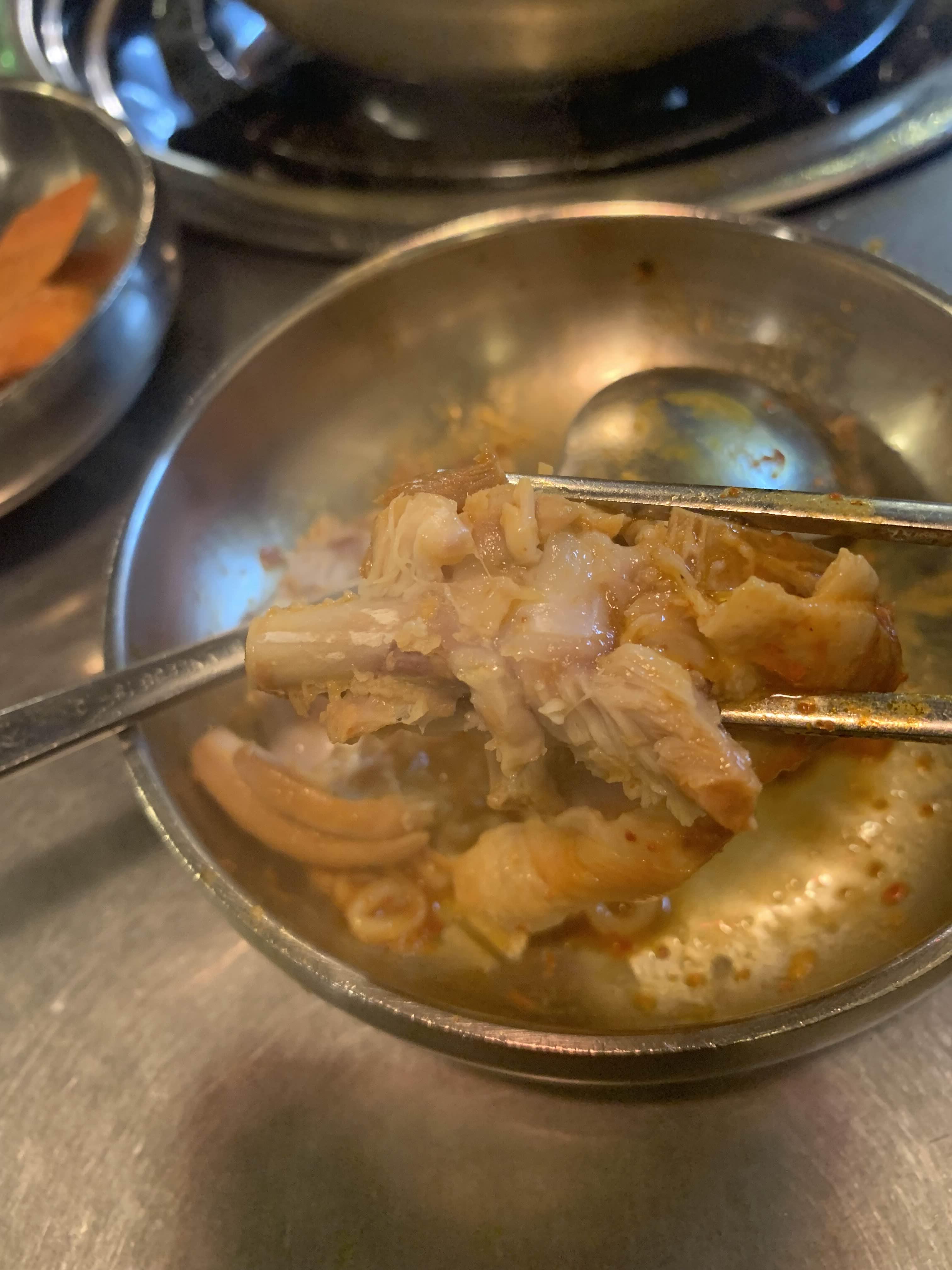 닭고기살 속 뼈의 색상이... 싱싱한 뼈! 닭고기는 요들요들! 부드럽더군요.