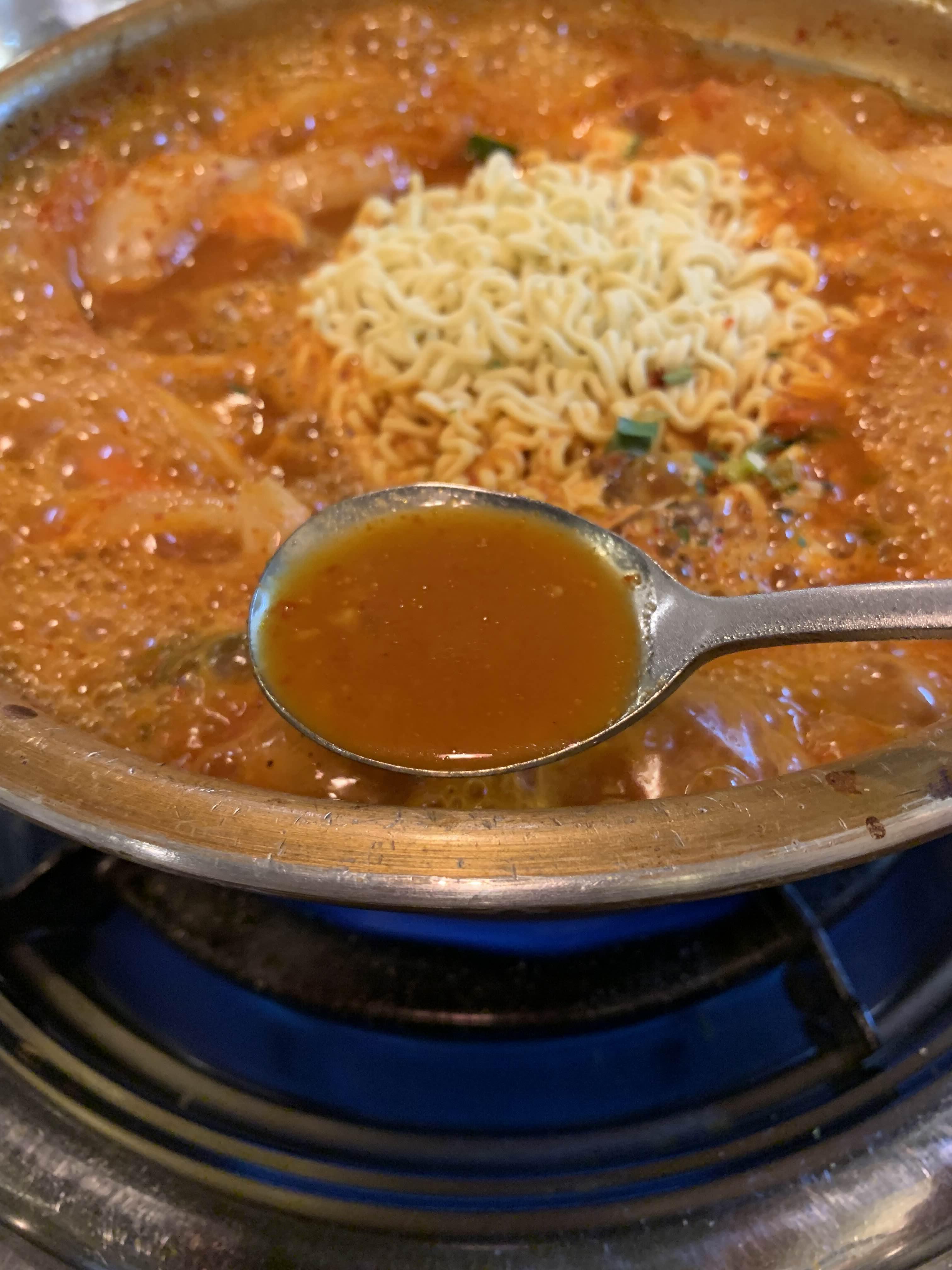 얼큰탕에 라면사리 하나 맛보니!! 꽤 잘 어울리더군요.